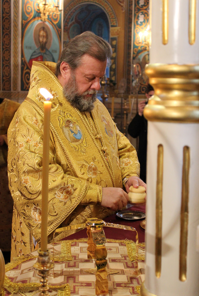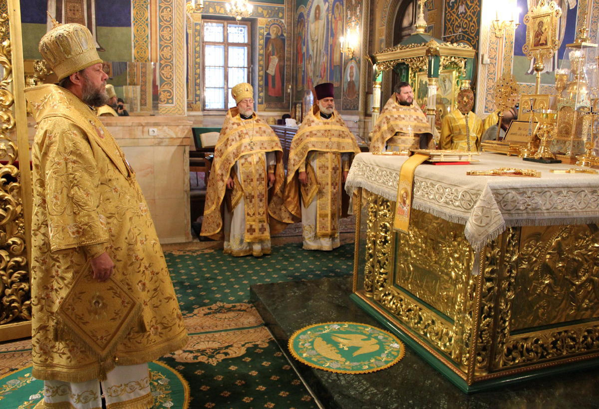 Его Высокопреосвященству сослужили: митрофорный протоиерей Вадим Кейбаш, секретарь Кишиневско-Молдавской Митрополии, протоиерей Андрей Секрий, настоятель Михайло-Архангельского храма с. Трушены, Кишиневского мун-я, игумен Трифон (Чобану), насельник Свято-Вознесенского Ново-Нямецкого Кицканского мужского монастыря, соборное духовенство.