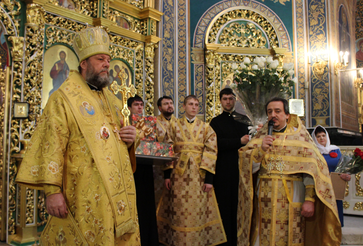 В продолжение, архипастырь обратился к пастве с архипастырским словом. Затем, к Высокопреосвященному владыке Владимиру обратился от лица соборного духовенства с поздравлениями митрофорный протоиерей Вадим Кейбаш: «Ваше Высокопреосвященство, день памяти святителя Николая Чудотворца является для Вашей Святыни днем особой духовной радости, потому что в Таинстве Крещения Вас нарекли именем этого великого просветителя и защитника святой православной веры, который в дальнейшем стал для Вас помощником и горячим молитвенником к Всемилостивому Богу. В этот праздничный день, мы преклоняем наши главы в смиренной молитве перед святителем Николаем, испрашивая у него помощи во всех Ваших архипастырских трудах, и чтобы по его молитвам Господь даровал Вашему Высокопреосвященству своей благодати в избытке, дабы мудро управлять Православной Церковью Молдовы в мире и спокойствие во славу Спасителя нашего Иисуса Христа и во спасение молдавского народа».