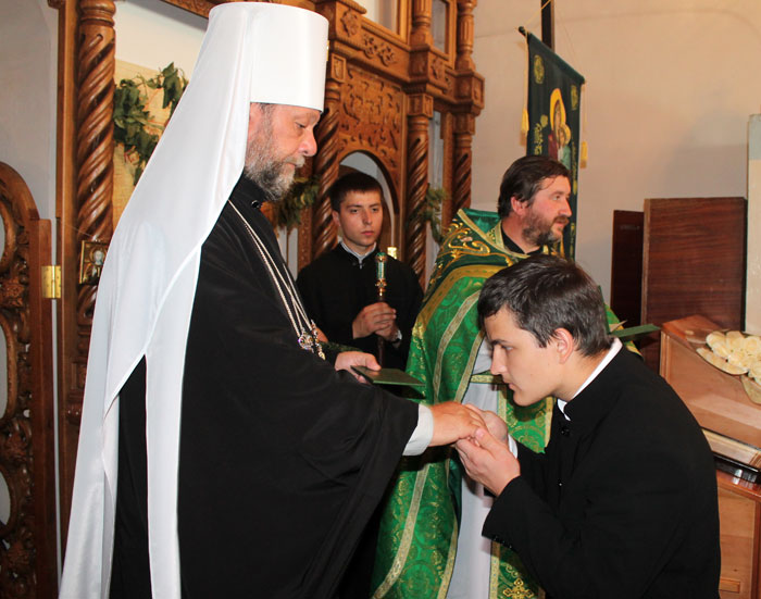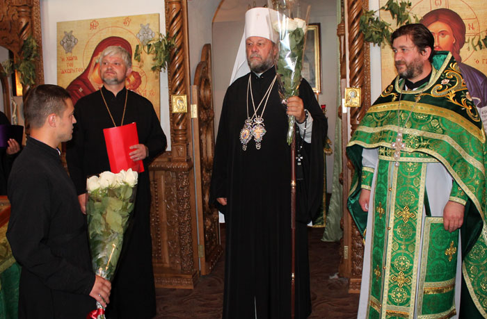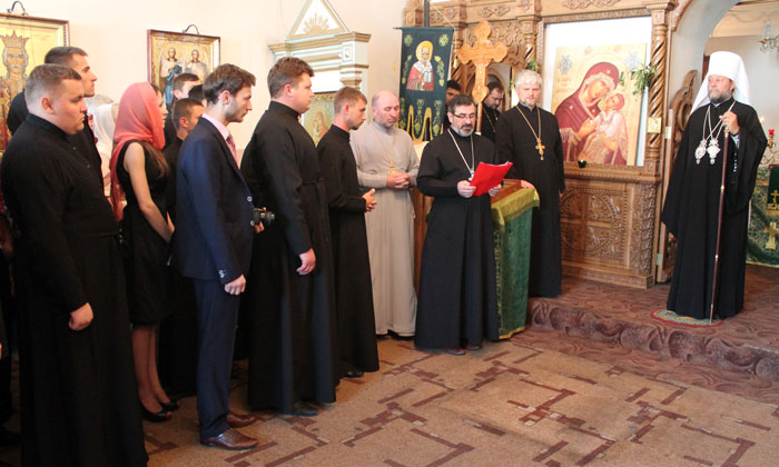 По окончании богослужения, владыка Митрополит в своем архипастырском обращении к присутствующим поздравил выпускников, пожелав им являть миру образ настоящего служителя алтаря Господня и горячего проповедника Спасительного Евангелия Христова.