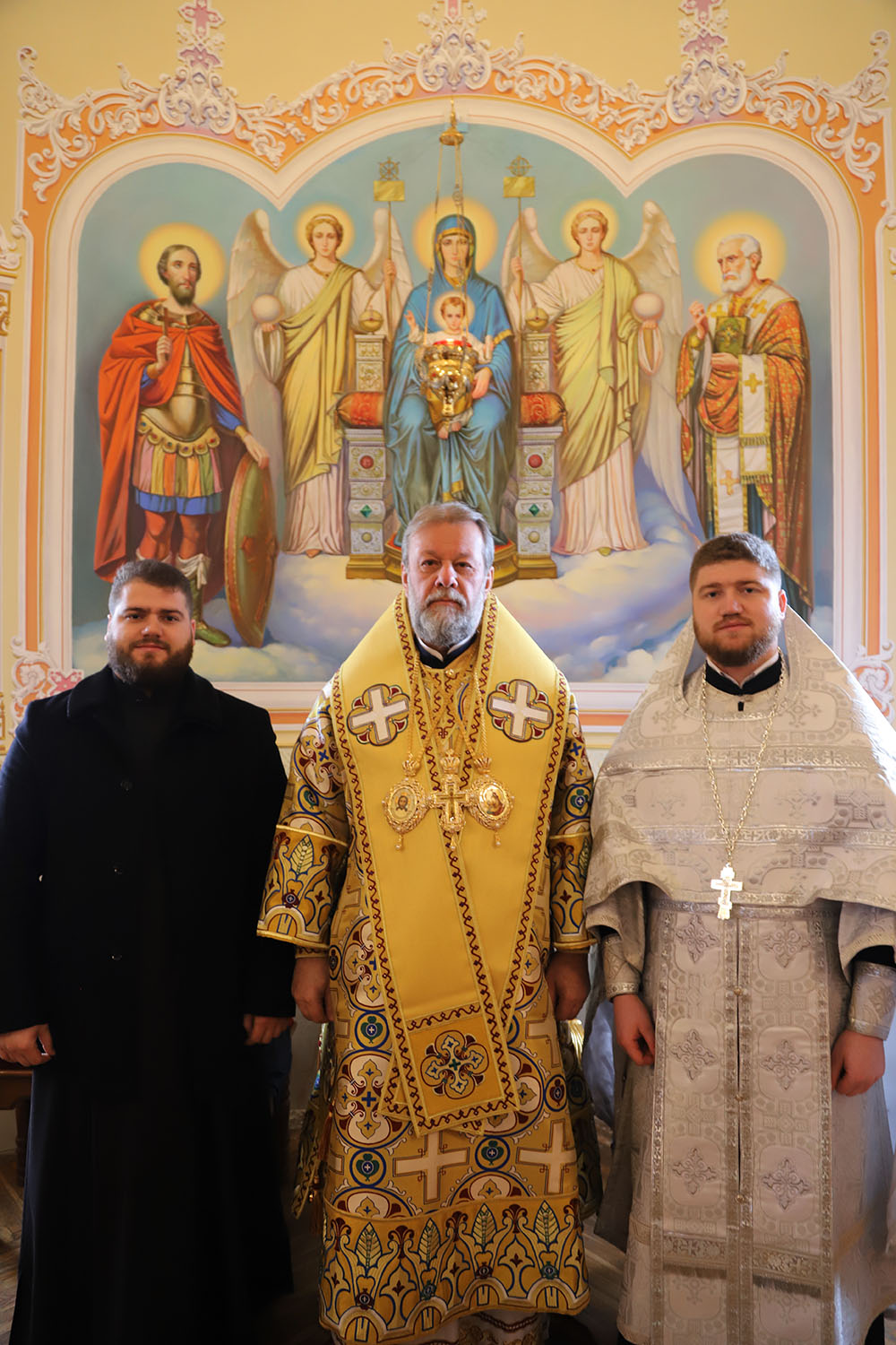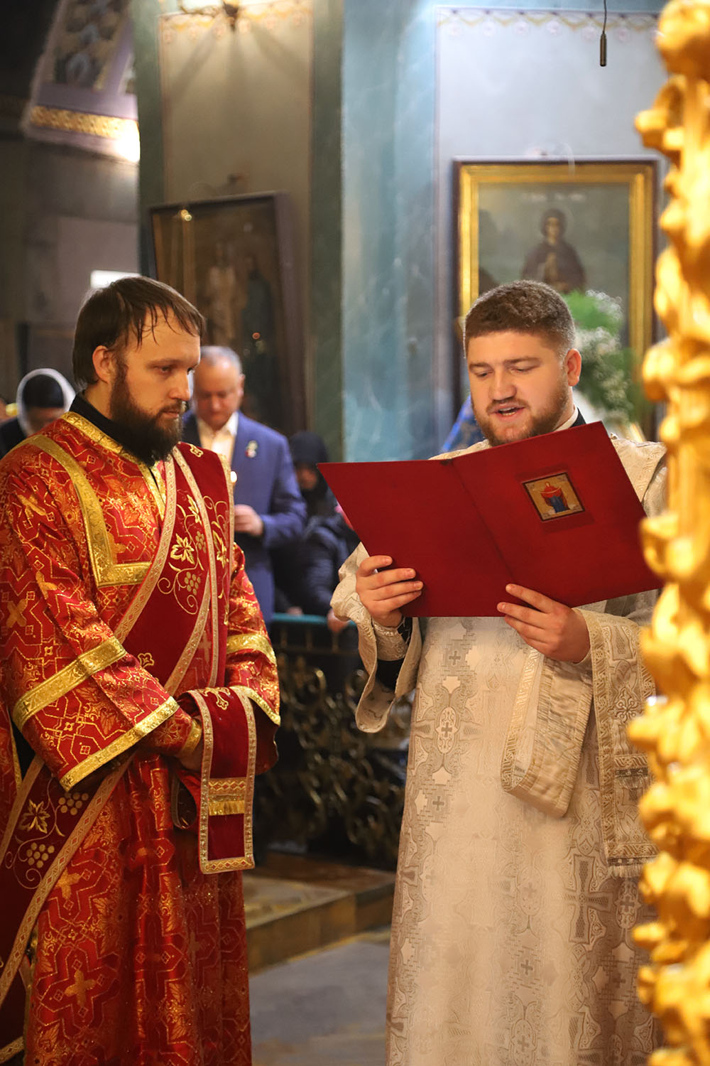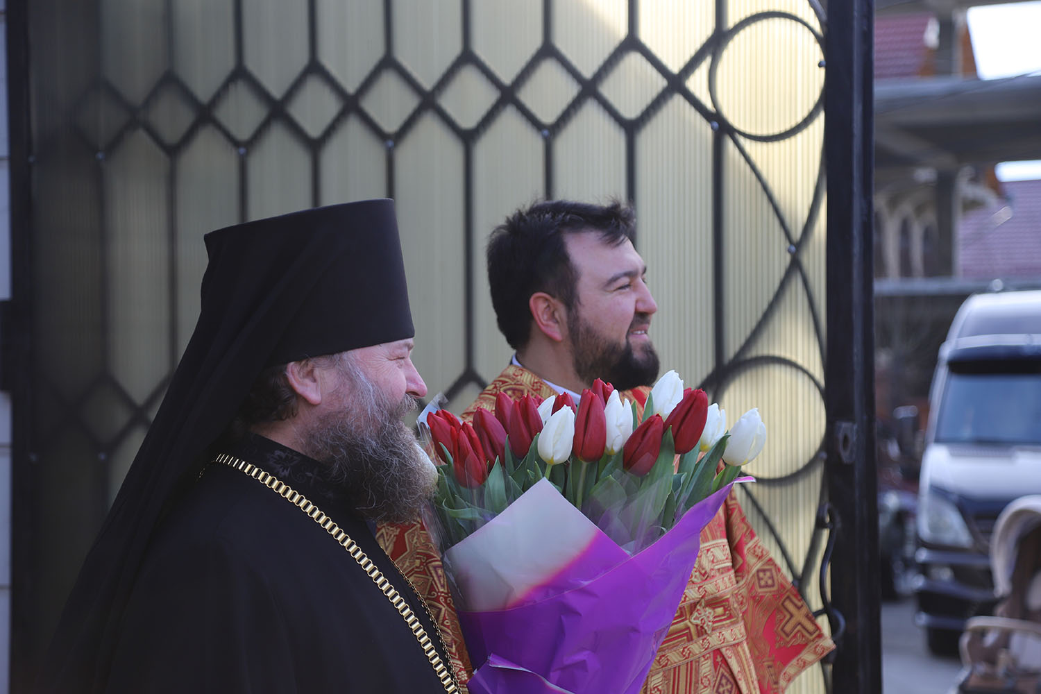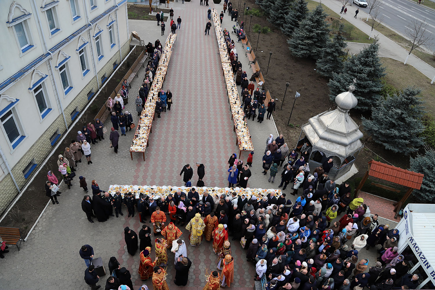 Его Высокопреосвященству сослужили: Преосвященные епископы Кагульский и Комратский Анатолий, Единецкий и Бричанский Никодим, секретарь Молдавской митрополии и благочинный церквей Кишиневского муниципия (Сектор 1) митр. прот. Вадим Кейбаш, духовник-администратор Федоро-Тироновского монастыря архимандрит Николай (Рошка), военные священники и духовенство Кишиневского благочиния.