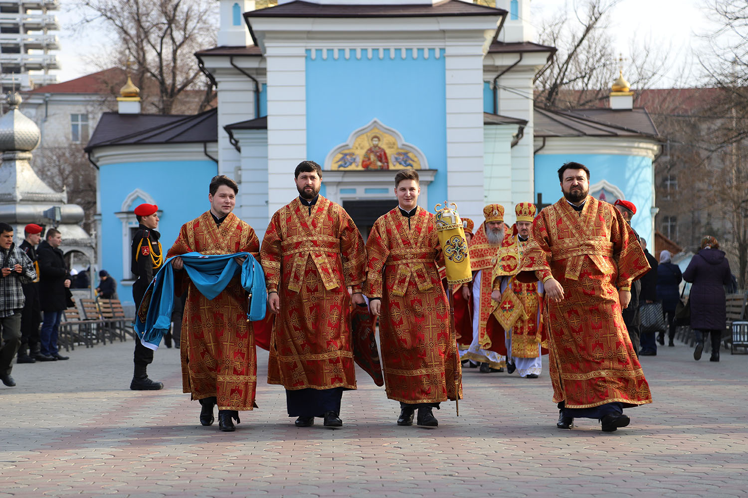 По окончании богослужения последовал Крестный ход вокруг главного храма обители с чтениями Евангелия, после чего был совершен благодарственный молебен. Затем Его Высокопреосвященство обратился к присутствующим с архипастырским словом, в котором особо отметил важную духовную и историческую роль Федоро-Тироновского Чуфлинского монастыря в жизни не только столицы, но и всей страны в целом. Иерарх призвал всех в преддверии Святой Четыредесятницы примириться с ближними, чтобы с достоинством встретить светлый праздник Воскресения Христова.