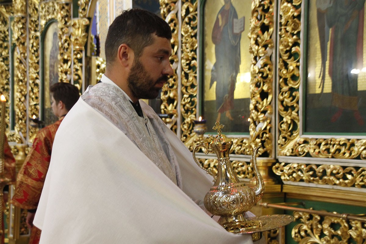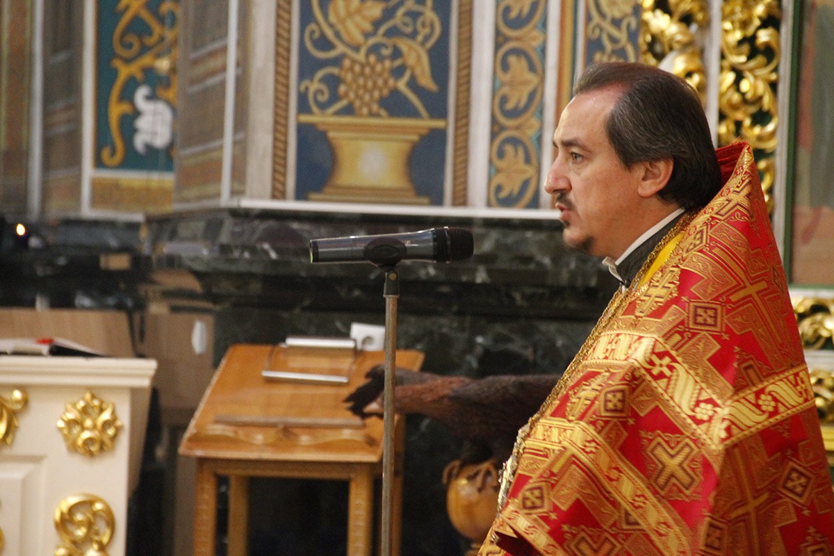 Проповедь перед причастием произнес ключарь кафедрального собора Рождества Христова митр. прот. Вадим Кейбаш.