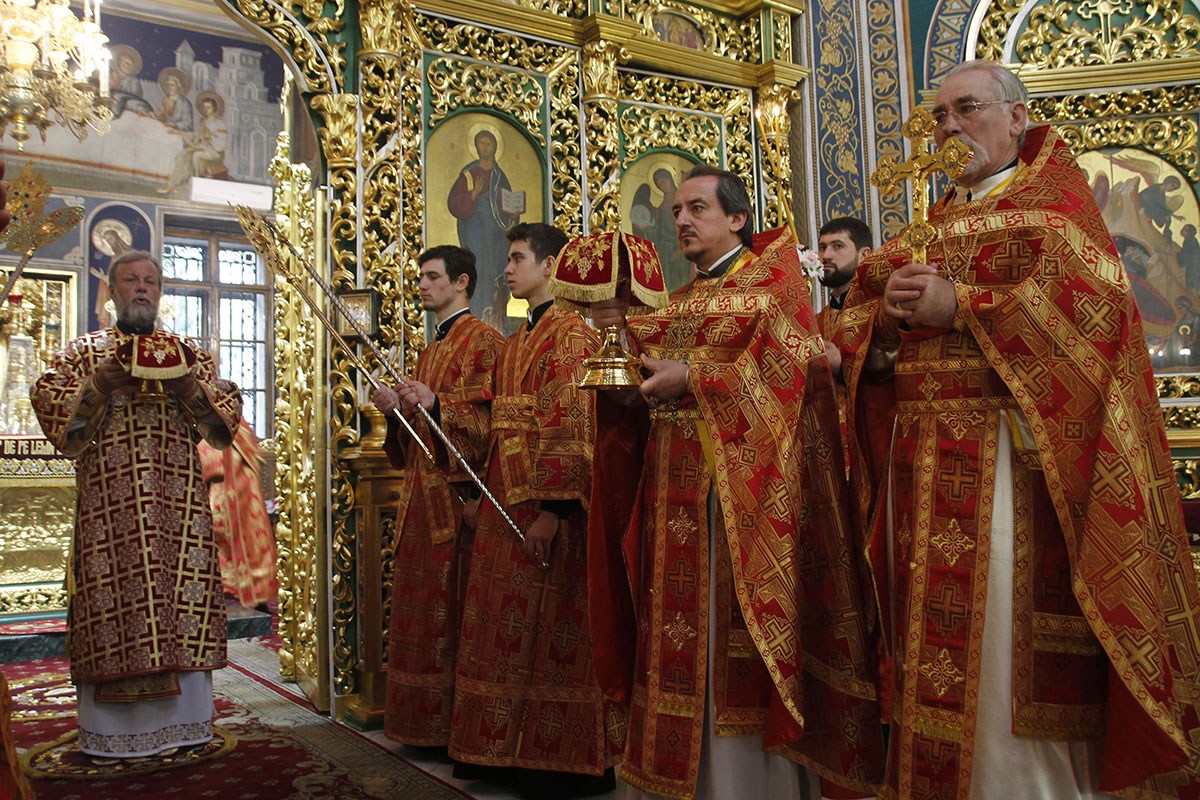 Его Высокопреосвященству сослужили: митр. прот. Вадим Кейбаш, секретарь Кишиневско-Молдавской митрополии, соборное духовенство.
