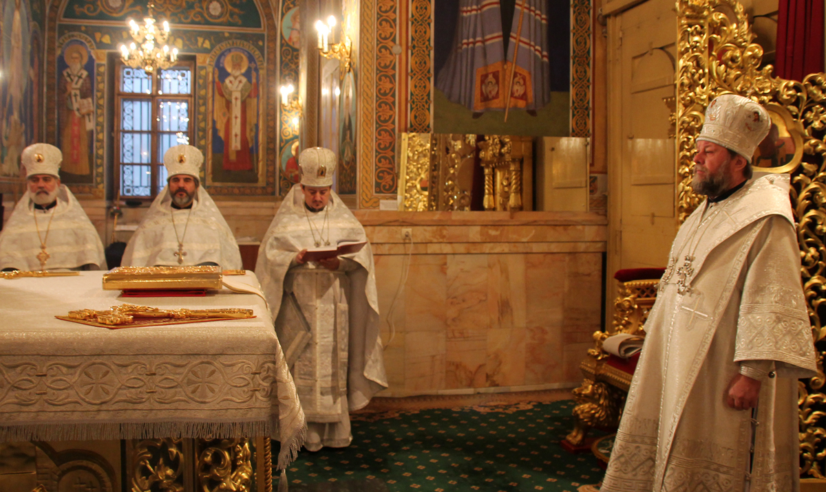 Богослужебные песнопения исполнял большой соборный хор под управлением регента А. Ангени.