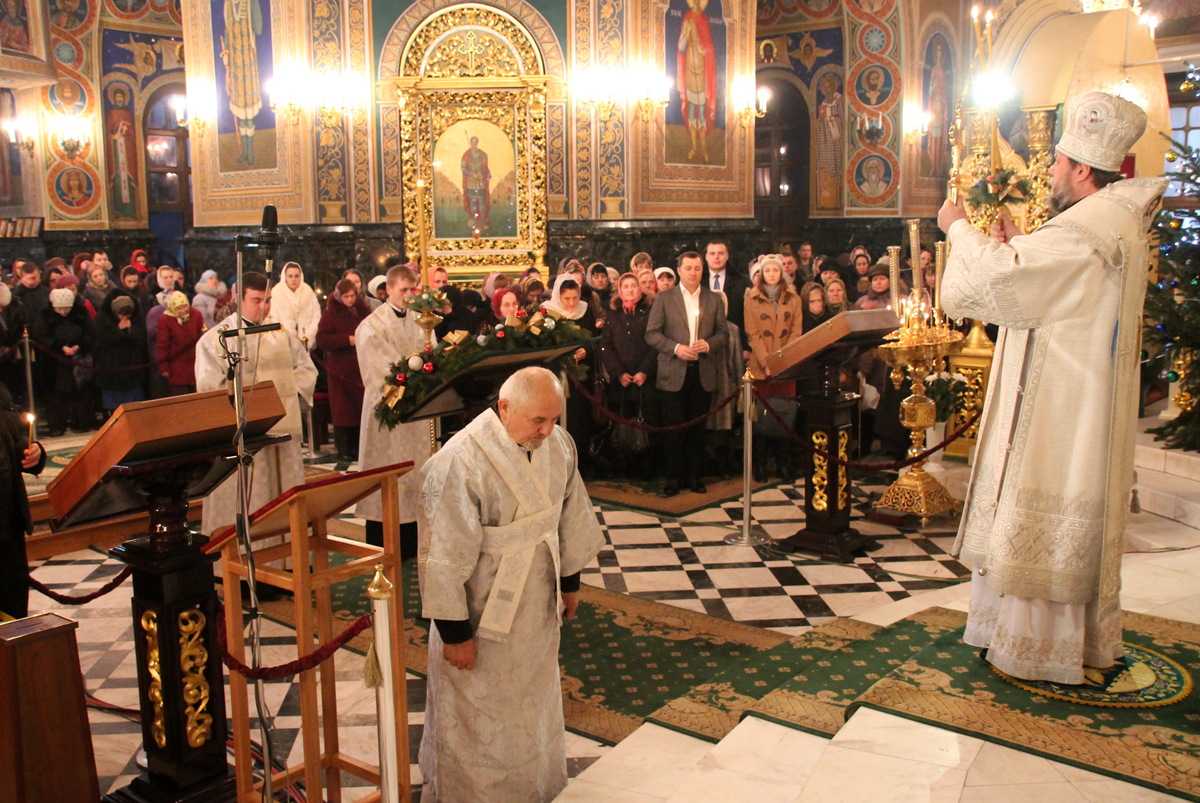 Проповедь перед причастием произнес митрофорный протоиерей Вадим Кейбаш, ключарь кафедрального собора Рождества Христова.