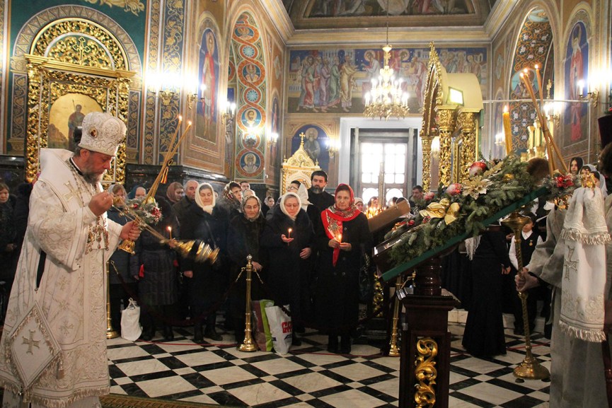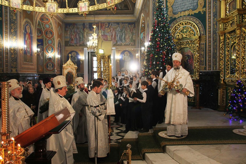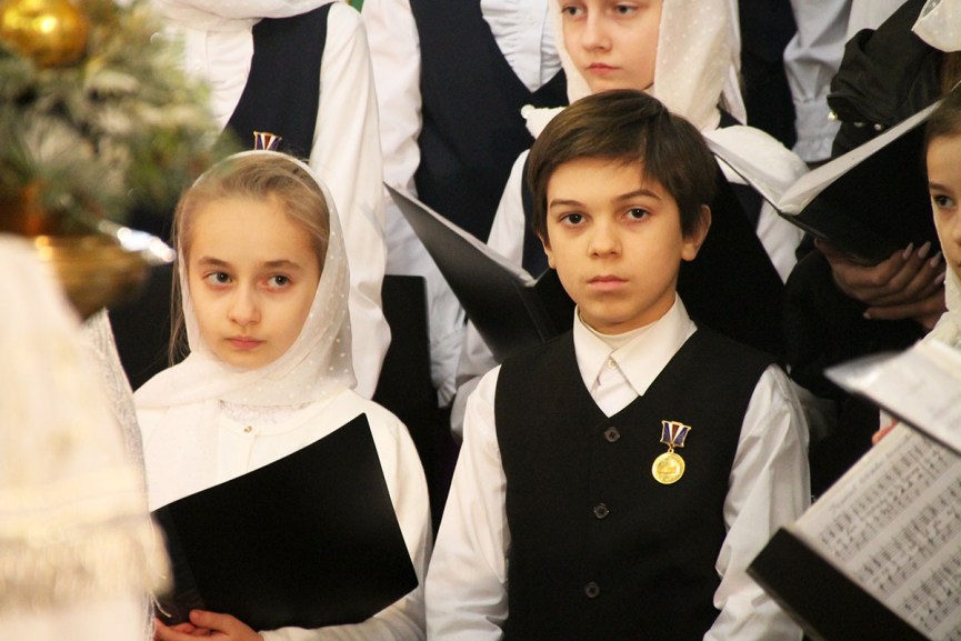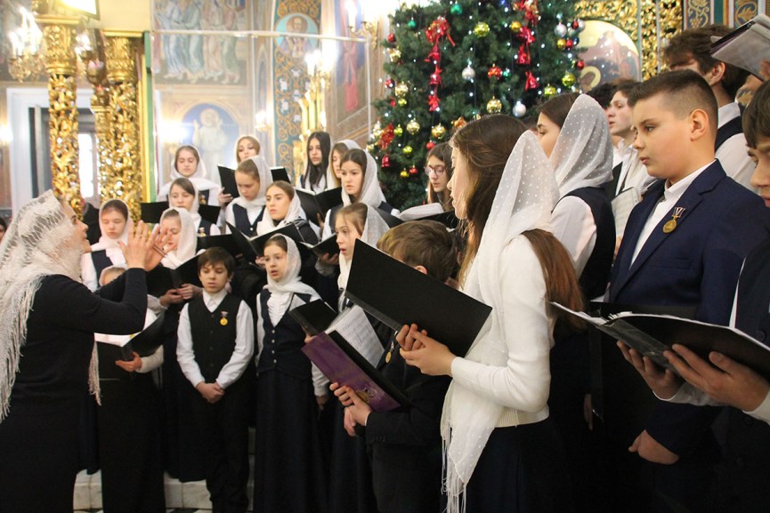 Богослужебные песнопения исполнял большой соборный хор под управлением регента Ангелины Павлюченко.