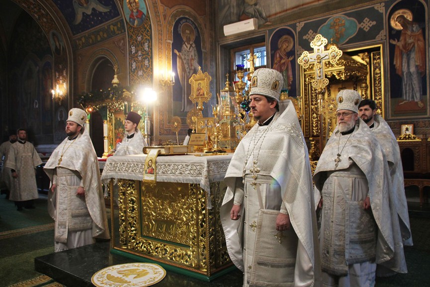 Его Высокопреосвященству сослужили: митр. прот. Вадим Кейбаш, секретарь Кишиневско-Молдавской митрополии, соборное духовенство.