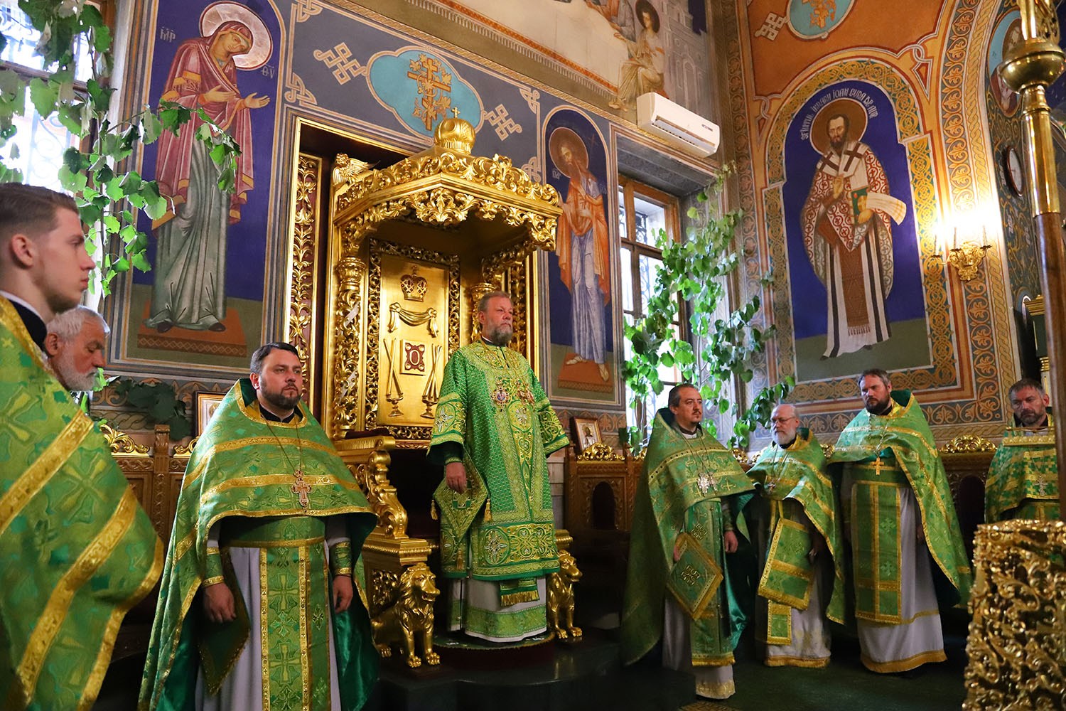 По окончании Литургии Высокопреосвященный владыка Митрополит совершил великую вечерню праздника Пятидесятницы с чтением коленопреклонных молитв.