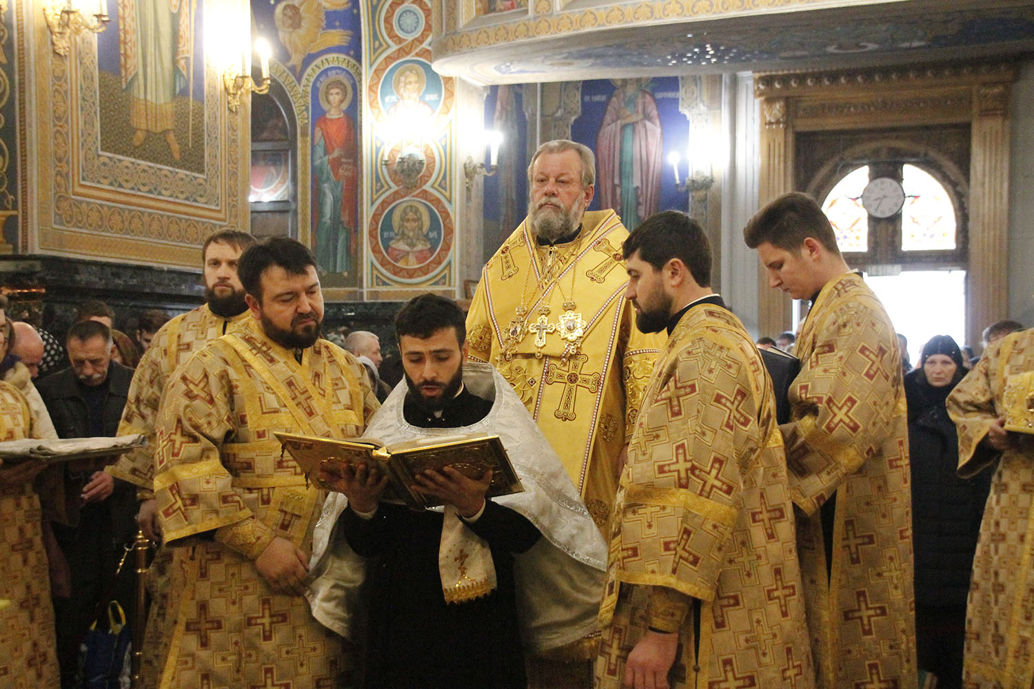 Его Высокопреосвященству сослужили духовенство кафедрального собора.