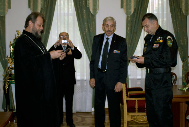 Таким образом, за активную плодотворную деятельность владыка Владимир наградил нескольких членов Ассоциации ветеранов местных войн и вооруженных конфликтов в Республике Молдова, а именно: Сергея Гарабажи, президента Ассоциации ветеранов, Георгия Урекяну, члена Ассоциации, примара села Бричений Векь, Виктора Фуртунэ, председателя Департамента по защите прав ветеранов, – медалью Святого Штефана Великого; Иона Мирона и Валерия Опря, членов Ассоциации, – медалью Преподобного Паисия Величковского. Во встрече также приняли участие секретарь организации Анатолий Сефер и один из ее членов – Василий Чорный.