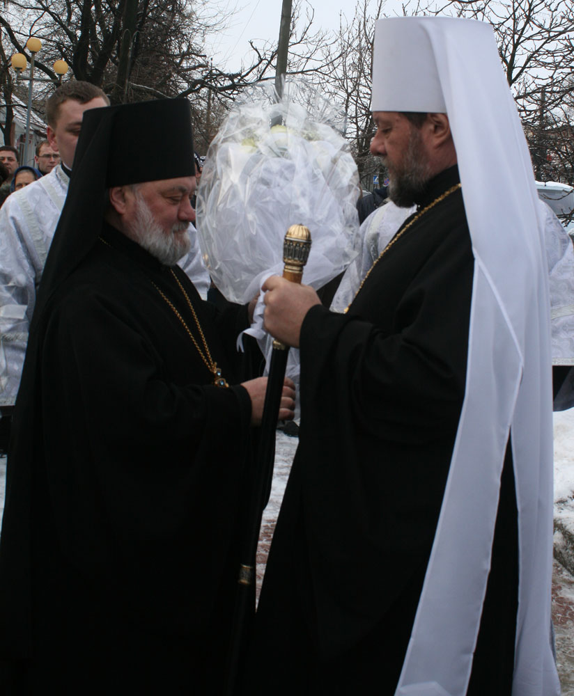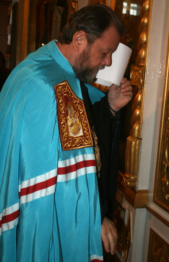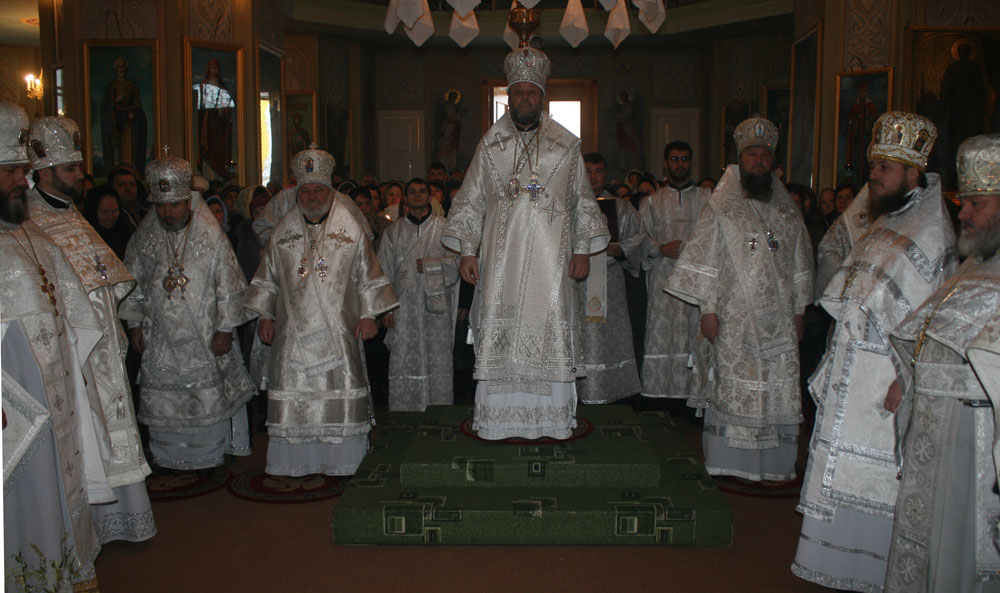 После литургии Высокопреосвященный митрополит Владимир и все православные верующие, присутствовавшие на богослужении, совершили крестный ход вокруг храма с чтением Евангелия, затем Предстоятель отслужил благодарственный молебен.