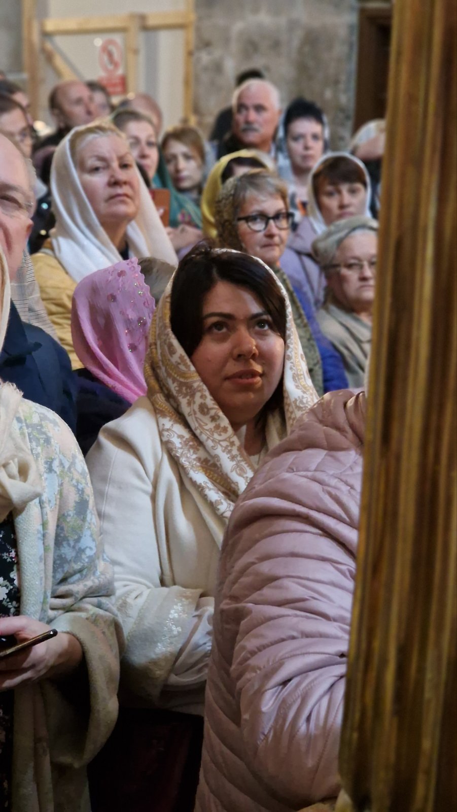 Нет ничего святее, более возвышенного, величественнее, торжественнее и более животворящего Божественной литургии. Во время Литургии Церковь становится Небом на земле, а совершители этого великой службы — священнослужители, прообразуют собой Самого Христа, ангелов, херувимов, серафимов и апостолов. Об этом богослужении, совершенном в ночь с субботы на воскресенье, наши паломники, присутствовавшие в Иерусалимском храме Воскресения Христова, свидетельствовали, что испытали подлинную пасхальную радость — Пасхи посреди зимы.