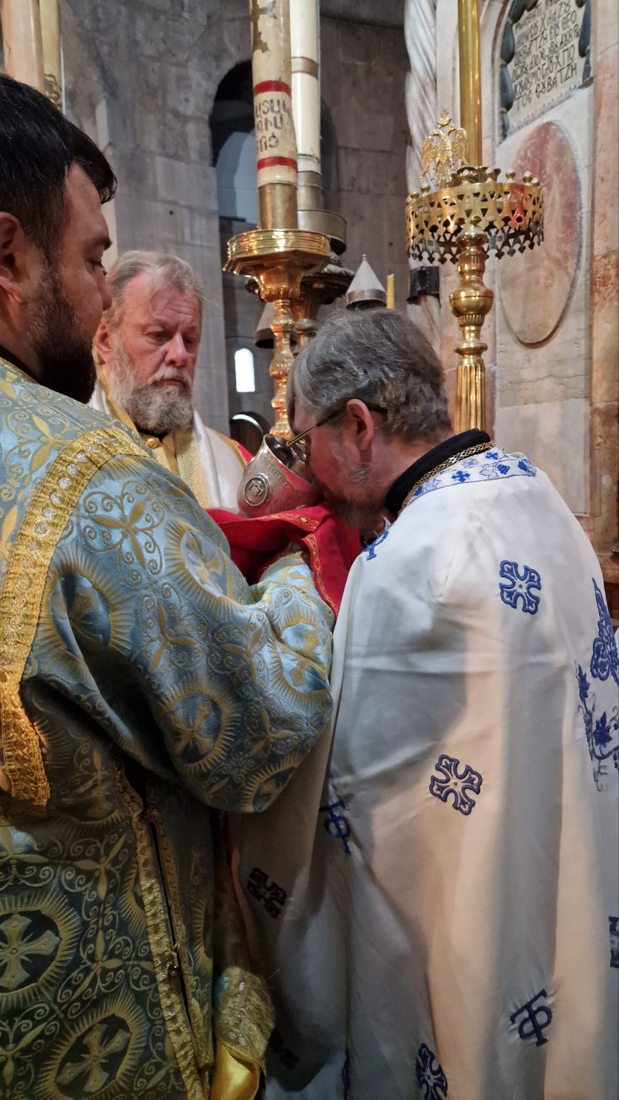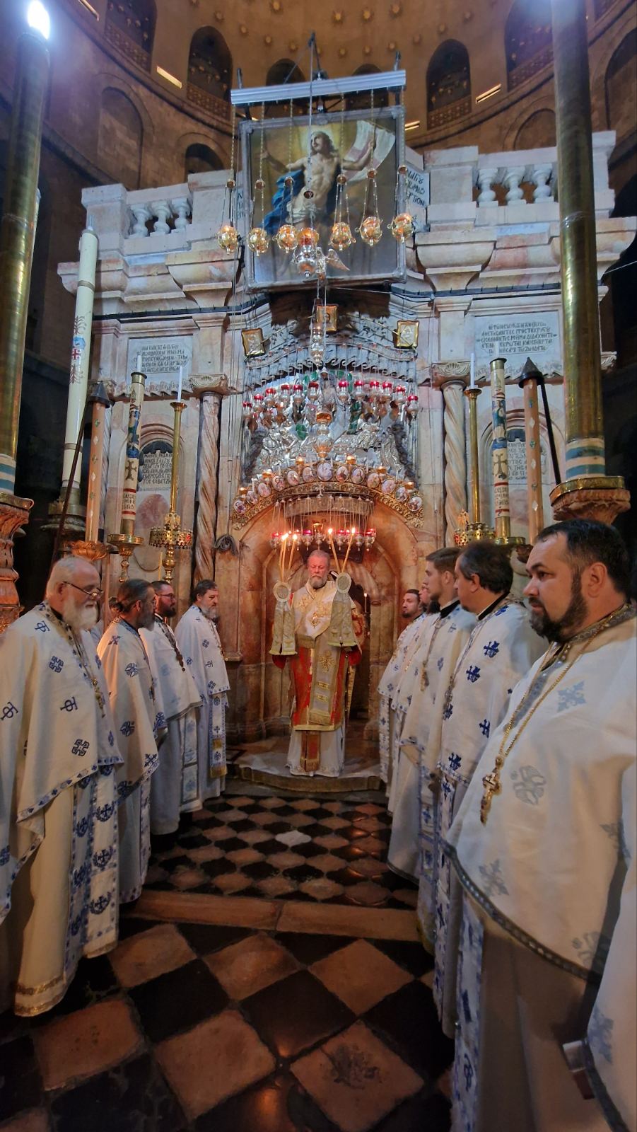 В ночь с субботы на воскресенье, 10-11 декабря 2022 года, в Неделю 26-ю по Пятидесятнице, Высокопреосвященный Митрополит Кишиневский и всея Молдовы Владимир в сослужении Высокопреосвященного архиепископа Мадабского Аристовула (Иерусалимский Патриархат), Преосвященного епископа Величского Сиония (Болгарская Православная Церковь), Преосвященного епископа Сорокского Иоанна, викария Кишиневской епархии, совершил ночную Божественную литургию святителя Иоанна Златоуста в храме Воскресения Христова (Гроба Господня) в Иерусалиме. Сослужили архипастырям внушительный собор священнослужителей и диаконов, при стечении сотен паломников из Молдовы и других стран.