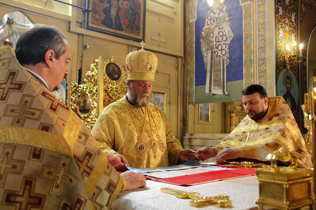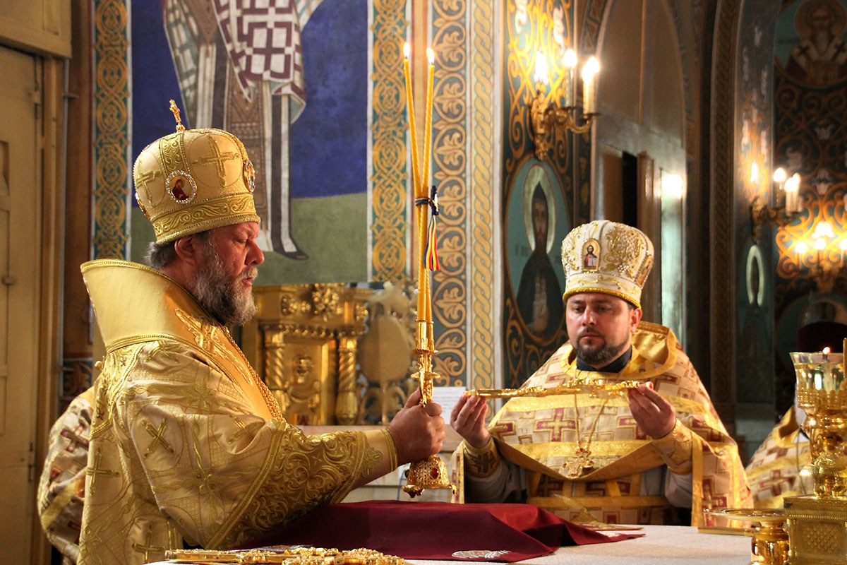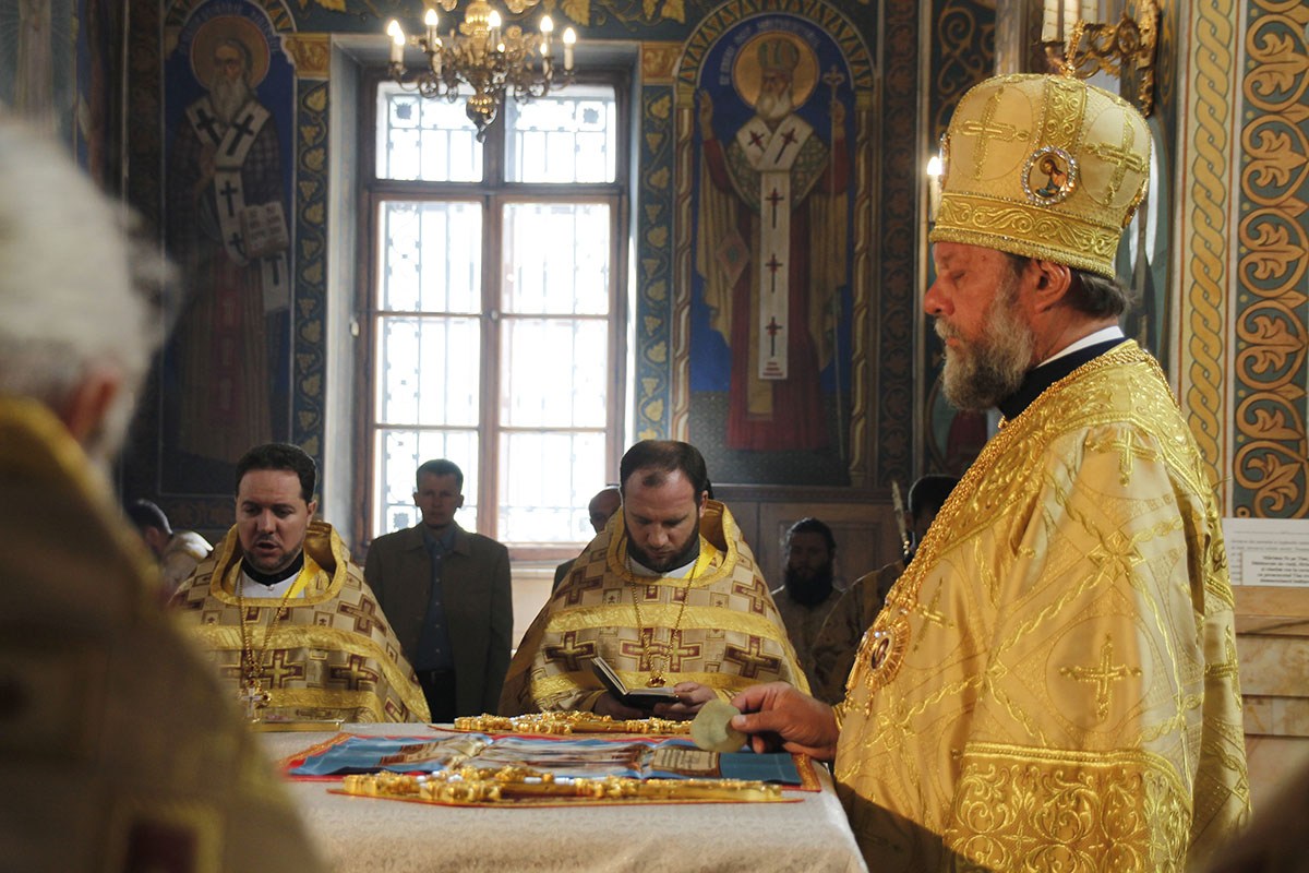 Его Высокопреосвященству сослужили: митр. прот. Вадим Кейбаш, секретарь Кишиневско-Молдавской митрополии, соборное духовенство.