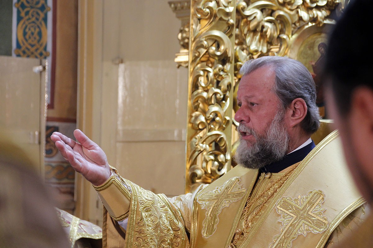 Затем Высокопреосвященный Митрополит Владимир обратился к собравшимся в храме с архипастырским словом, поздравив всех именинников с днем небесного покровителя.