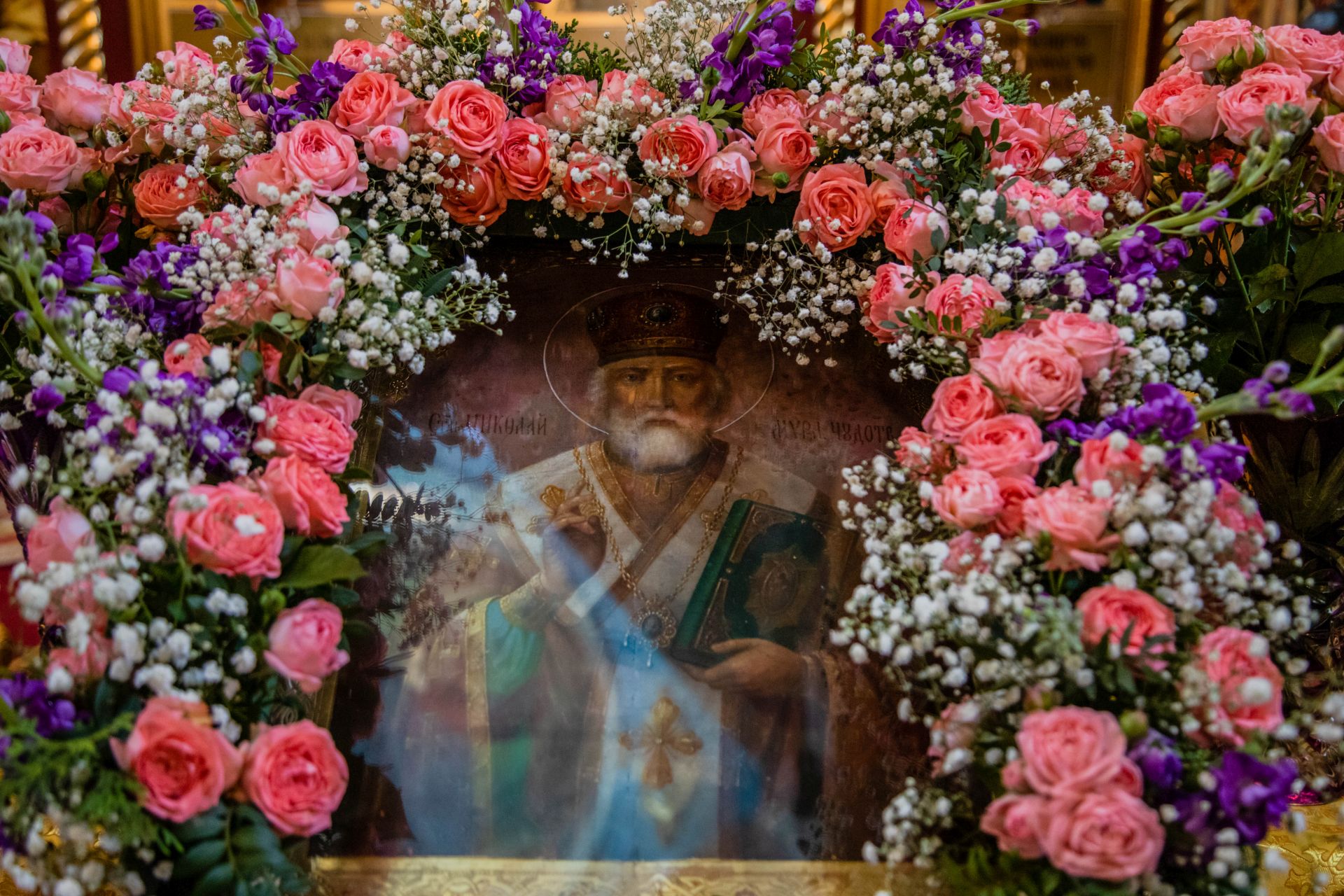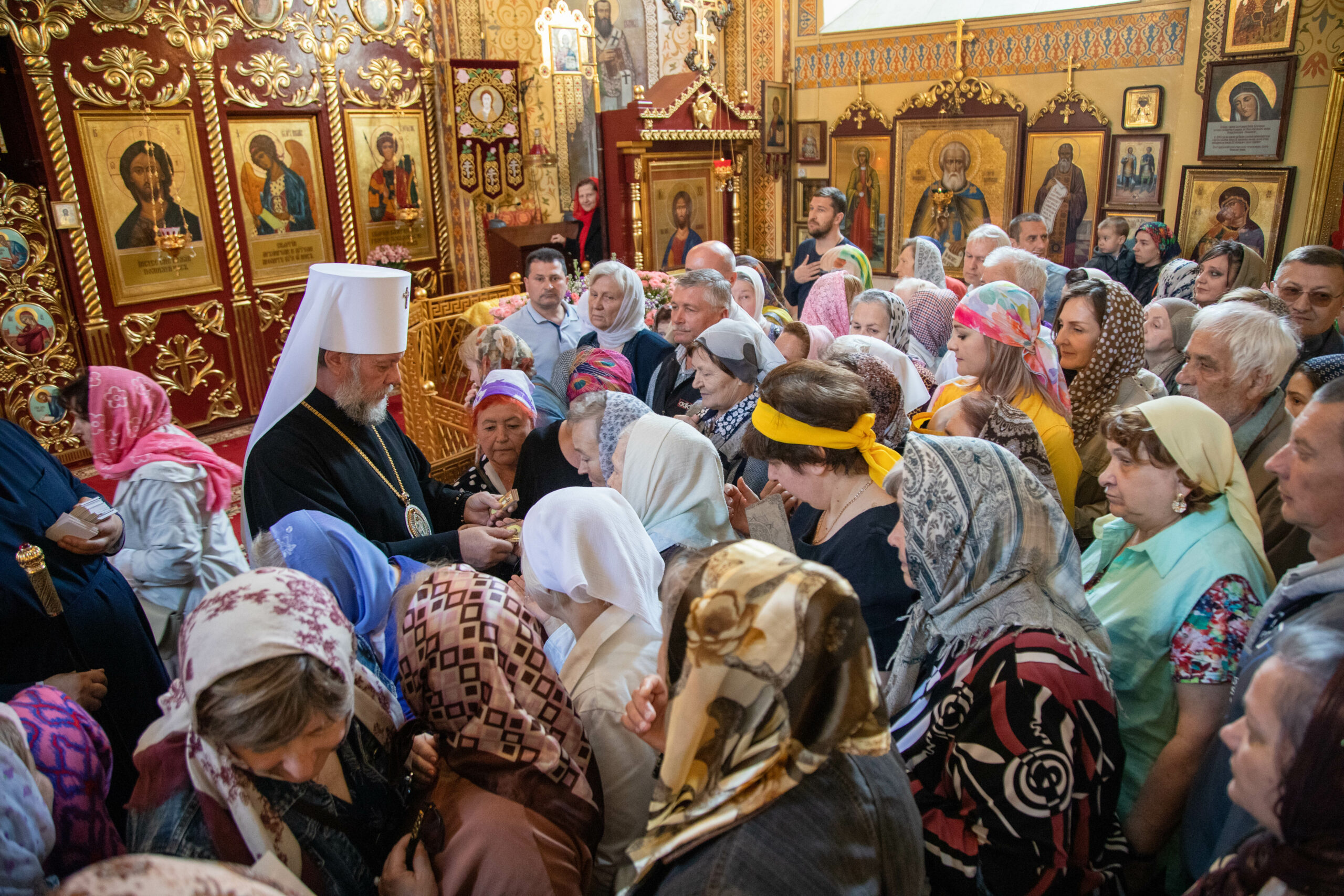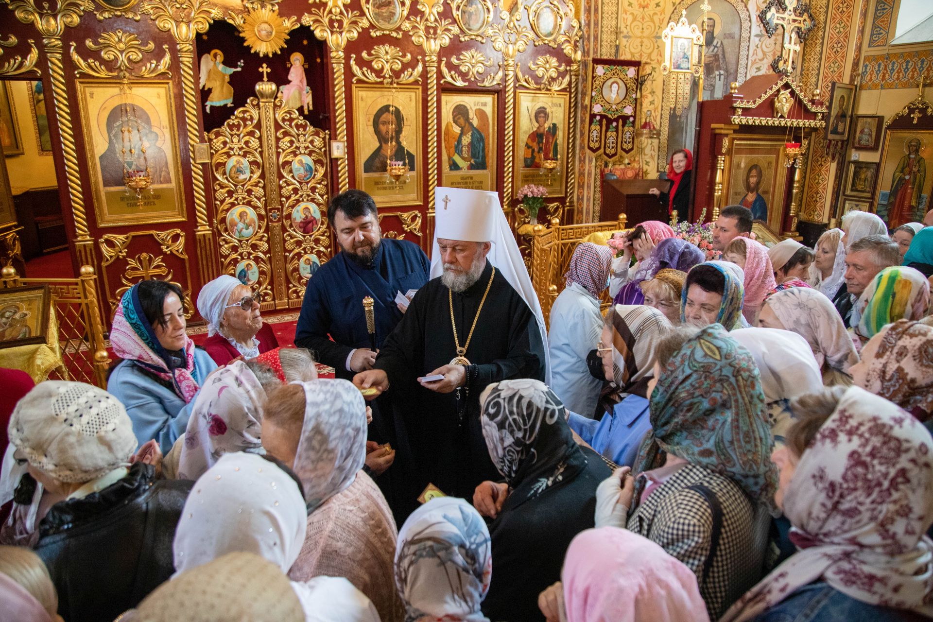 В завершение Высокопреосвященный Митрополит Владимир обратился к участникам праздничного богослужения с архипастырским словом. Его Высокопреосвященство высоко оценил пастырские труды отца настоятеля и всестороннюю поддержку прихожан по благоустройству храма, его внешнего и наружного убранства. Все участники богослужения получили из рук Владыки Митрополита иконки с архиерейским благословением с образом святителя Николая Чудотворца.
