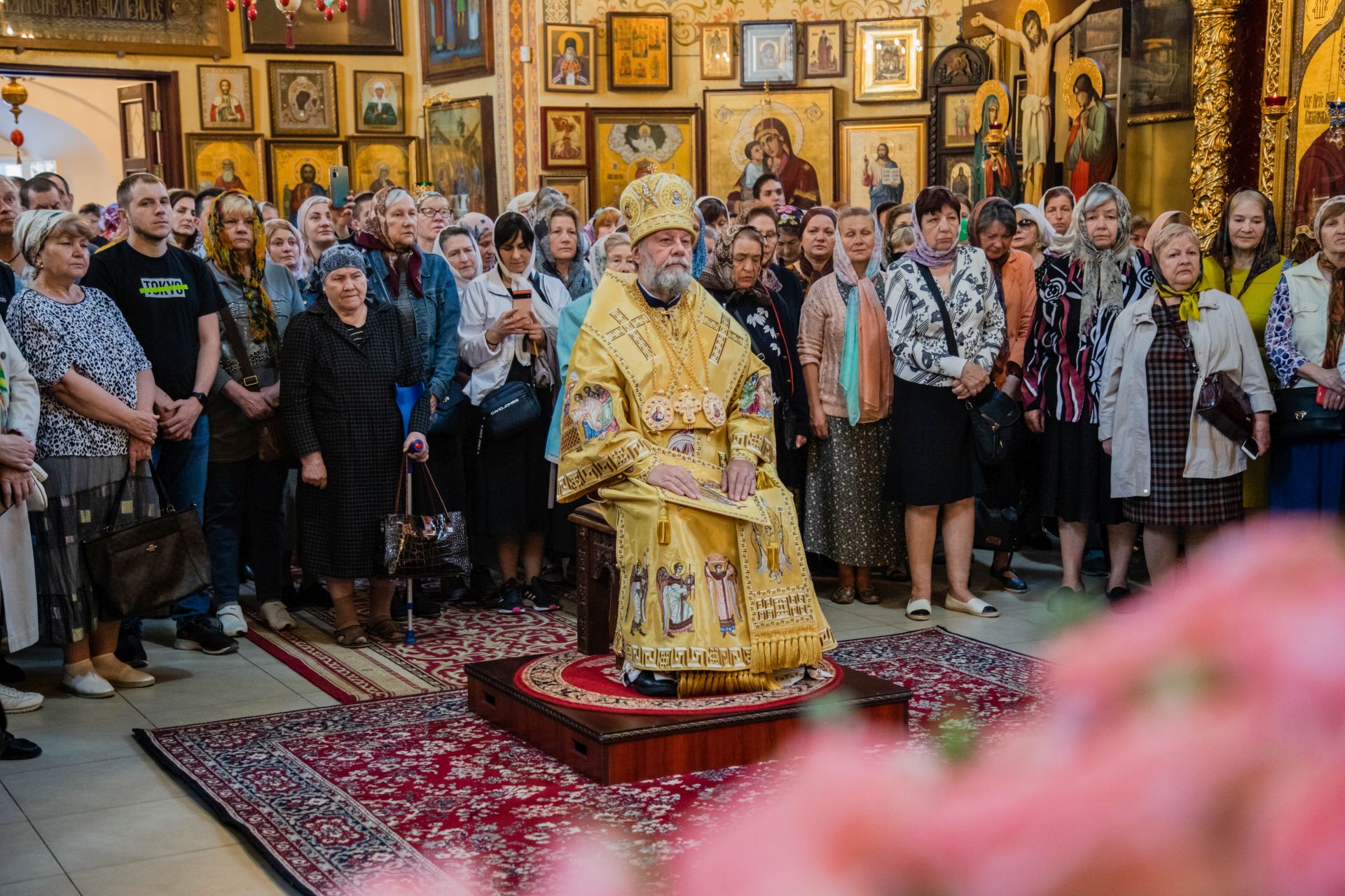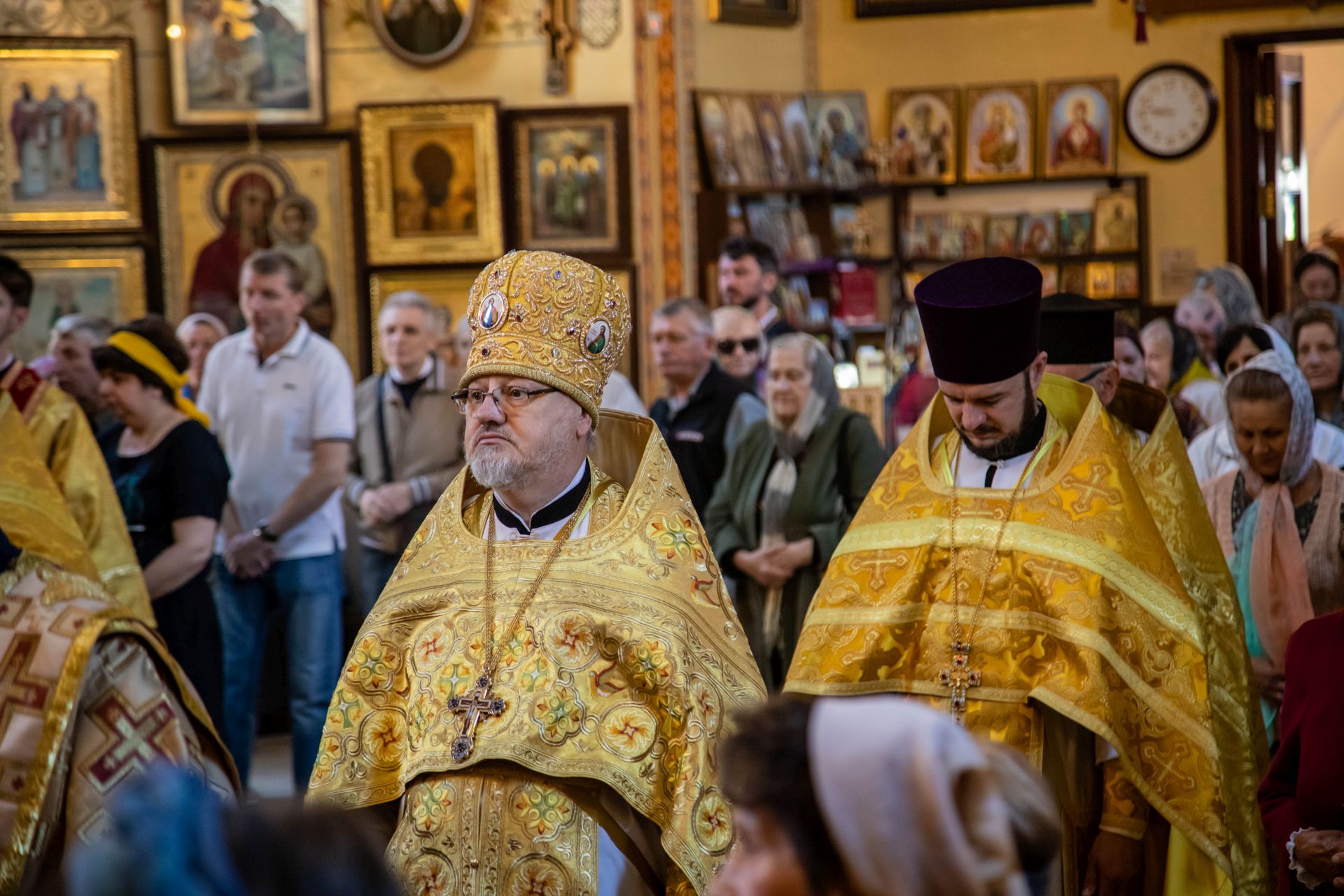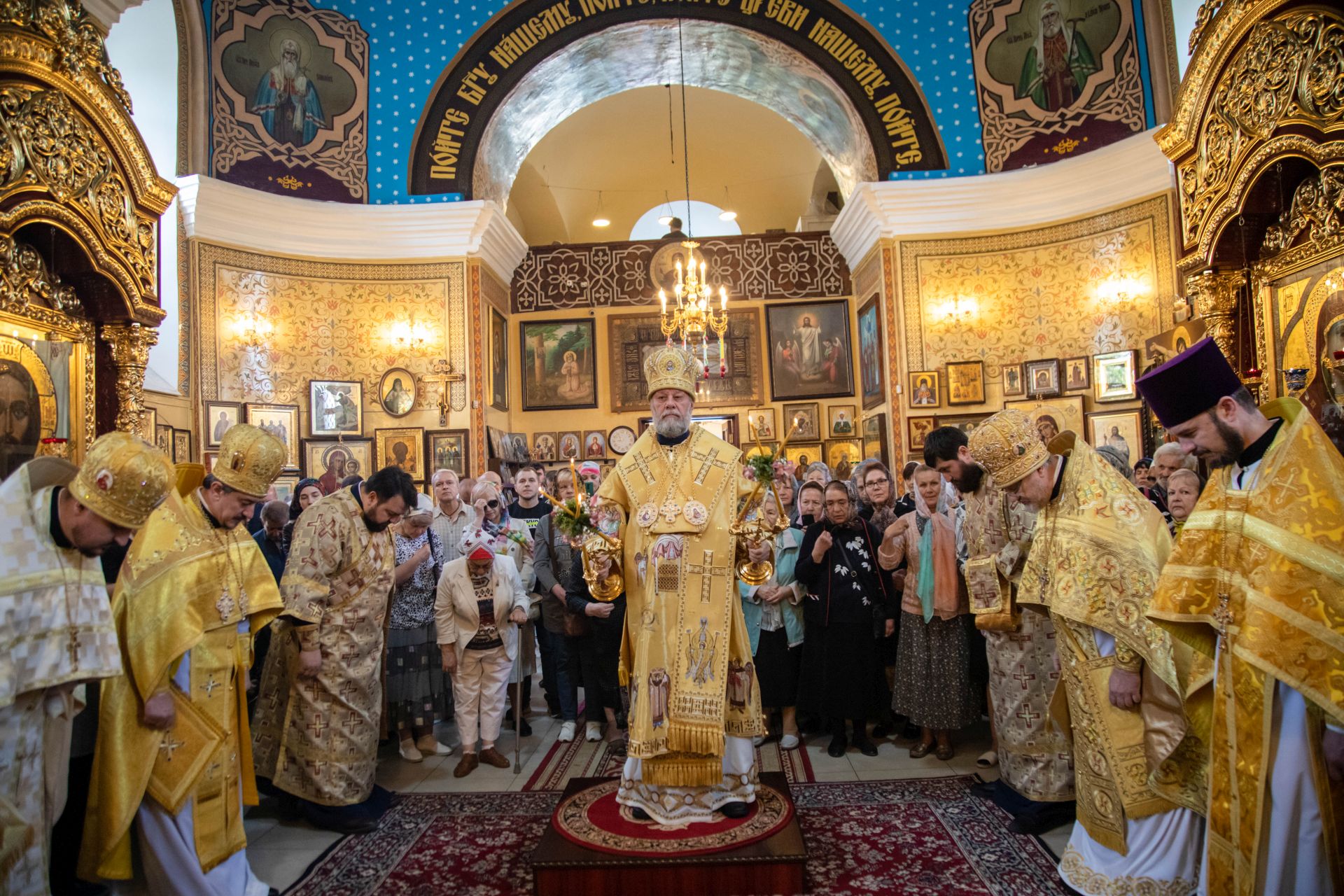 В завершение Высокопреосвященный Митрополит Владимир обратился к участникам праздничного богослужения с архипастырским словом. Его Высокопреосвященство высоко оценил пастырские труды отца настоятеля и всестороннюю поддержку прихожан по благоустройству храма, его внешнего и наружного убранства. Все участники богослужения получили из рук Владыки Митрополита иконки с архиерейским благословением с образом святителя Николая Чудотворца.