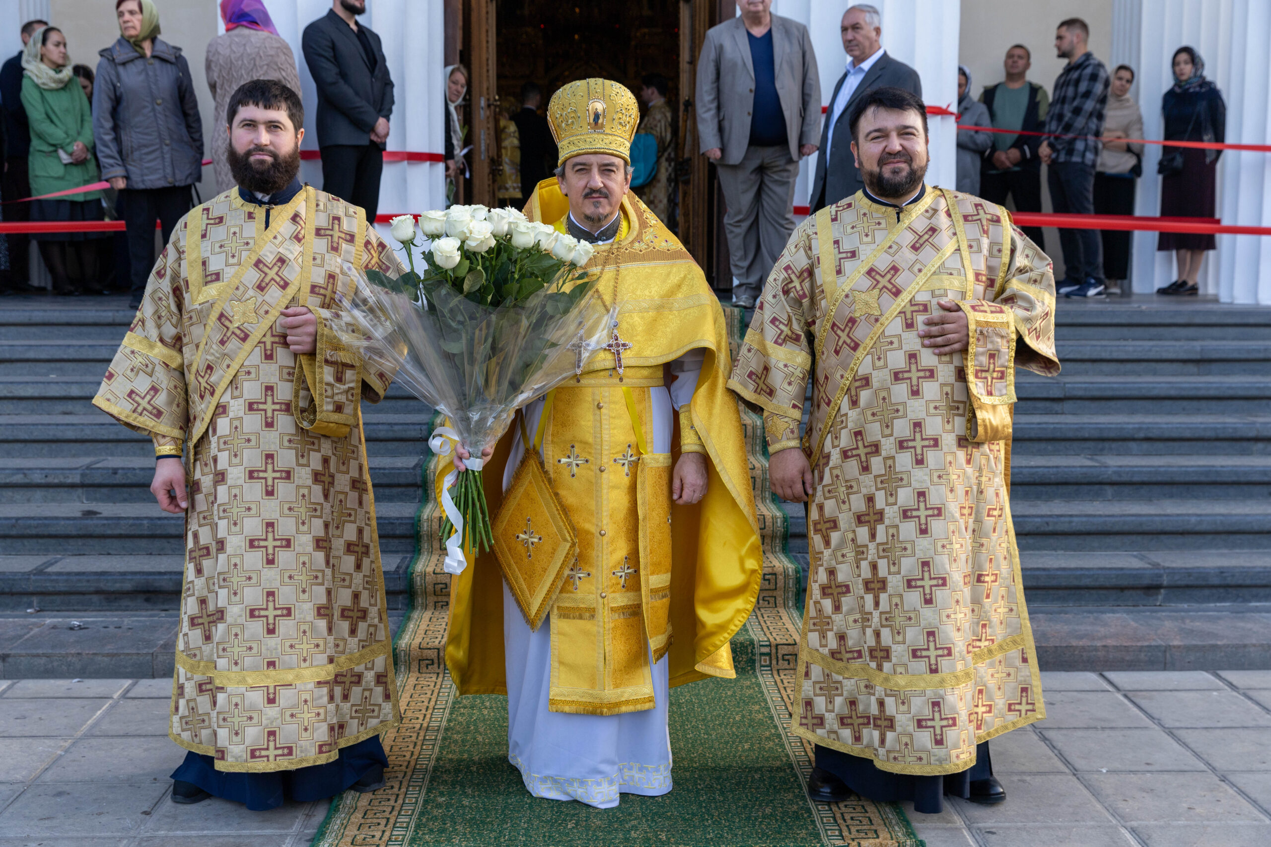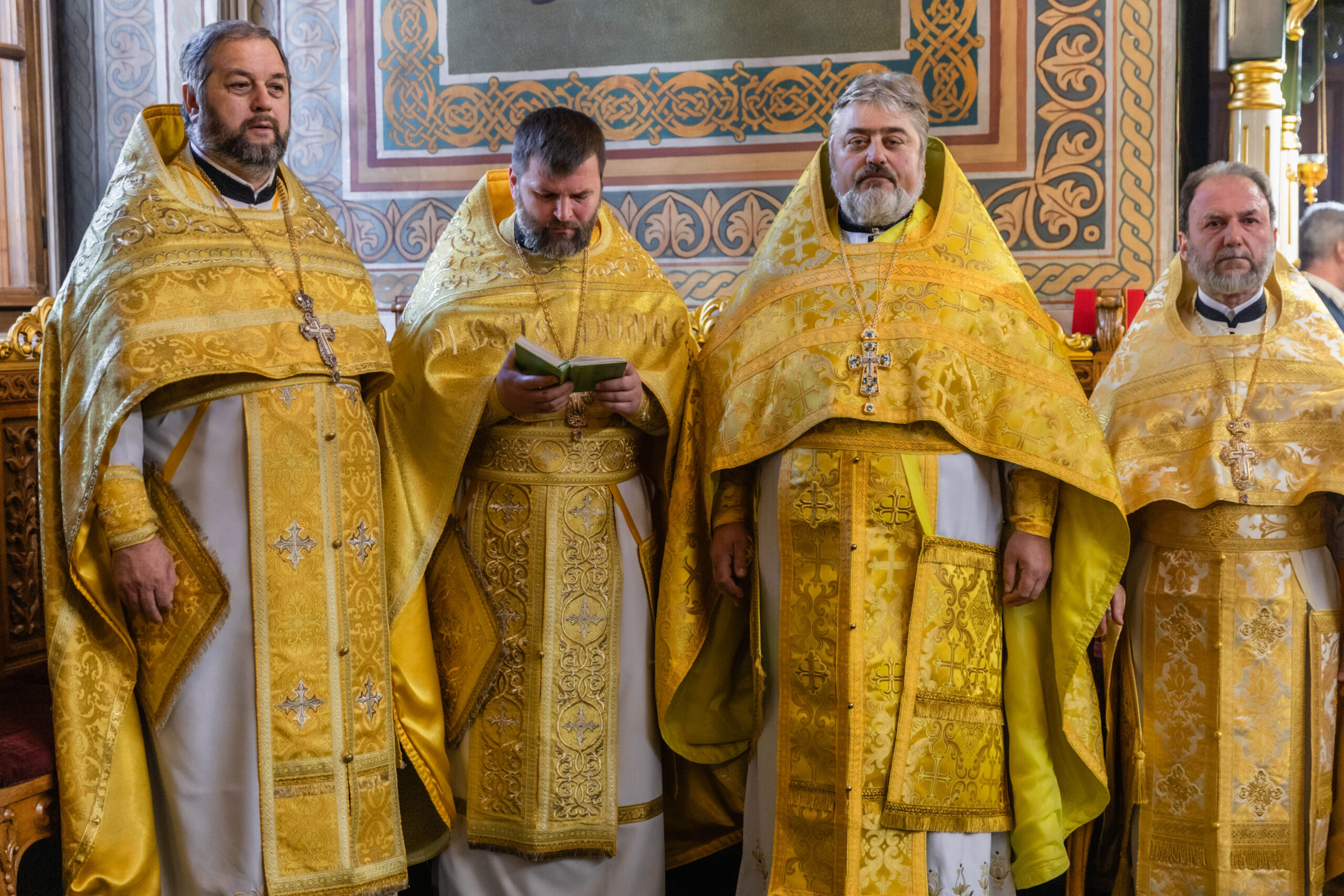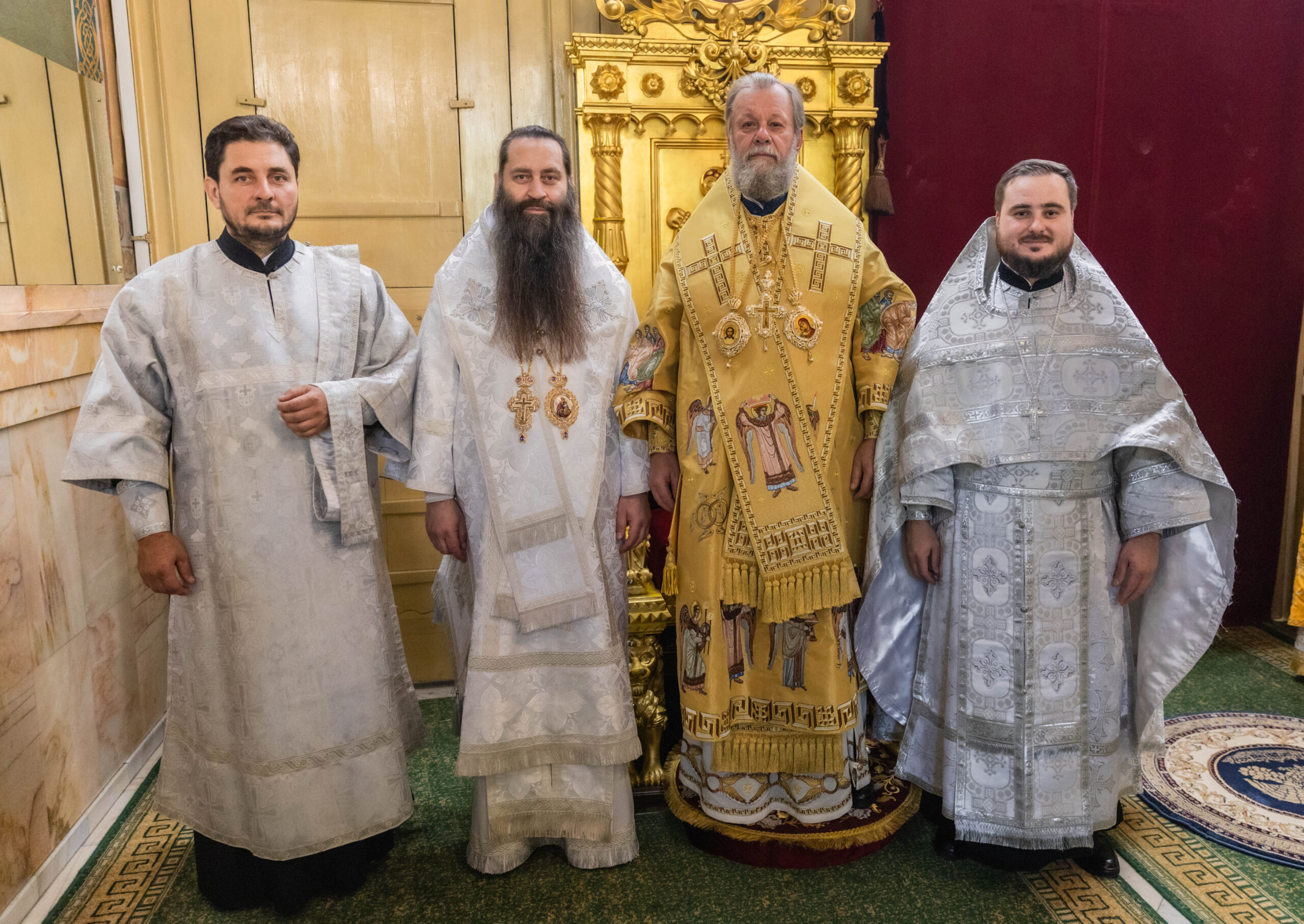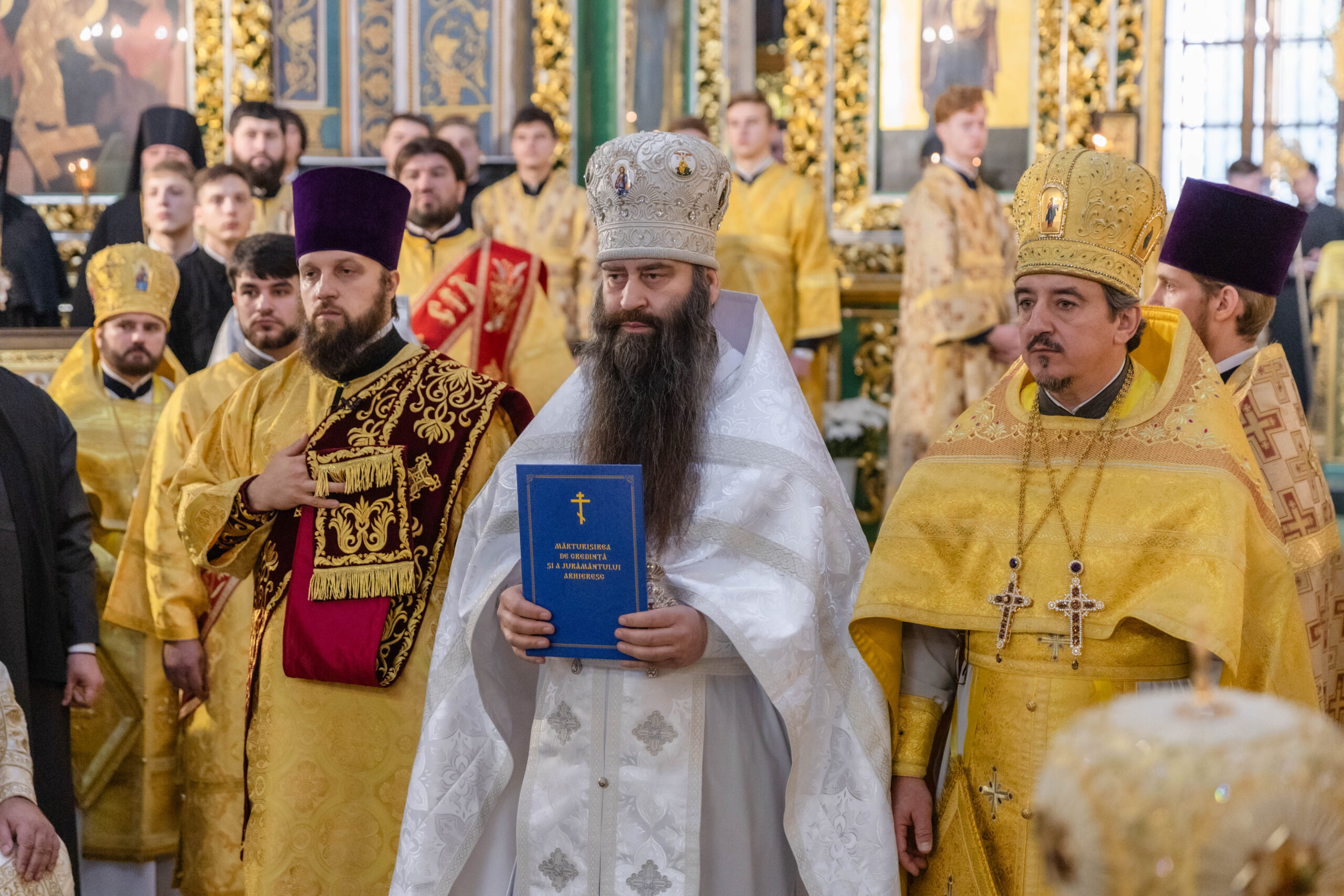 Его Высокопреосвященству сослужили: Архиепископ Тираспольский и Дубоссарский Савва, Архиепископ Кагульский и Комратский Анатолий, Архиепископ Унгенский и Ниспоренский Петр, председатель Синодальной комиссии по канонизации святых Православной Церкви Молдовы, Архиепископ Бельцкий и Фэлештский Маркелл, Архиепископ Единецкий и Бричанский Никодим, председатель Издательского совета Православной Церкви Молдовы, Епископ Богородский Амвросий, викарий Патриаршего Экзарха Западной Европы, Епископ Сорокский Иоанн, председатель Синодального отдела по взаимоотношениям с обществом и СМИ Православной Церкви Молдовы, викарий Кишиневской епархии, Епископ Орхейский Силуан, председатель Синодального отдела  по монастырям и монашеству Православной Церкви Молдовы, викарий Кишиневской епархии, а также митрофорный протоиерей Вадим Кейбаш, секретарь Кишиневской митрополии, настоятели монастырей и благочинные Кишиневской епархии.