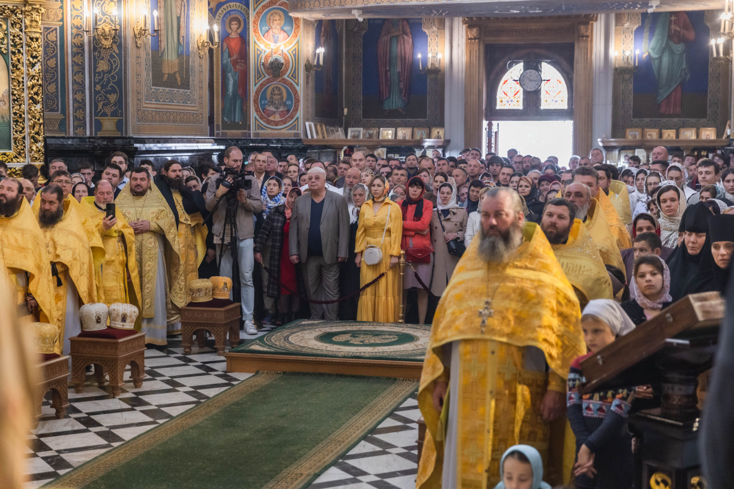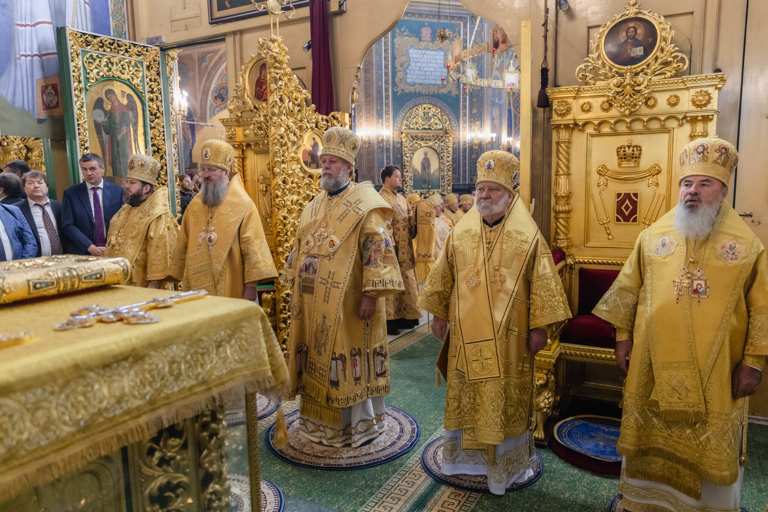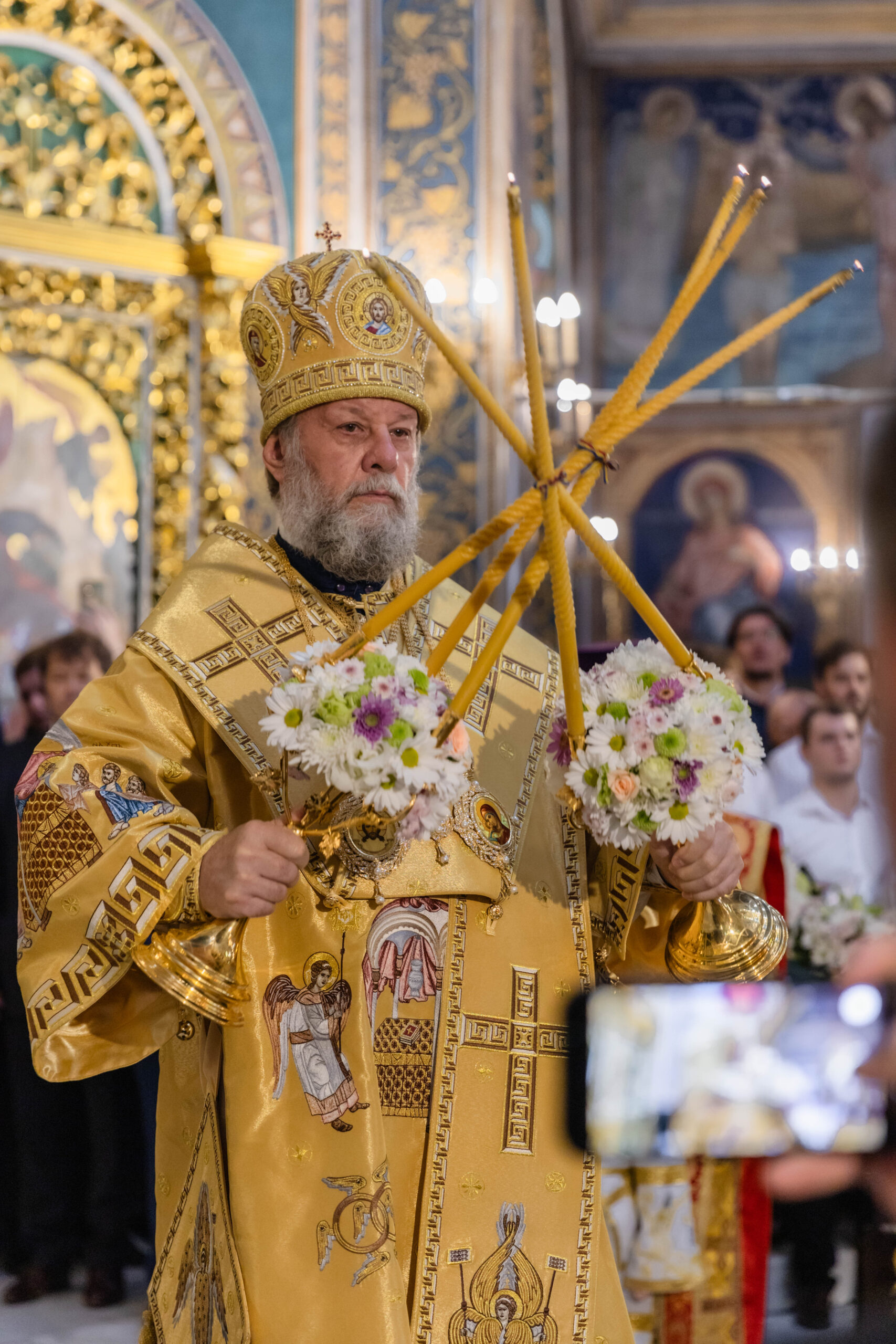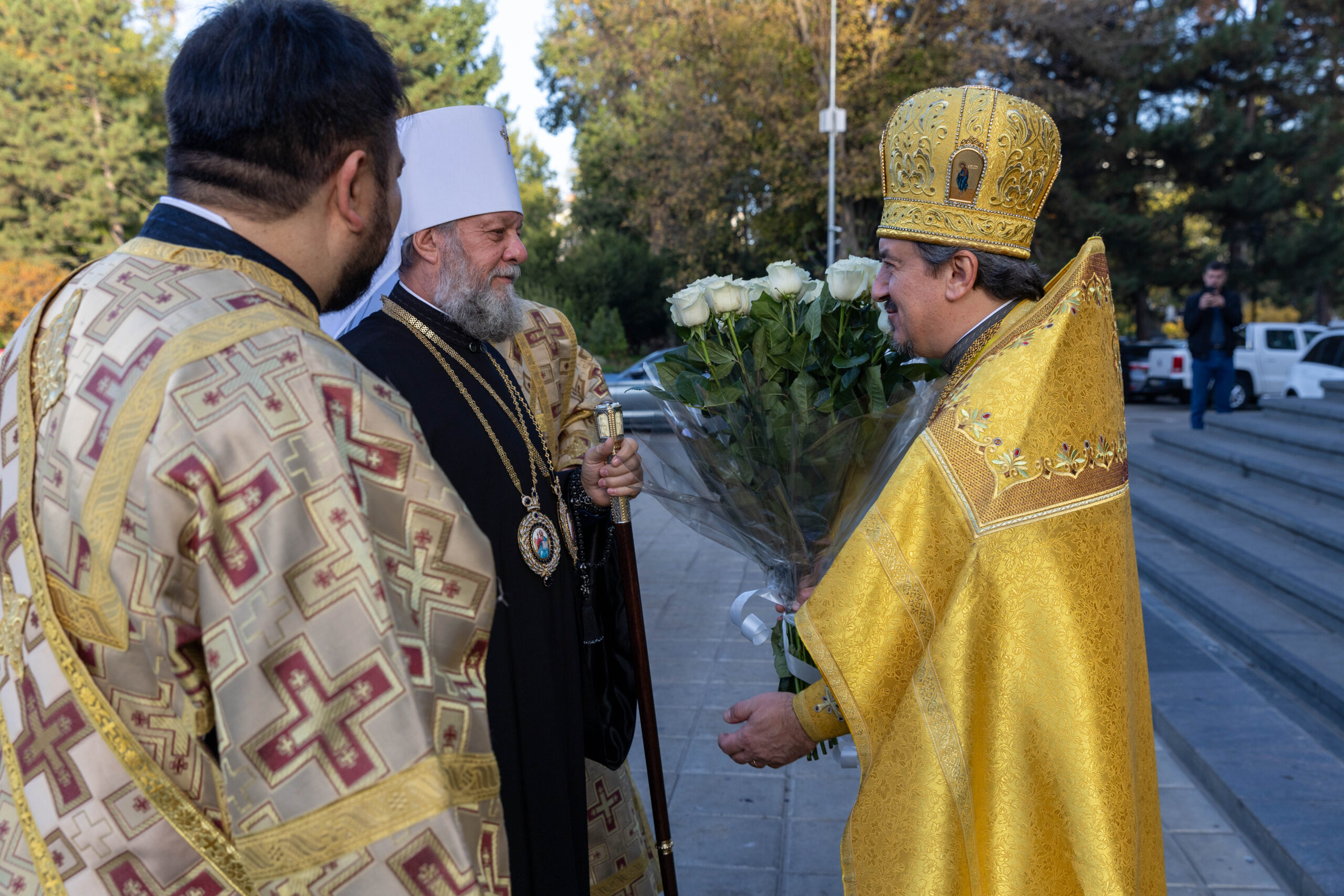 Его Высокопреосвященству сослужили: Архиепископ Тираспольский и Дубоссарский Савва, Архиепископ Кагульский и Комратский Анатолий, Архиепископ Унгенский и Ниспоренский Петр, председатель Синодальной комиссии по канонизации святых Православной Церкви Молдовы, Архиепископ Бельцкий и Фэлештский Маркелл, Архиепископ Единецкий и Бричанский Никодим, председатель Издательского совета Православной Церкви Молдовы, Епископ Богородский Амвросий, викарий Патриаршего Экзарха Западной Европы, Епископ Сорокский Иоанн, председатель Синодального отдела по взаимоотношениям с обществом и СМИ Православной Церкви Молдовы, викарий Кишиневской епархии, Епископ Орхейский Силуан, председатель Синодального отдела  по монастырям и монашеству Православной Церкви Молдовы, викарий Кишиневской епархии, а также митрофорный протоиерей Вадим Кейбаш, секретарь Кишиневской митрополии, настоятели монастырей и благочинные Кишиневской епархии.