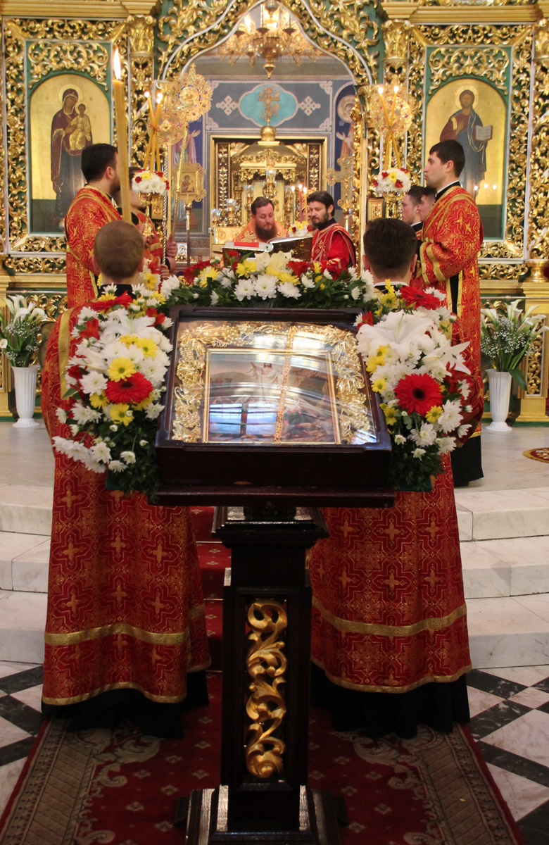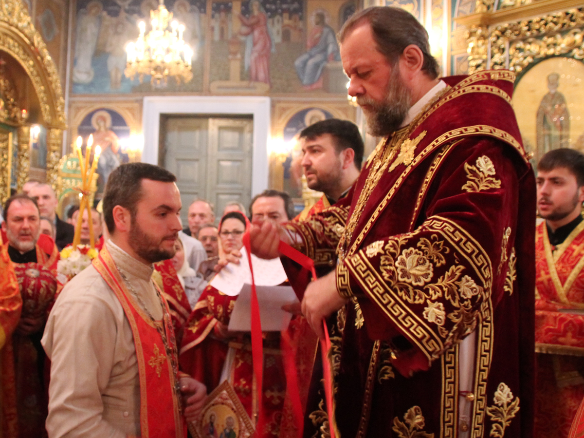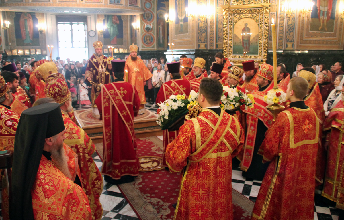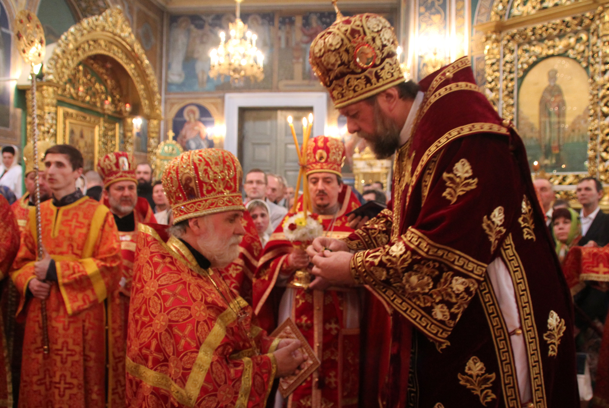 Его Высокопреосвященству сослужили: Преосвященный епископ Сорокский Иоанн, викарий Кишиневской епархии, секретарь Кишиневско-Молдавской митрополии митр. прот. Вадим Кейбаш, благочинный церквей Яловенского района митр. прот. Анатолий Стефанов, настоятель Никольского Добрушского мужского монастыря игумен Петр (Томачинский), настоятель Успенского Бутученского мужского скита игумен Владимир (Поя), священнослужители Яловенского и Кишиневского благочиний, соборное духовенство.