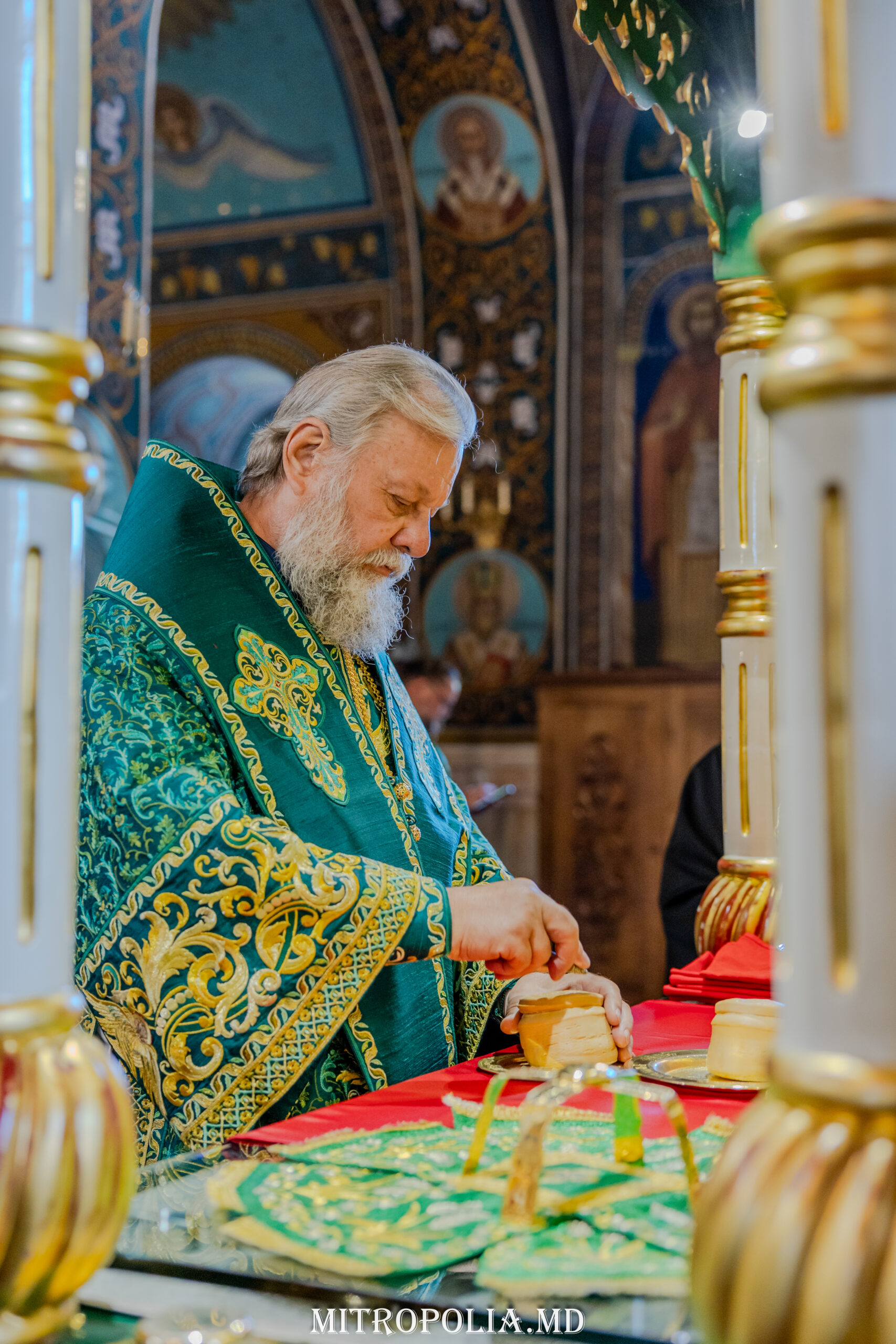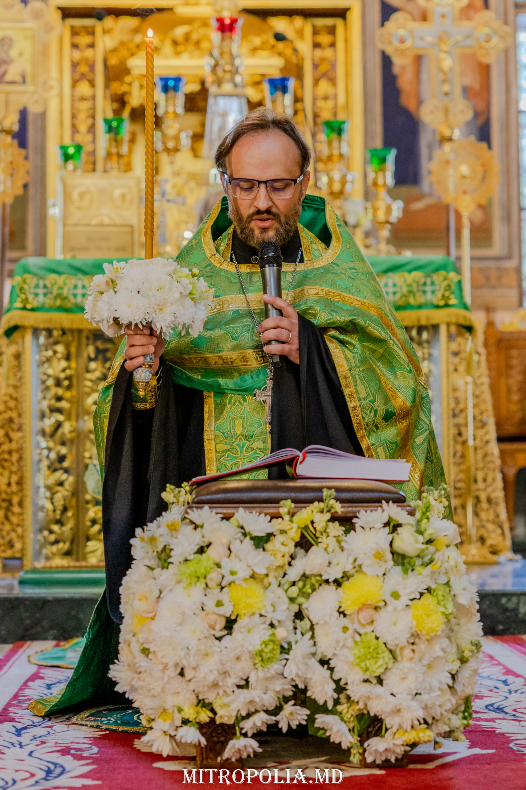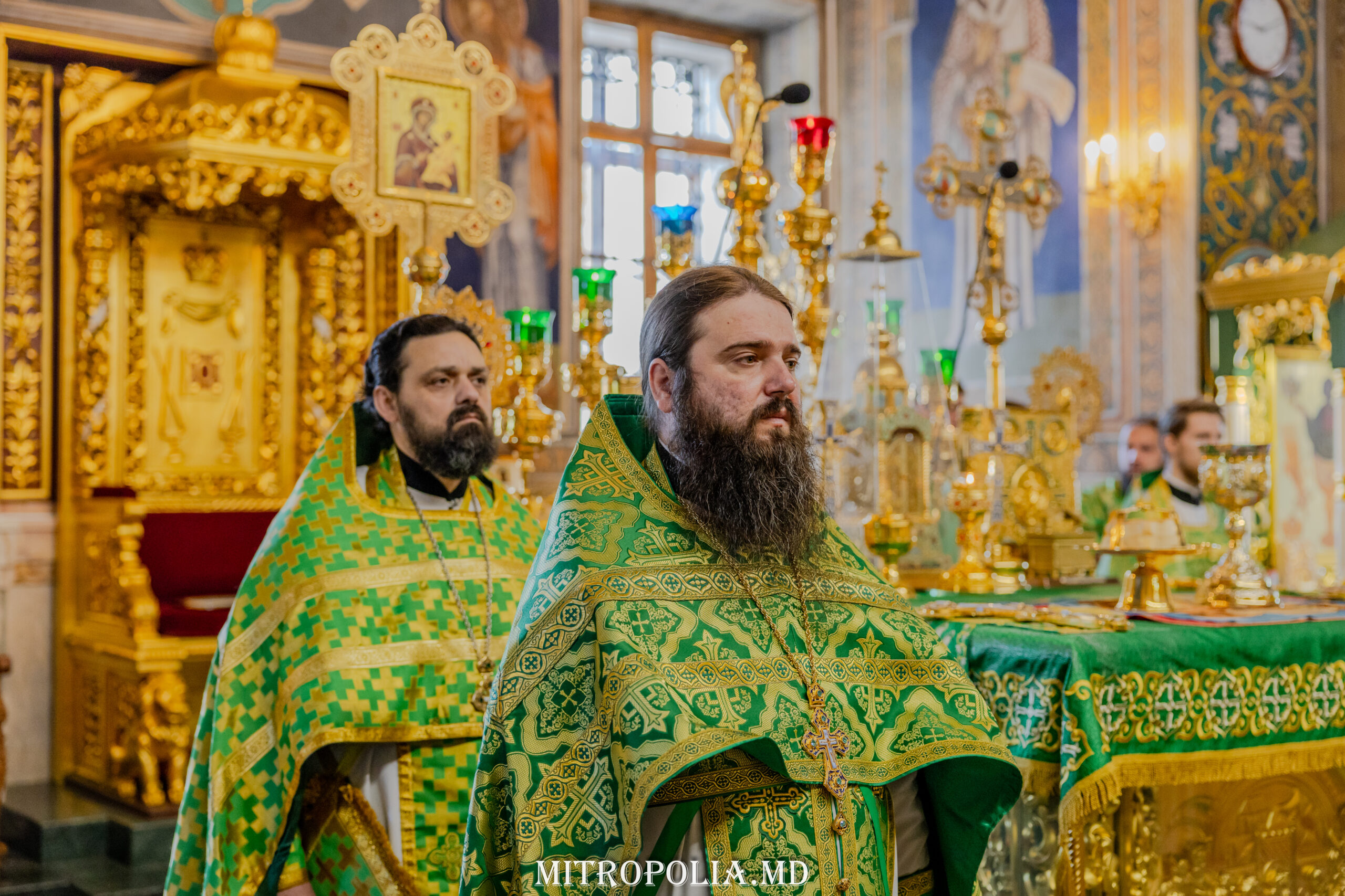 Его Высокопреосвященству сослужили: митр. прот. Вадим Кейбаш, секретарь Кишиневско-Молдавской митрополии, соборное духовенство.