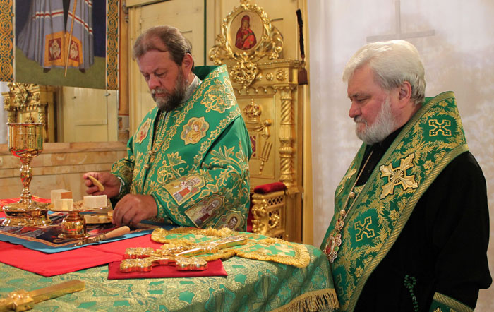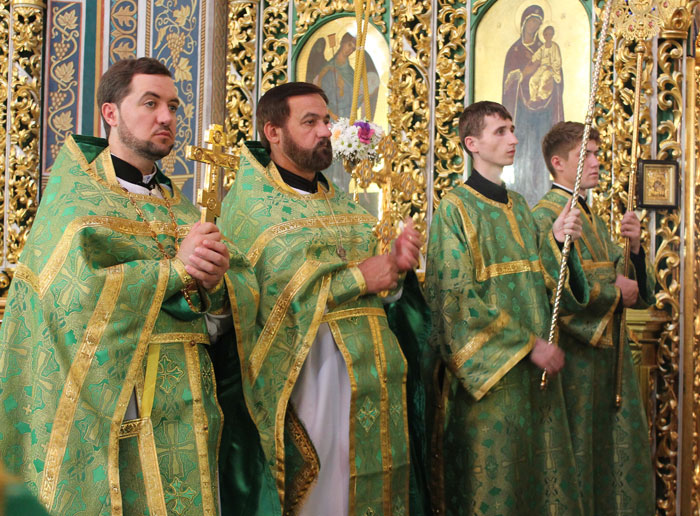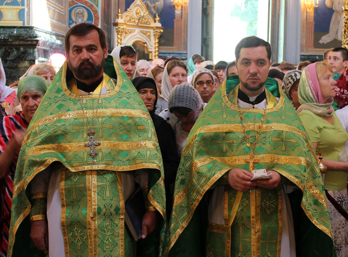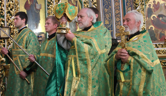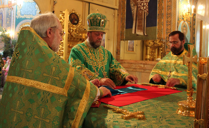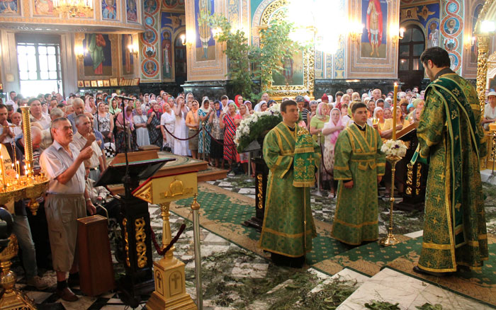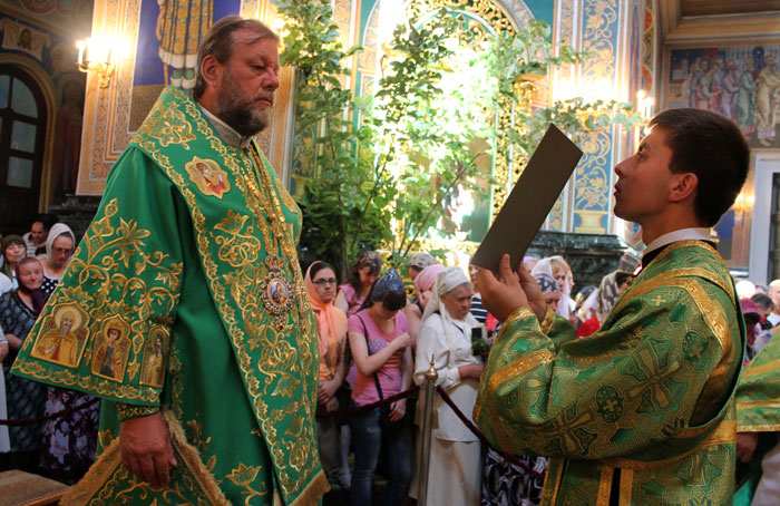 По окончании Божественной литургии, Митрополит Владимир совершил великую вечерню праздника Пятидесятницы с чтением коленопреклонных молитв, во время которых все присутствующие верующие вместе со своим архипастырем, объединенные единым молитвенным порывом, испрашивали у Господа Вседержителя не отвращать своей милости от нашего народа и от нашей земли.