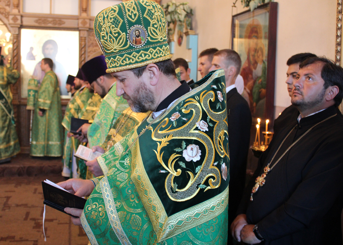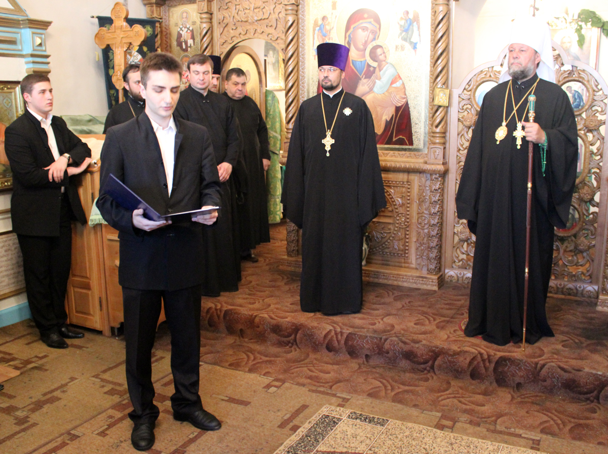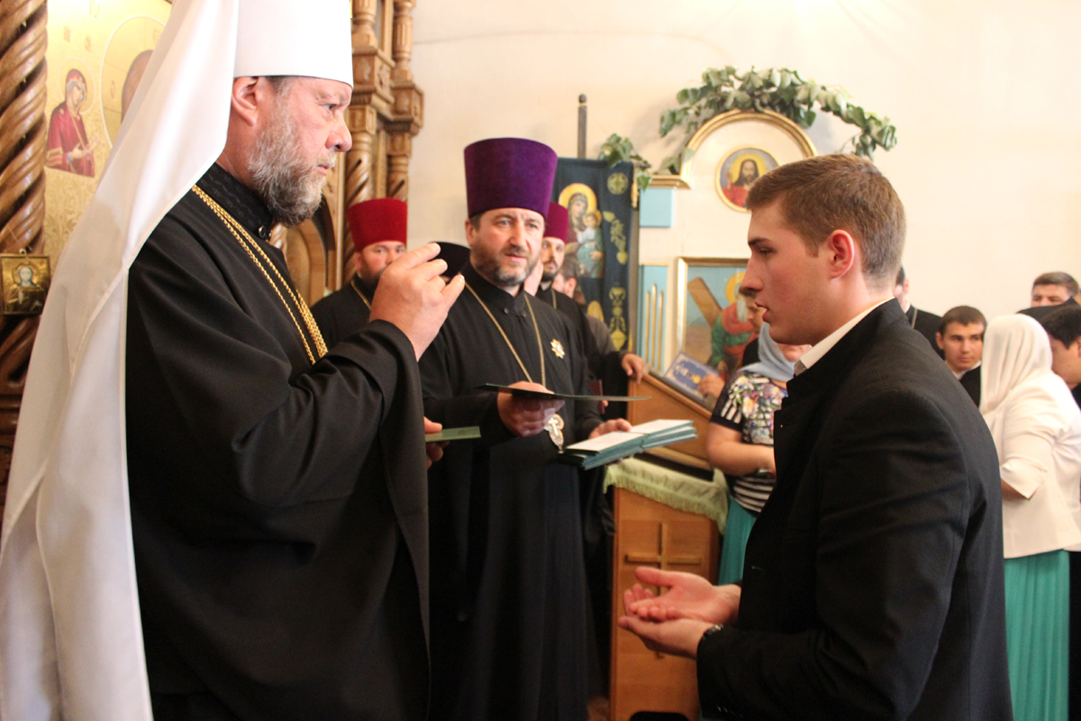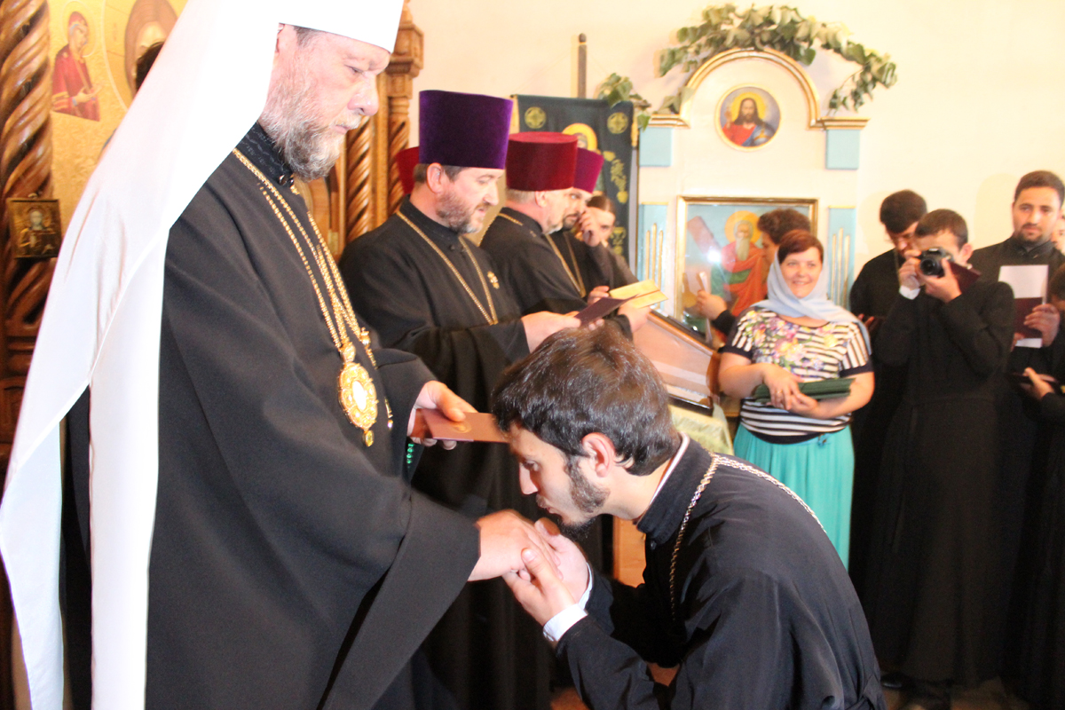 Сослужили Его Высокопреосвященству митрофорный протоиерей Вадим Кейбаш, секретарь Митрополии, митрофорный протоиерей Вячеслав Казаку, проректор учебного заведения, профессора и выпускники в сане.