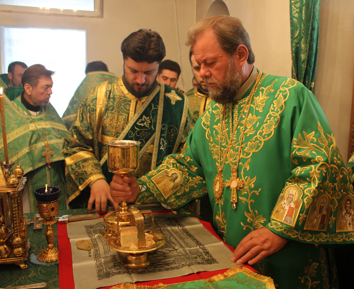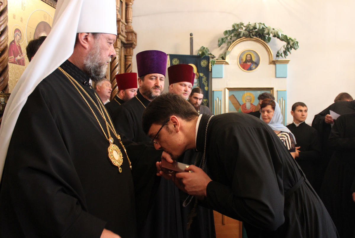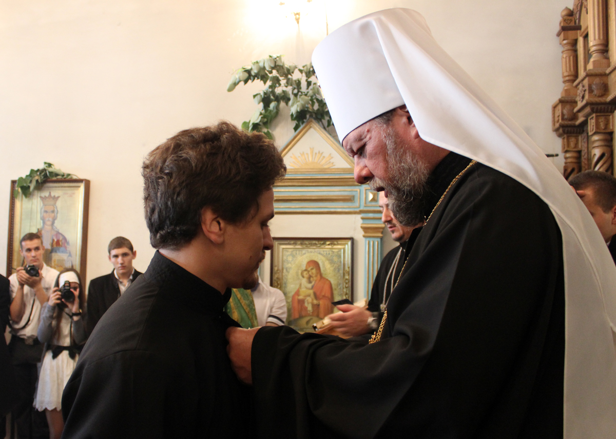 Сослужили Его Высокопреосвященству митрофорный протоиерей Вадим Кейбаш, секретарь Митрополии, митрофорный протоиерей Вячеслав Казаку, проректор учебного заведения, профессора и выпускники в сане.