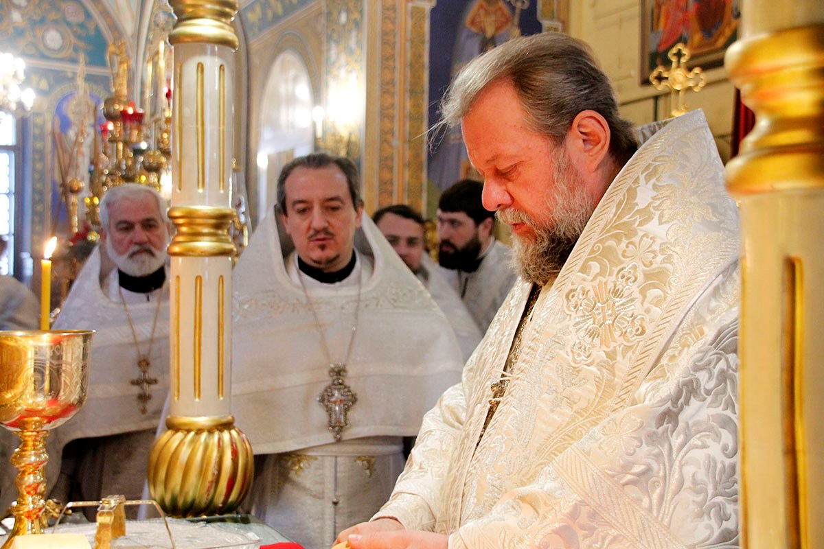 Его Высокопреосвященству сослужили: секретарь Кишиневско-Молдавской митрополии митр. прот. Вадим Кейбаш, соборное духовенство.