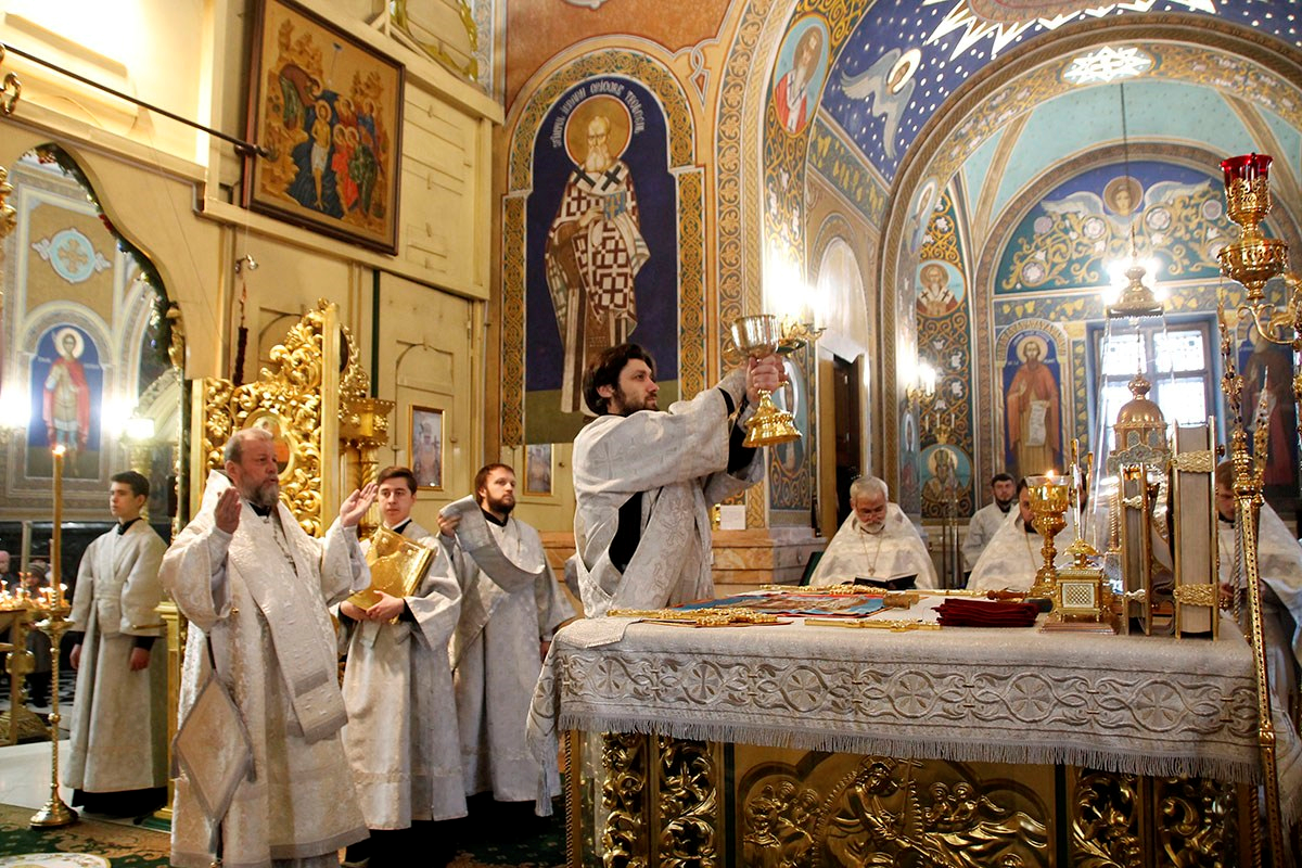 Проповедь перед причастием произнес ключарь кафедрального собора Рождества Христова митр. прот. Вадим Кейбаш.