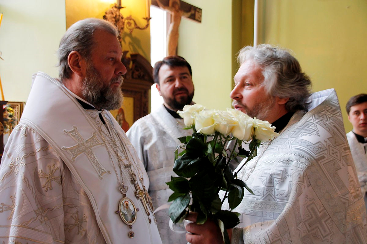 Его Высокопреосвященству сослужили: секретарь Кишиневско-Молдавской митрополии митр. прот. Вадим Кейбаш, настоятель Никольского храма г. Кишинева митр. прот. Петр Сторожа, благочинный церквей 2-го сектора Кишиневского муниципия митр. прот. Павел Боршевский, настоятель Георгиевского храма г. Кишинева митр. прот. Николай Флоринский, духовенство Кишиневского благочиния и клирики Никольского храма.