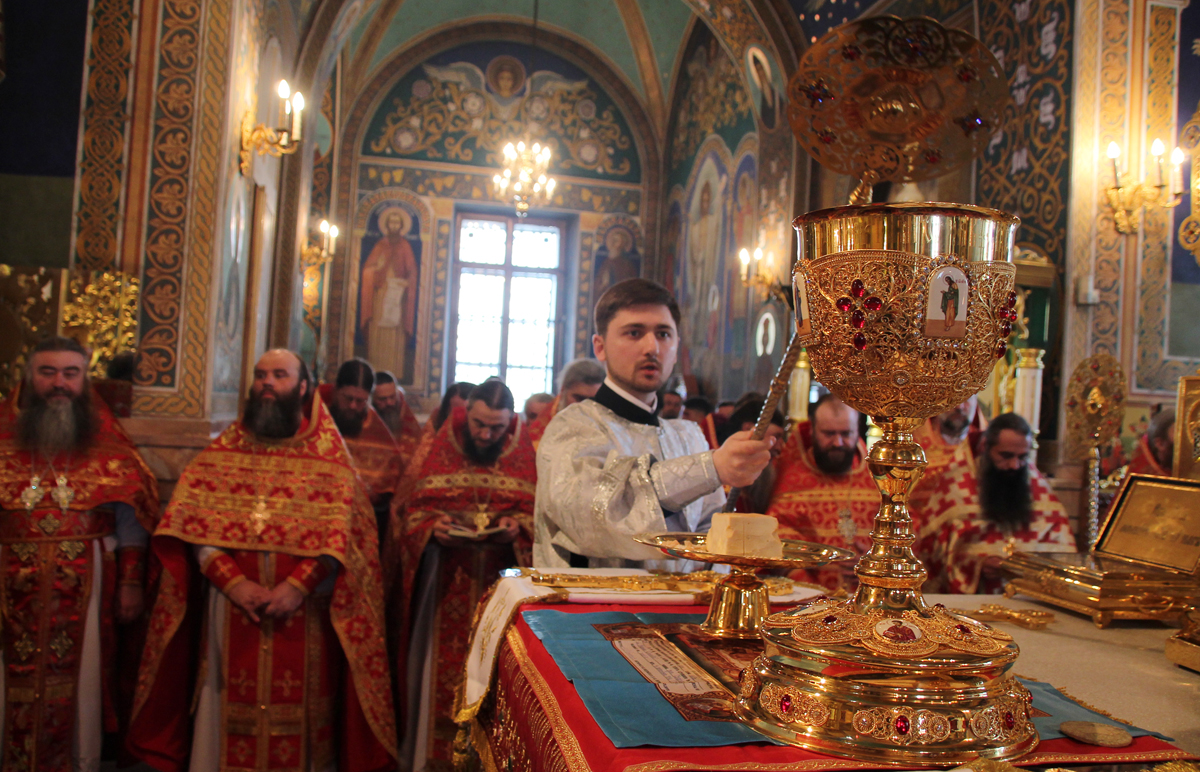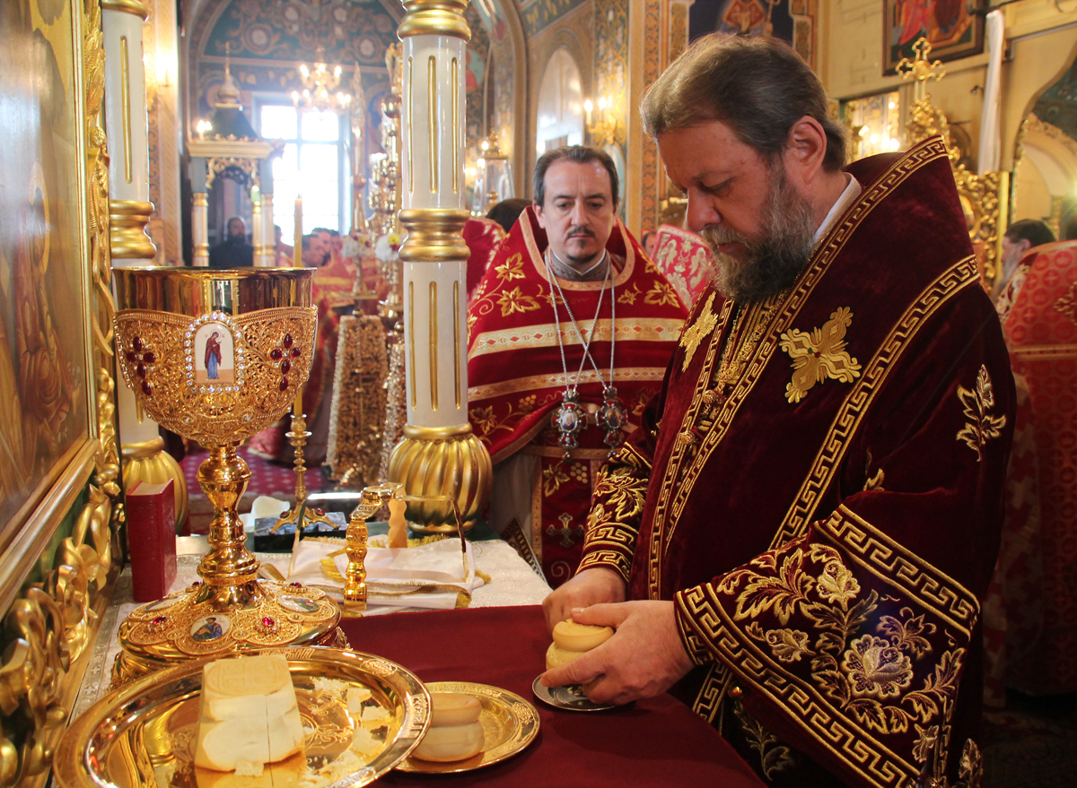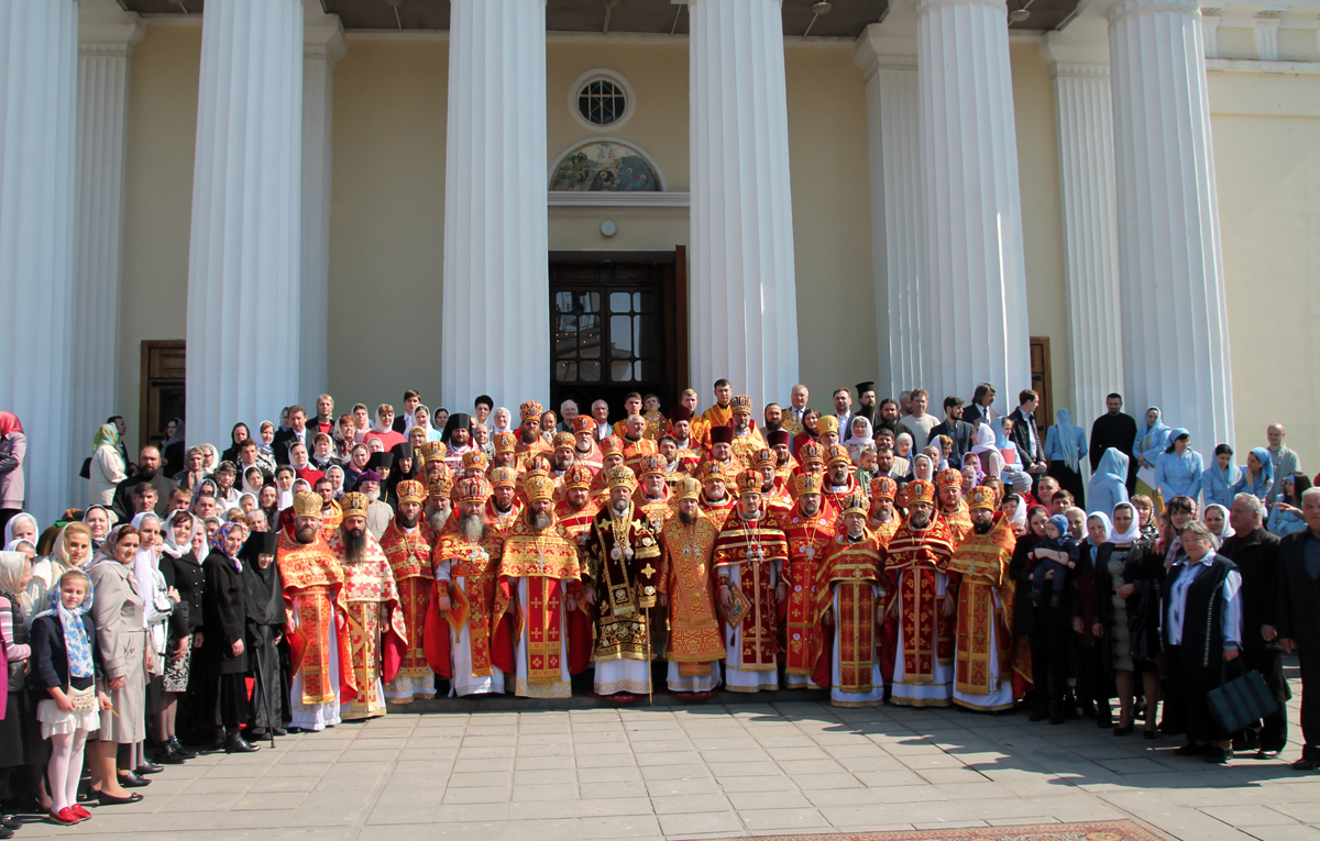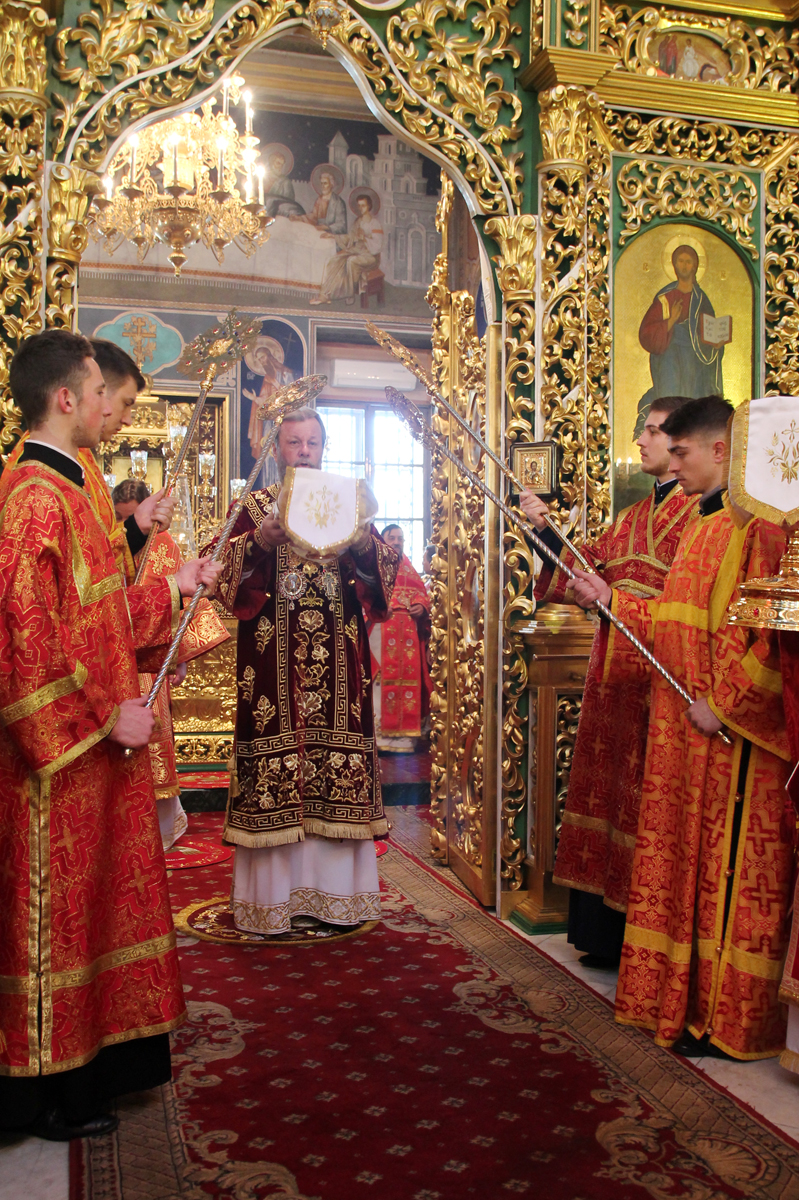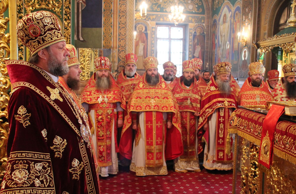 Его Высокопреосвященству сослужили: Преосвященный епископ Сорокский Иоанн, викарий Кишиневской епархии, благочинные и настоятели мужских монастырей и скитов Кишиневской епархии, соборное духовенство.