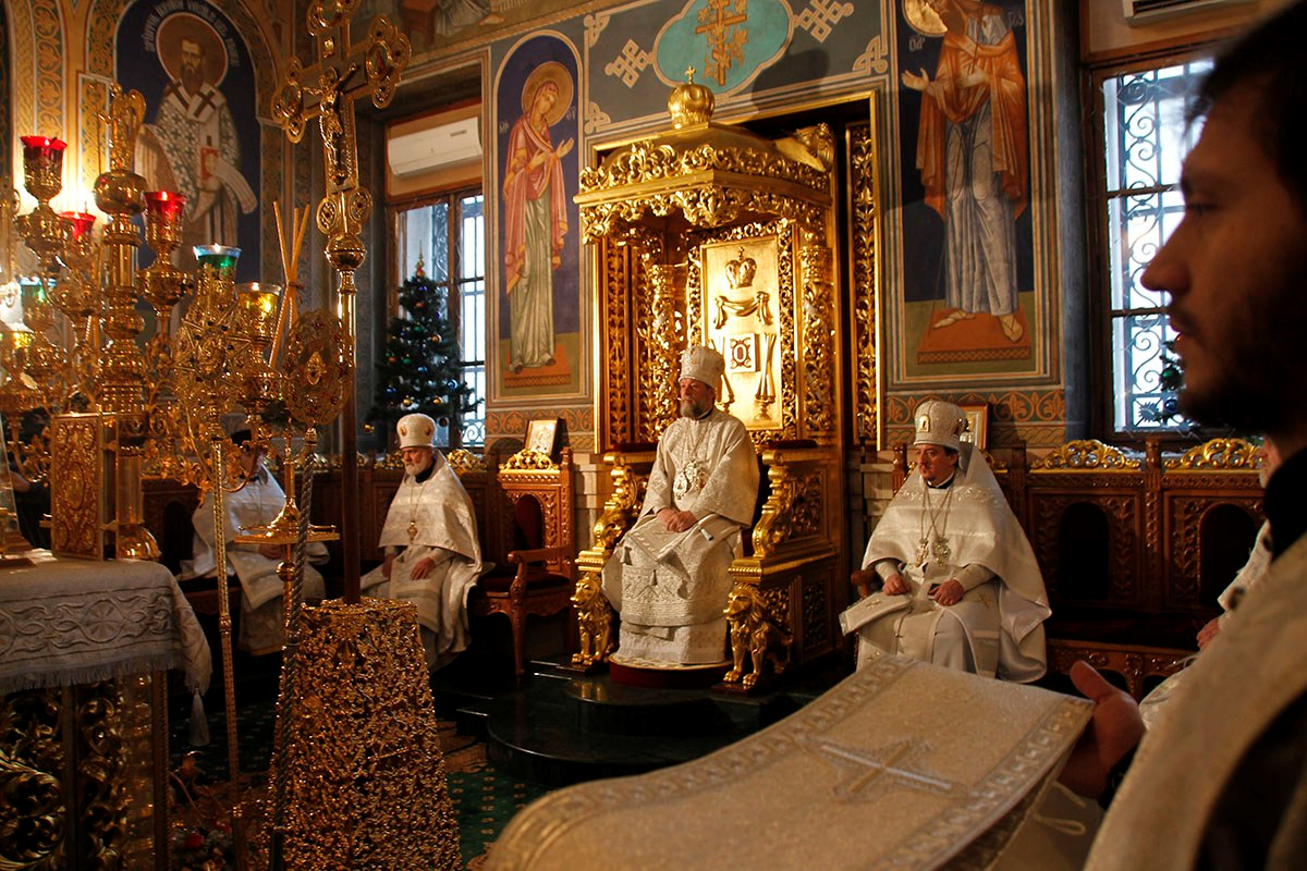 Богослужебные песнопения исполнял большой соборный хор под управлением регента Ангелины Павлюченко.