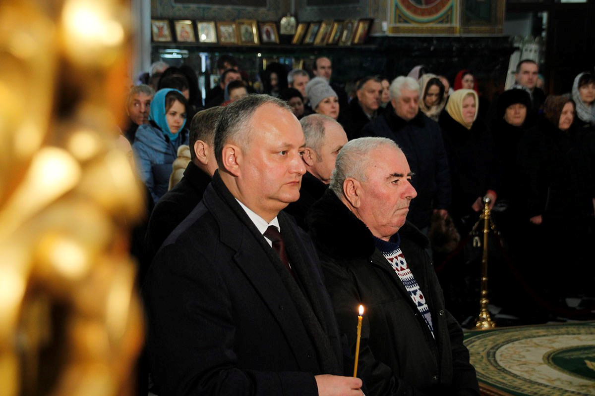 На Литургии присутствовал Президент Республики Молдова Игорь Додон.