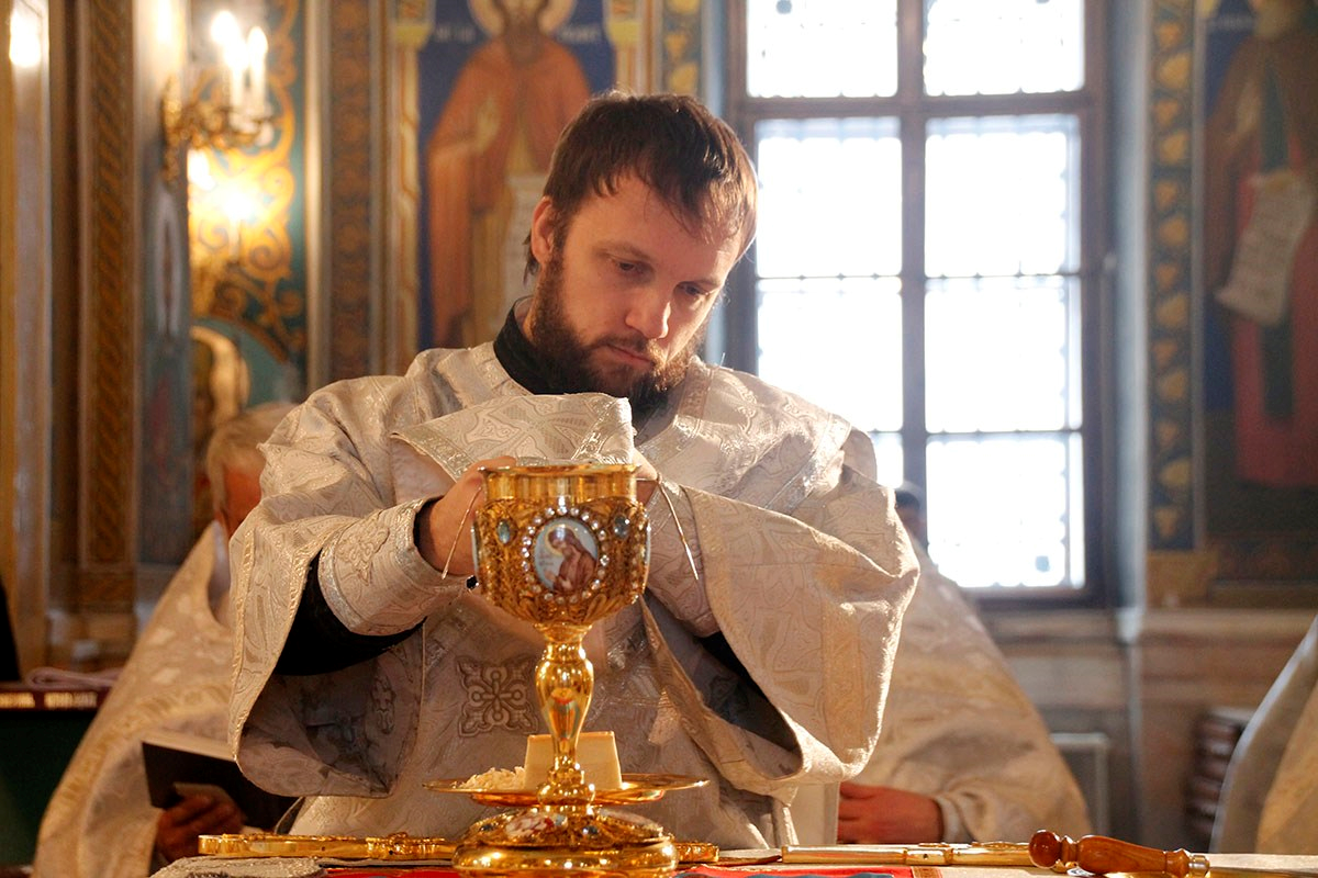Проповедь перед причастием произнес клирик кафедрального собора Рождества Христова митр. прот. Андрей Бурлеску.