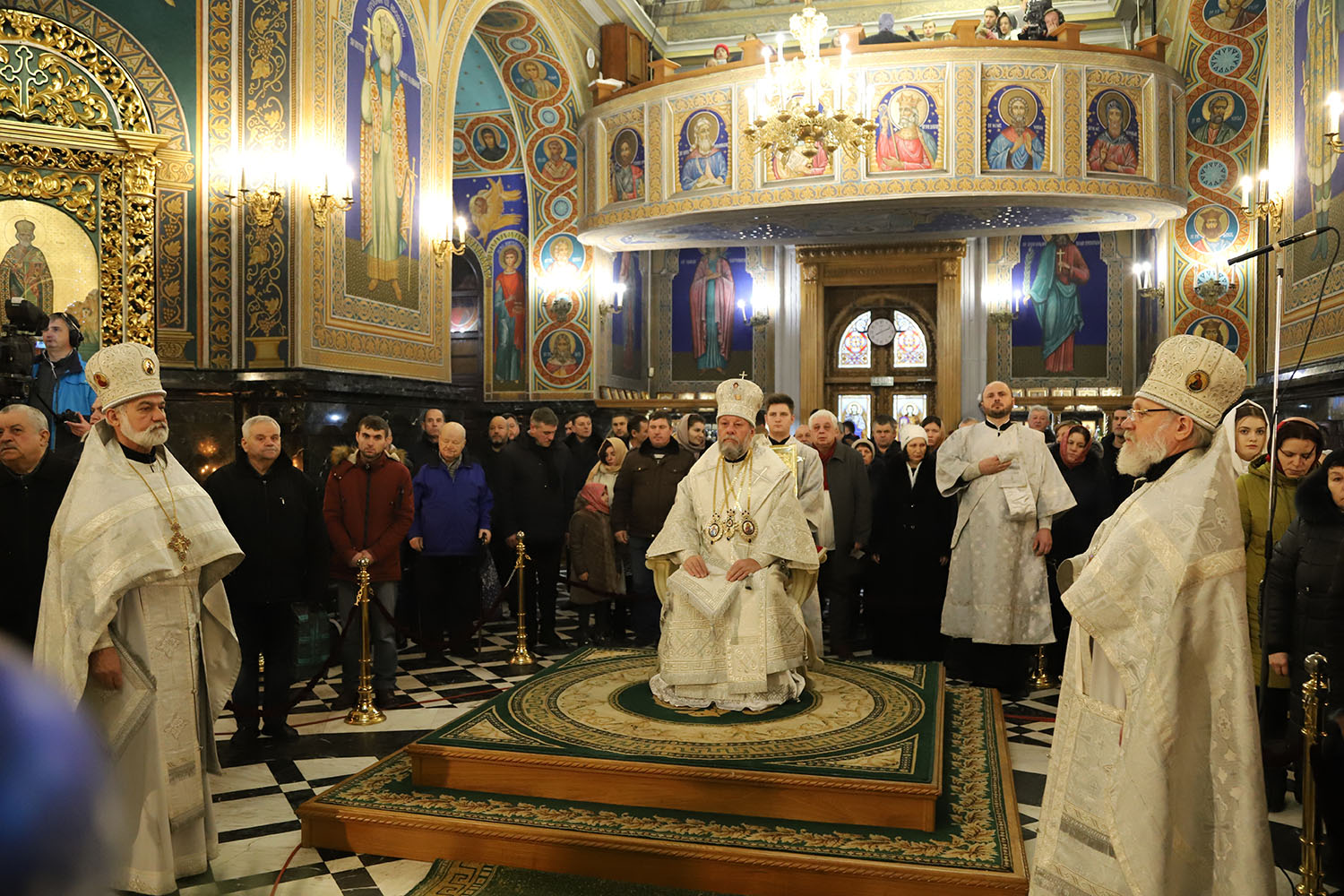Богослужебные песнопения исполнял большой соборный хор под управлением регента Ангелины Павлюченко.