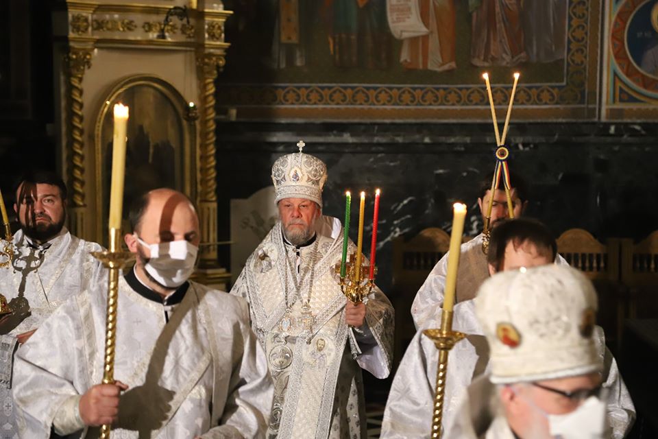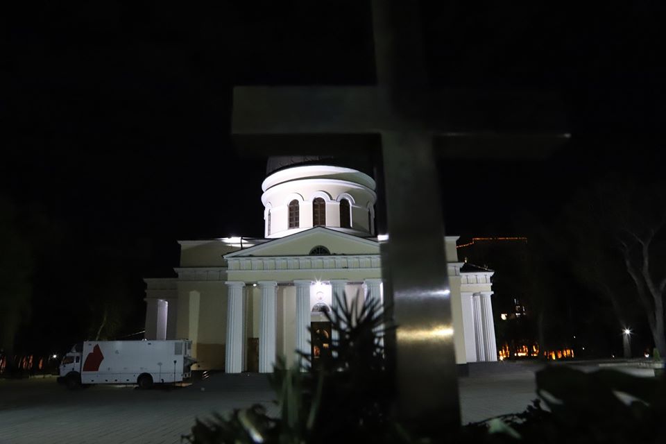 В ночь с 18 на 19 апреля 2020 года в кафедральном соборе Рождества Христова Высокопреосвященный Митрополит Кишиневский и всея Молдовы Владимир совершил Пасхальные богослужения – полунощницу, крестный ход (внутри храма), Пасхальную заутреню и Божественную литургию свт. Иоанна Златоуста.