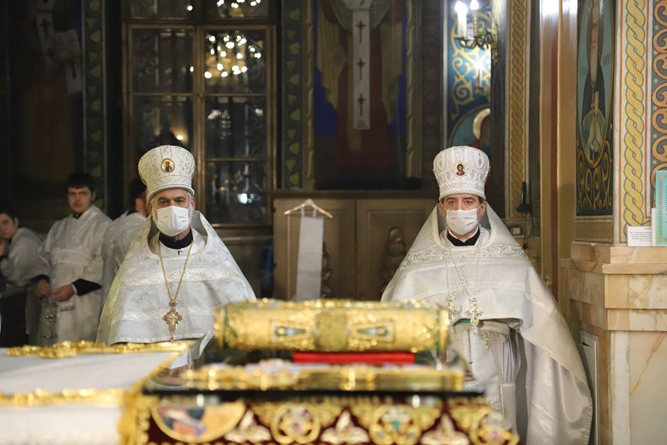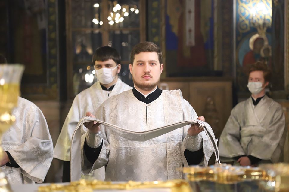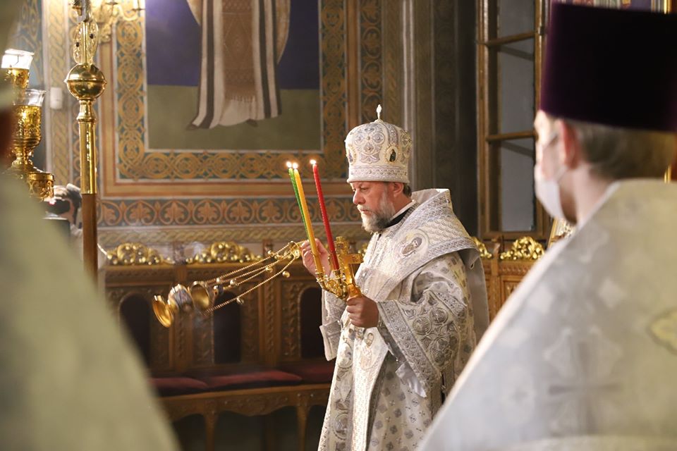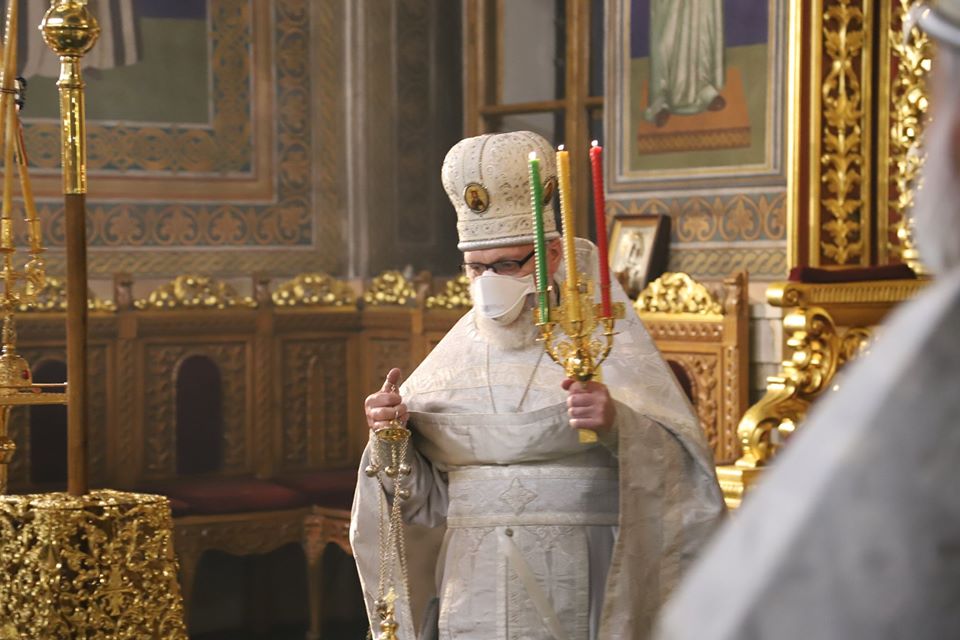 Его Высокопреосвященству сослужили: секретарь Кишиневско-Молдавской митрополии митр. прот. Вадим Кейбаш, соборное духовенство.