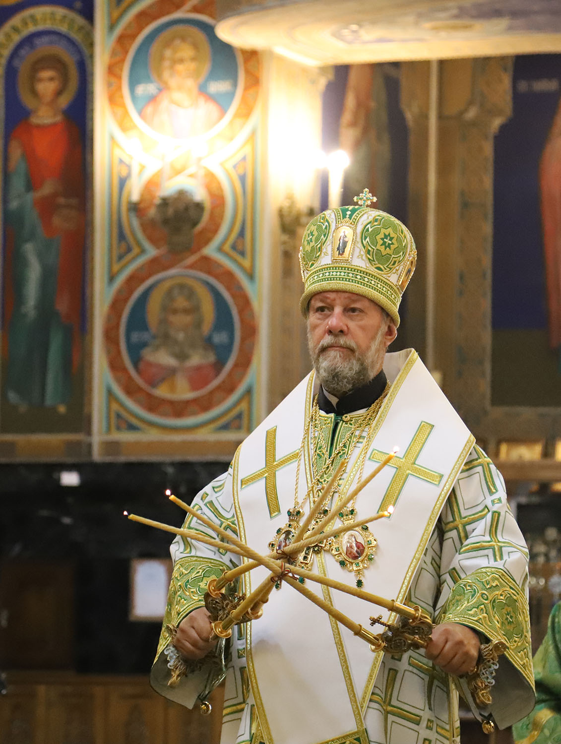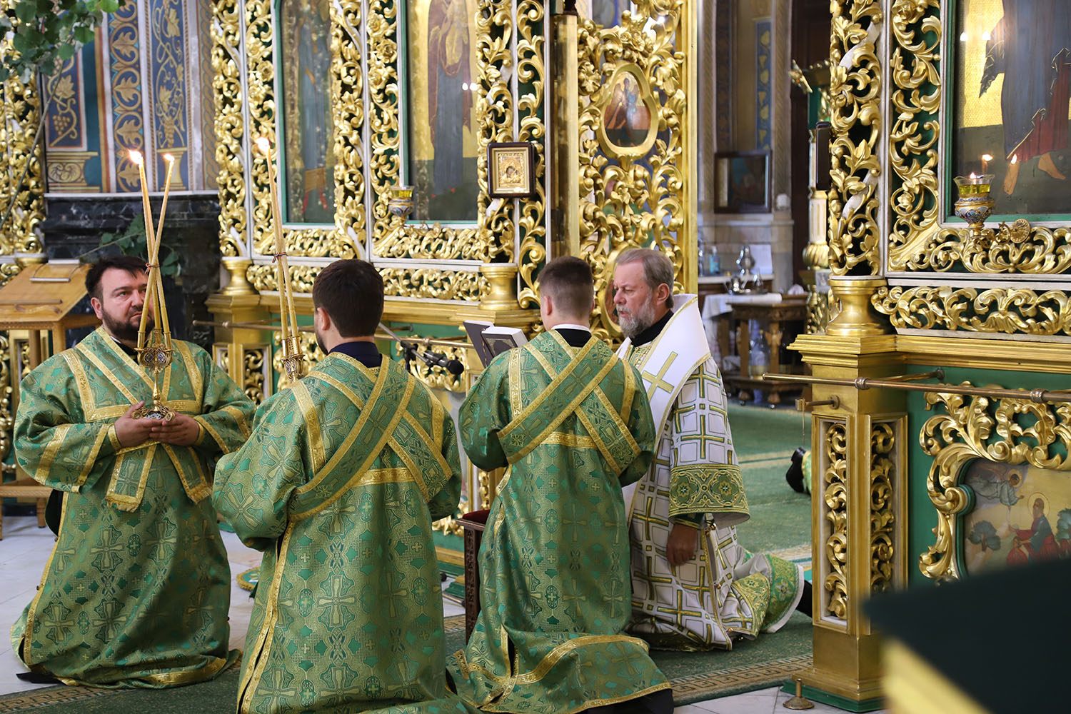 По окончании Литургии Высокопреосвященный владыка Митрополит совершил великую вечерню праздника Пятидесятницы с чтением коленопреклонных молитв.