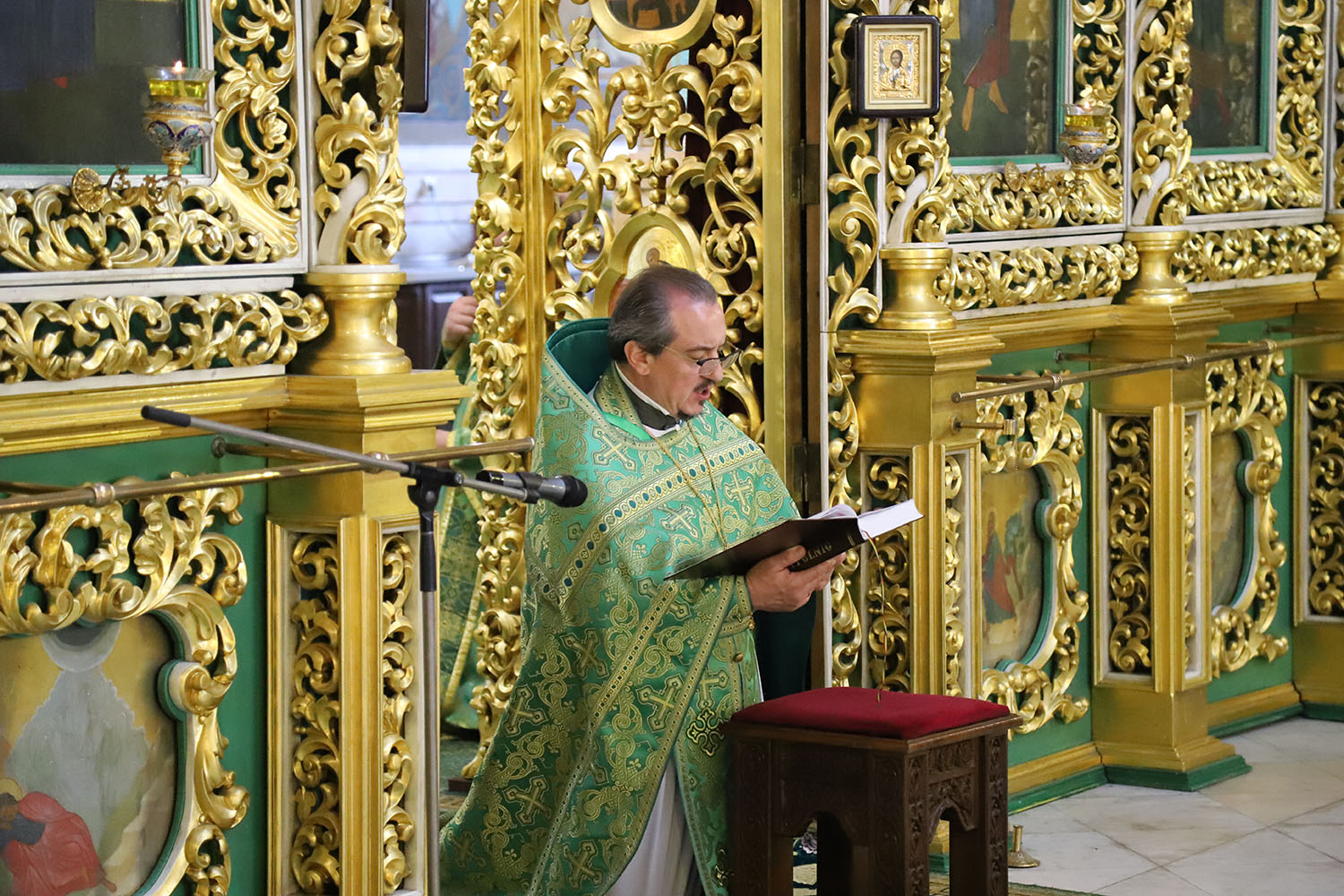 Богослужебные песнопения исполнял большой соборный хор под управлением регента А. Павлюченко.