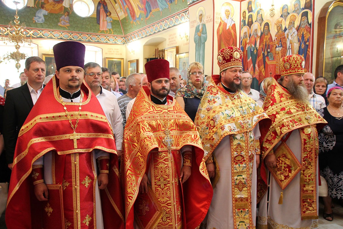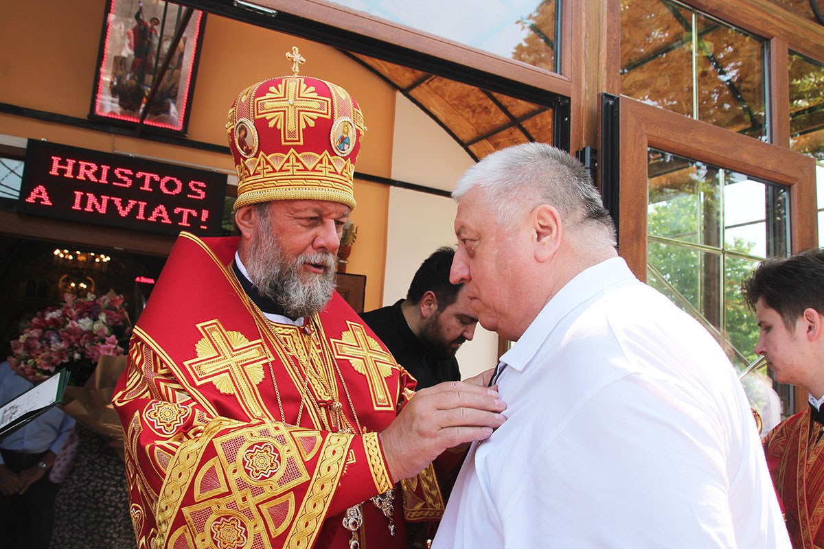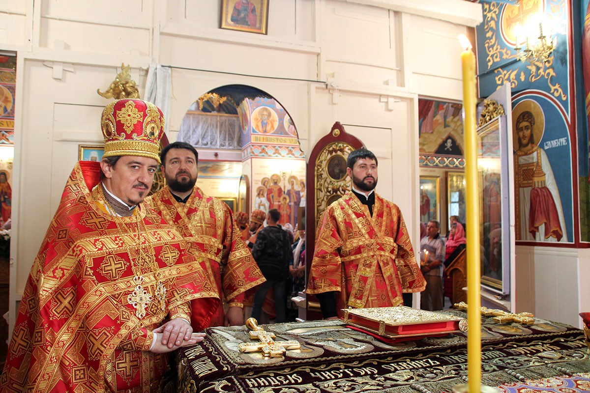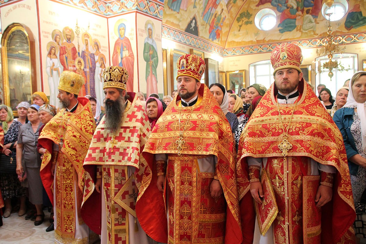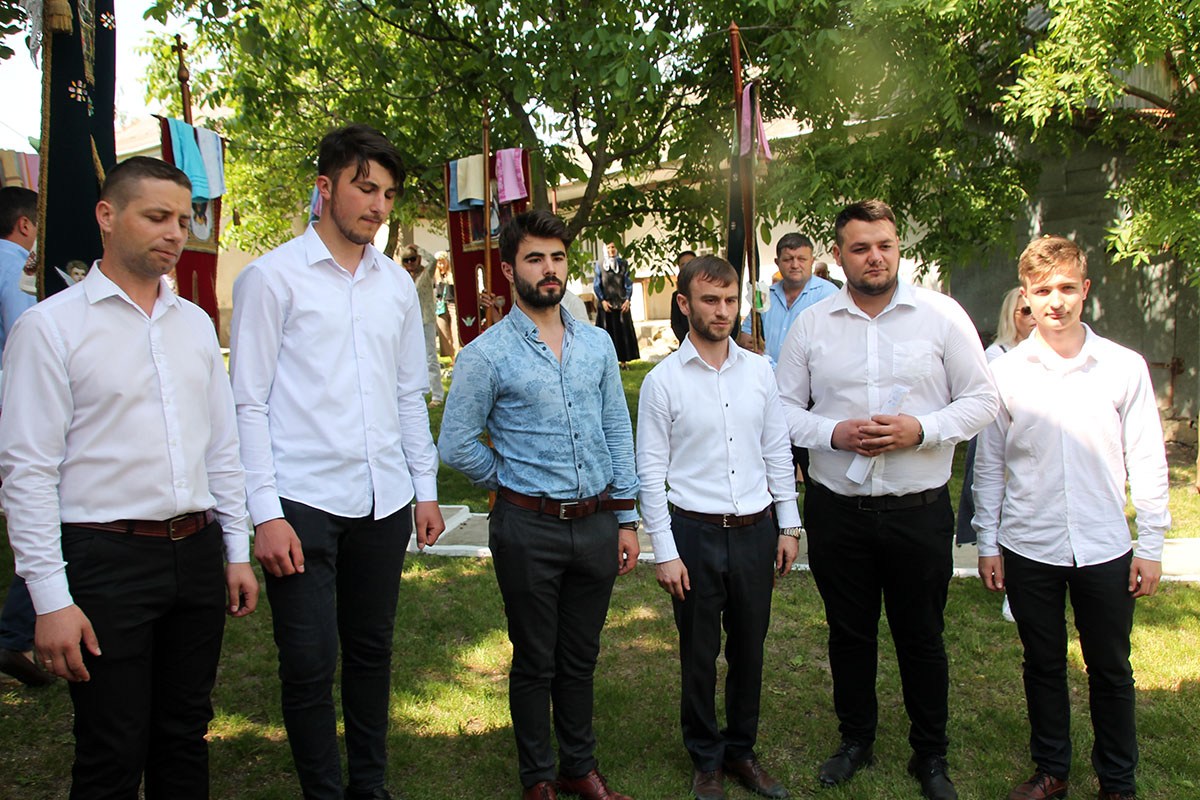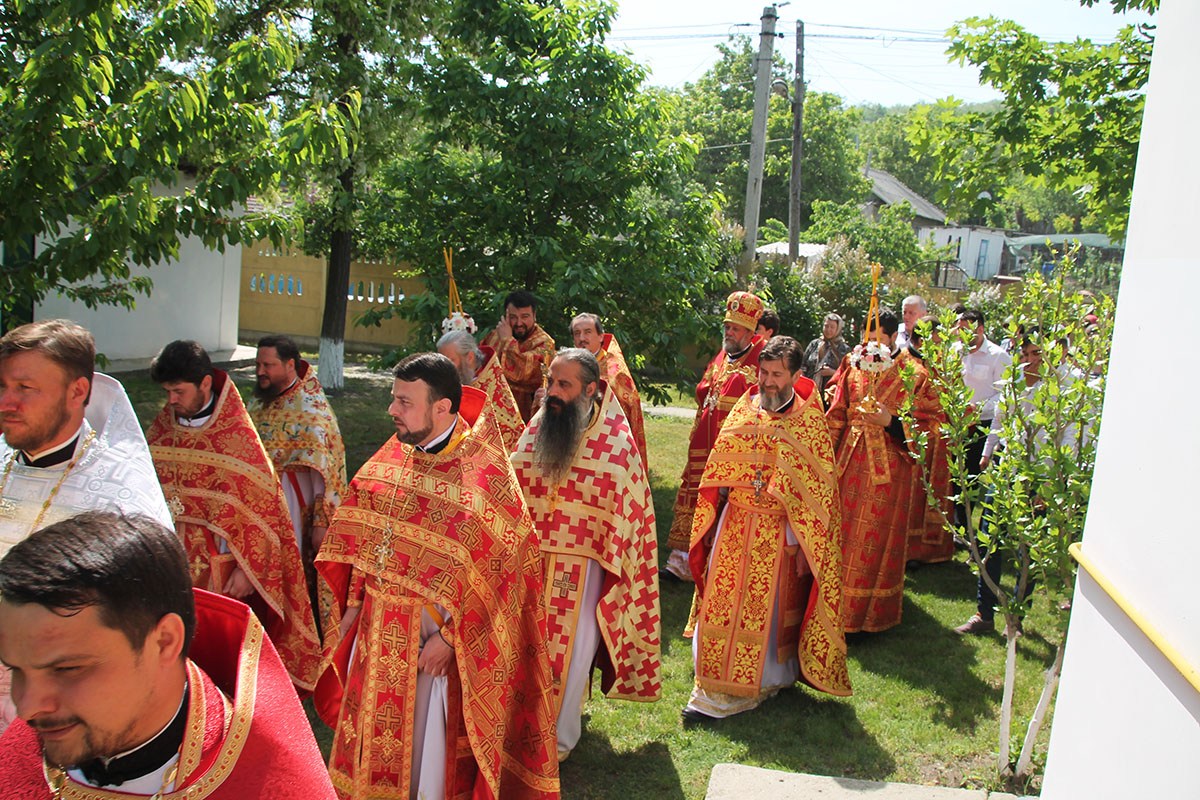 Его Высокопреосвященству сослужили: секретарь Кишиневско-Молдавской митрополии митр. прот. Вадим Кейбаш, благочинный церквей Страшенского района митр. прот. Вячеслав Казаку, игумен Сирецкого во имя св. вмч. Иакова Персянина архим. Порфирий (Добре), настоятель Георгиевского храма прот. Сергей Жмурков, духовенство Страшенского благочиния.