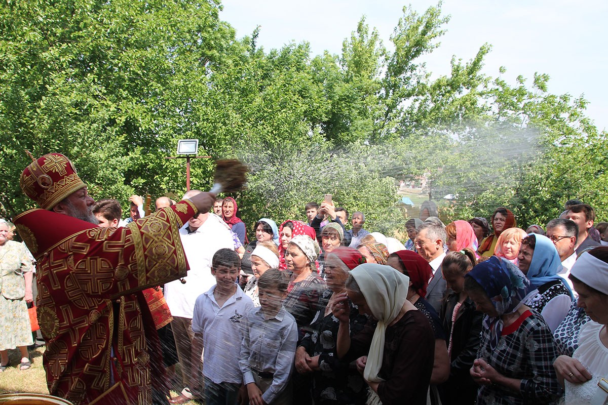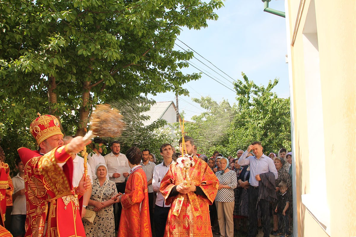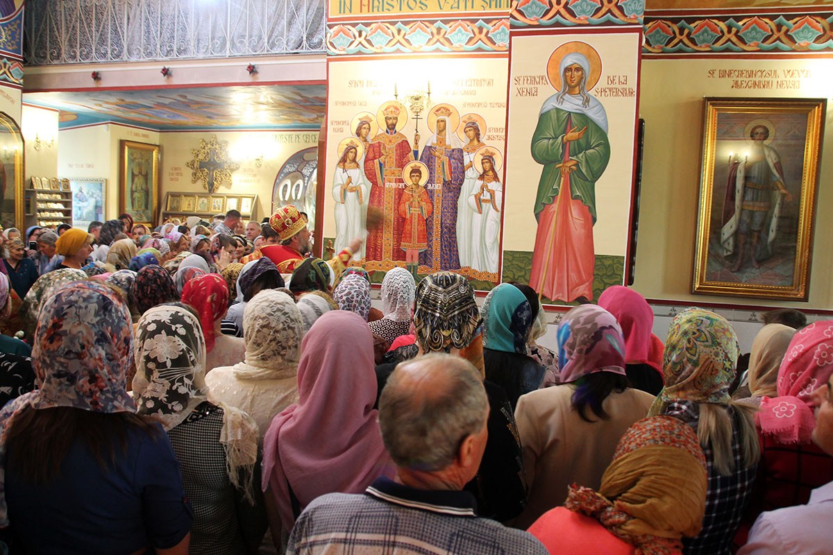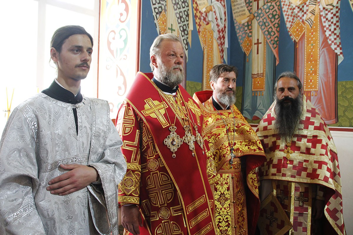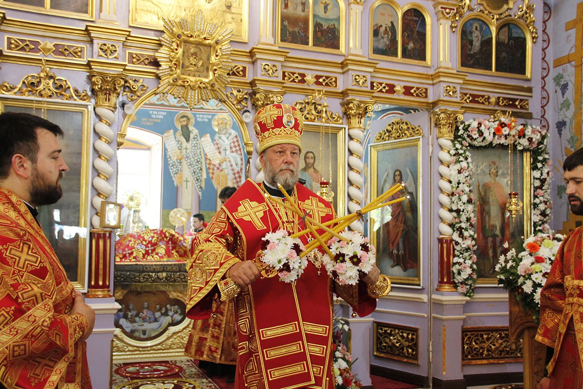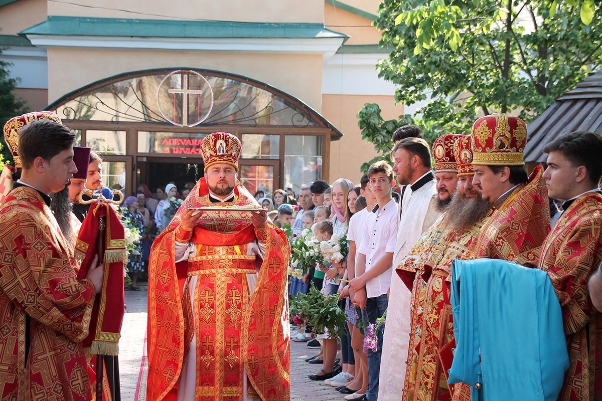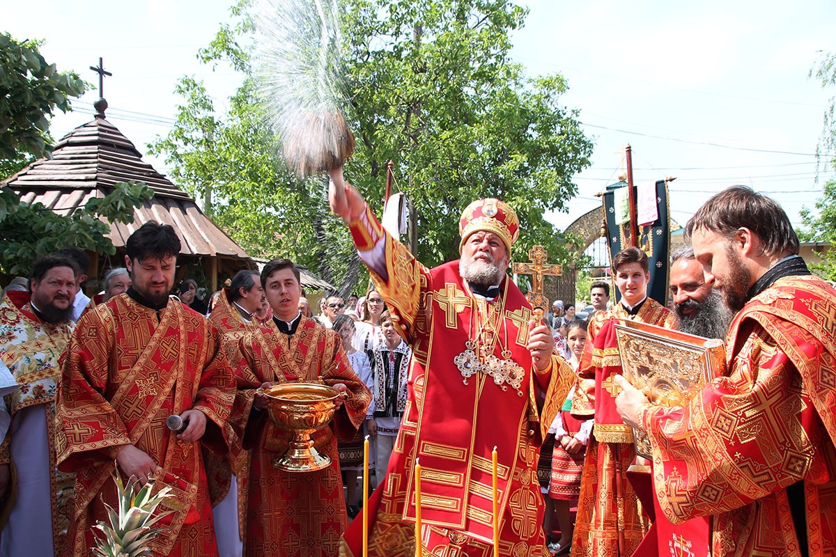 Его Высокопреосвященству сослужили: секретарь Кишиневско-Молдавской митрополии митр. прот. Вадим Кейбаш, благочинный церквей Страшенского района митр. прот. Вячеслав Казаку, игумен Сирецкого во имя св. вмч. Иакова Персянина архим. Порфирий (Добре), настоятель Георгиевского храма прот. Сергей Жмурков, духовенство Страшенского благочиния.