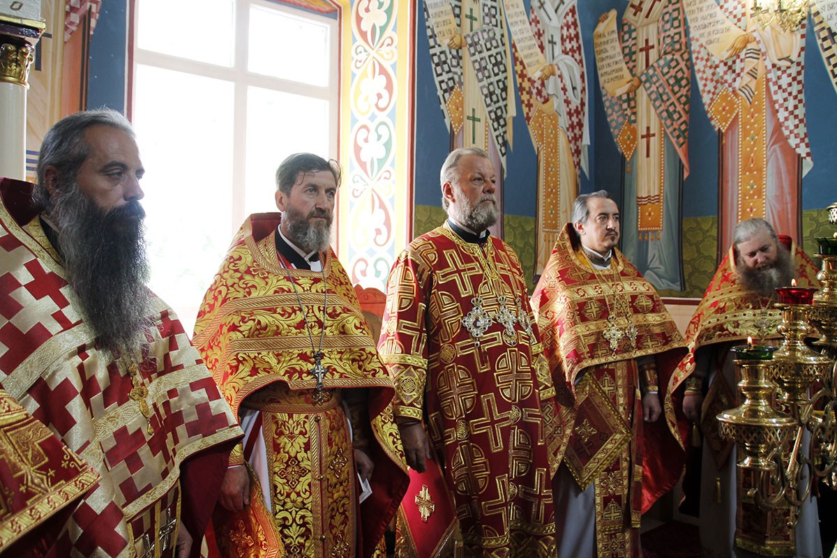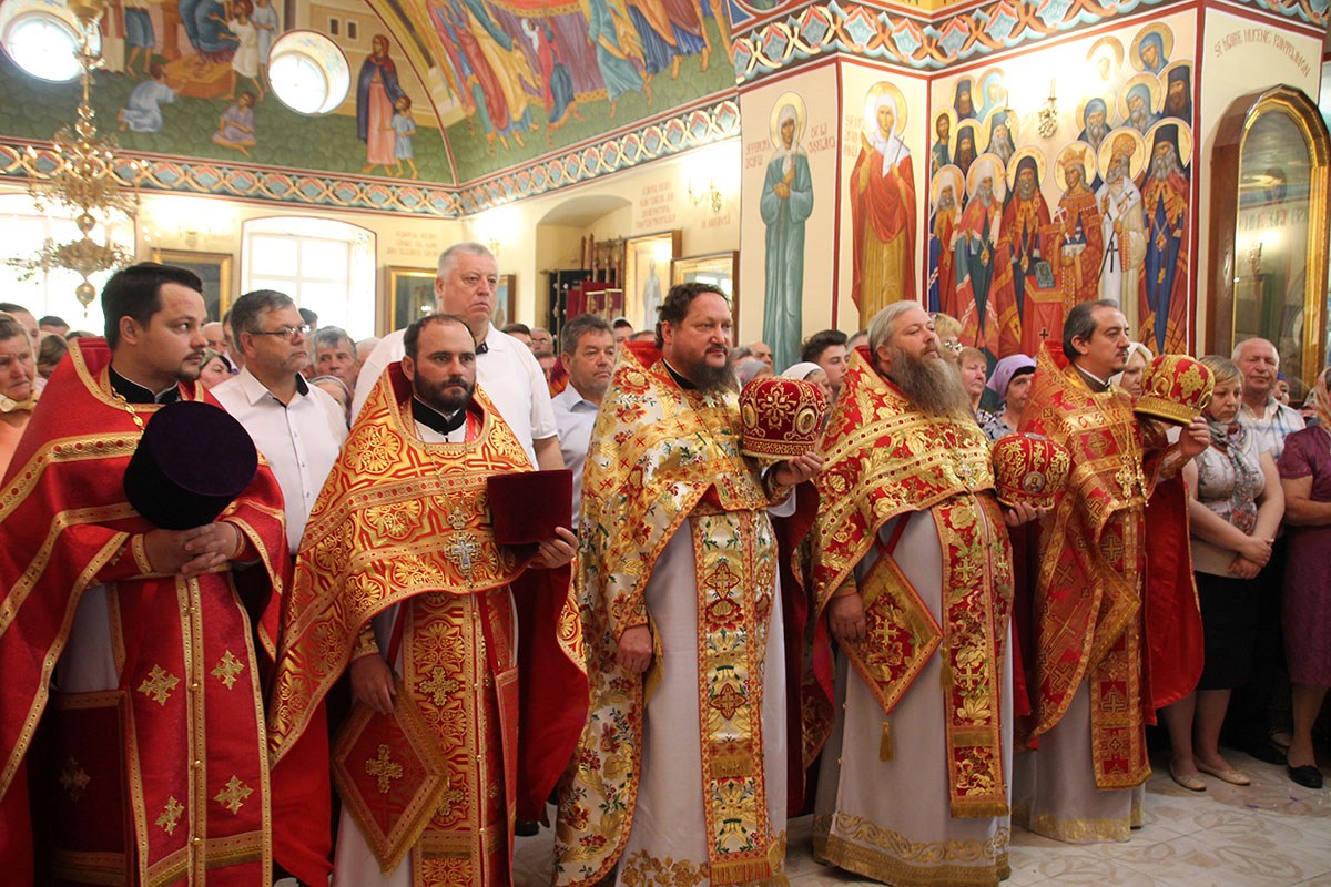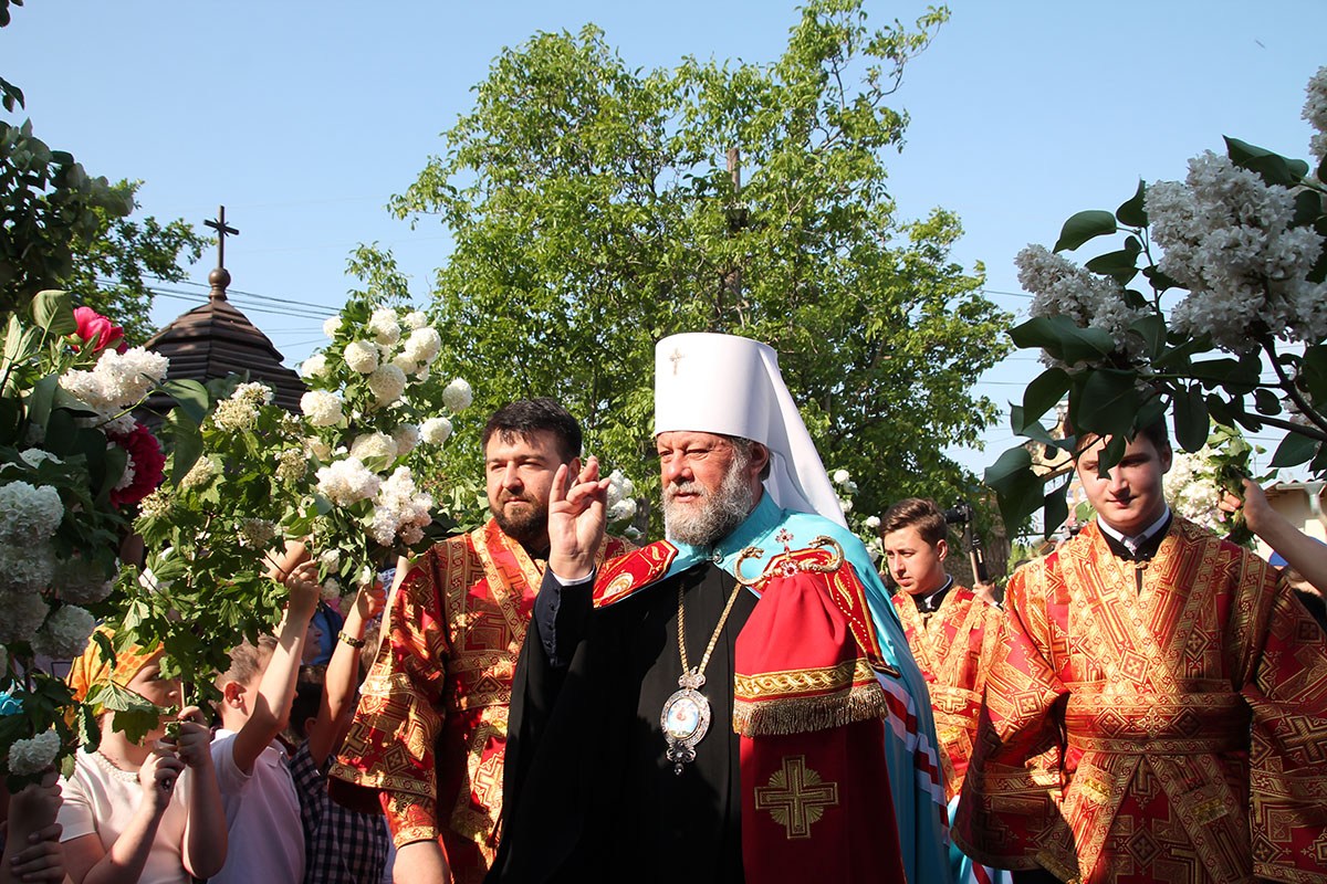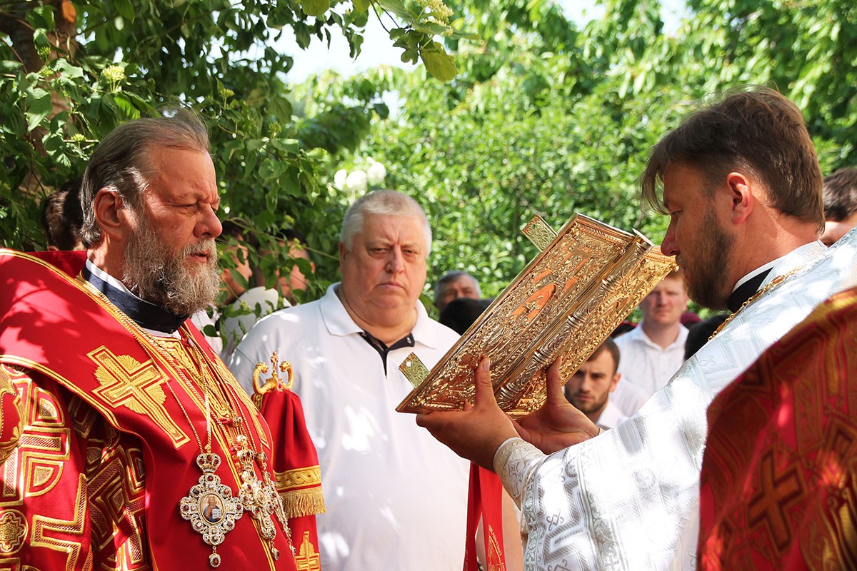 По заамвонной молитве последовали крестный ход вокруг храма с чтением Евангелия и благодарственный молебен.