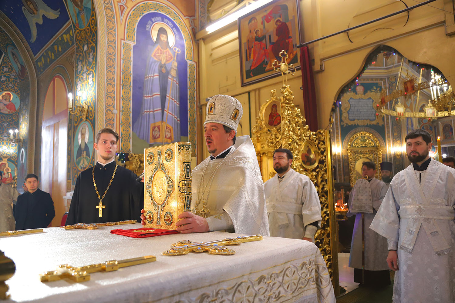 Богослужебные песнопения исполнял большой соборный хор под управлением регента А. Павлюченко и детский хор под управлением регента Ф. Бурлак.