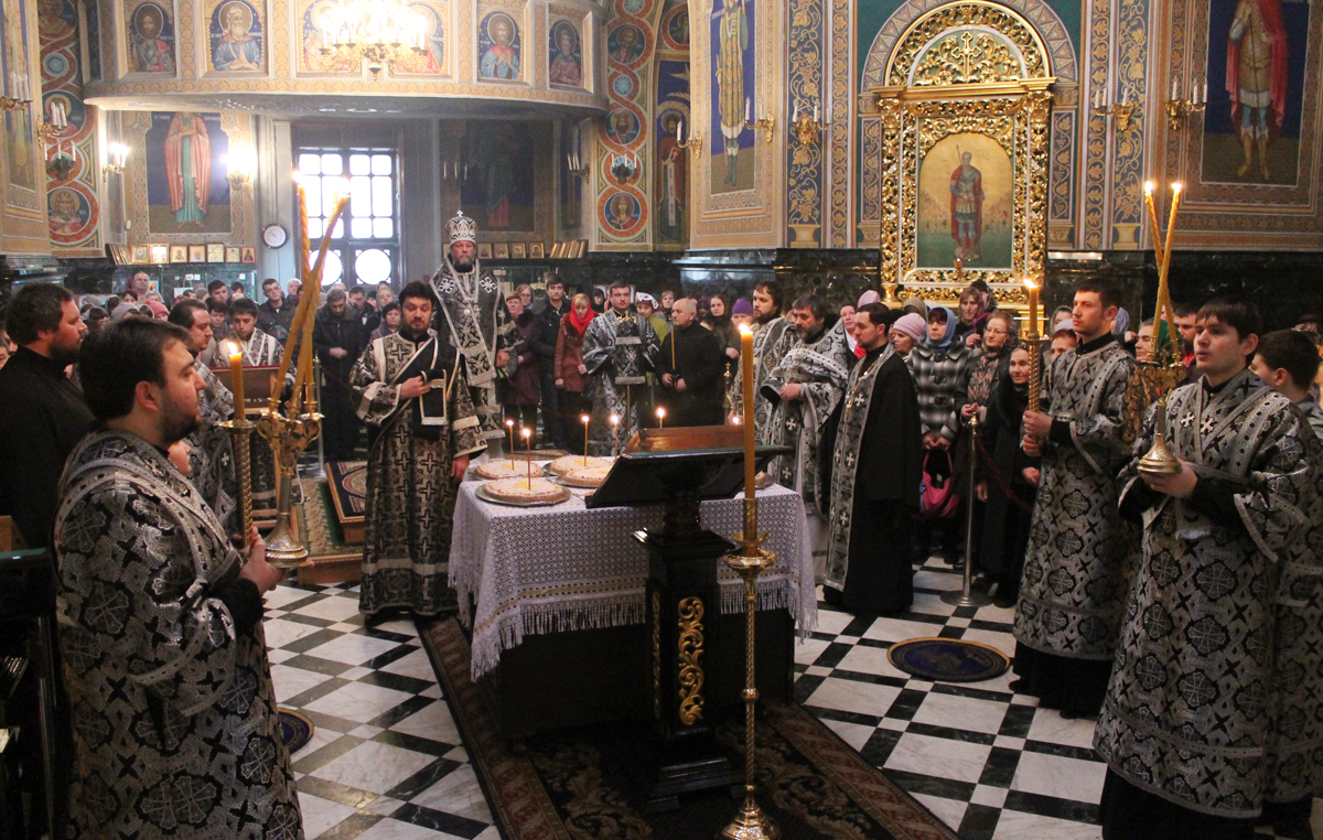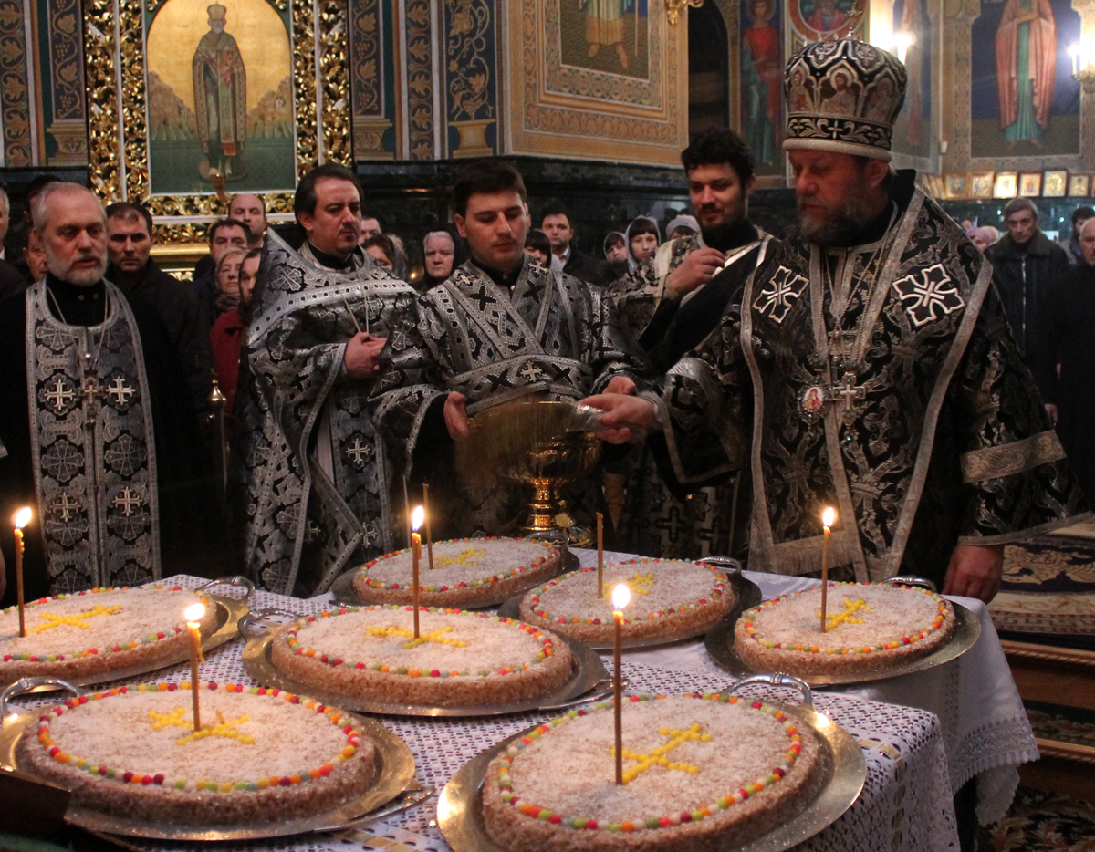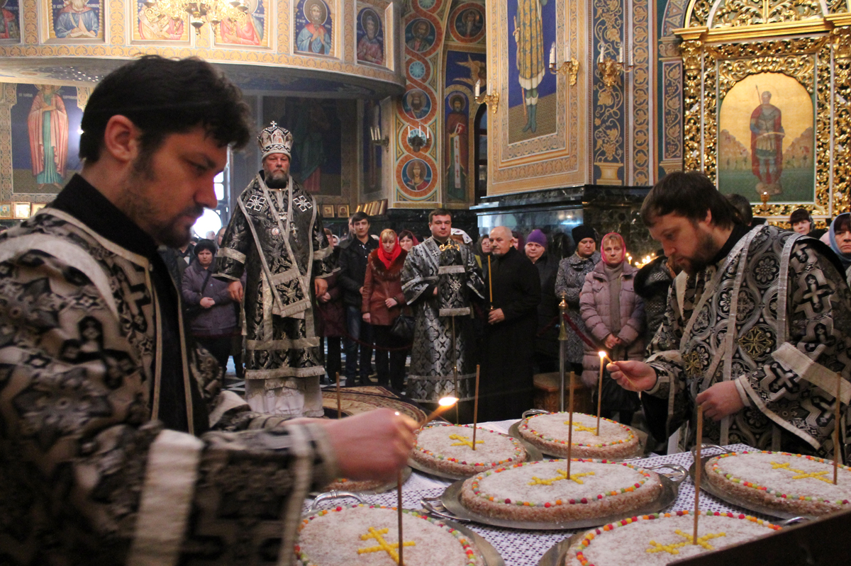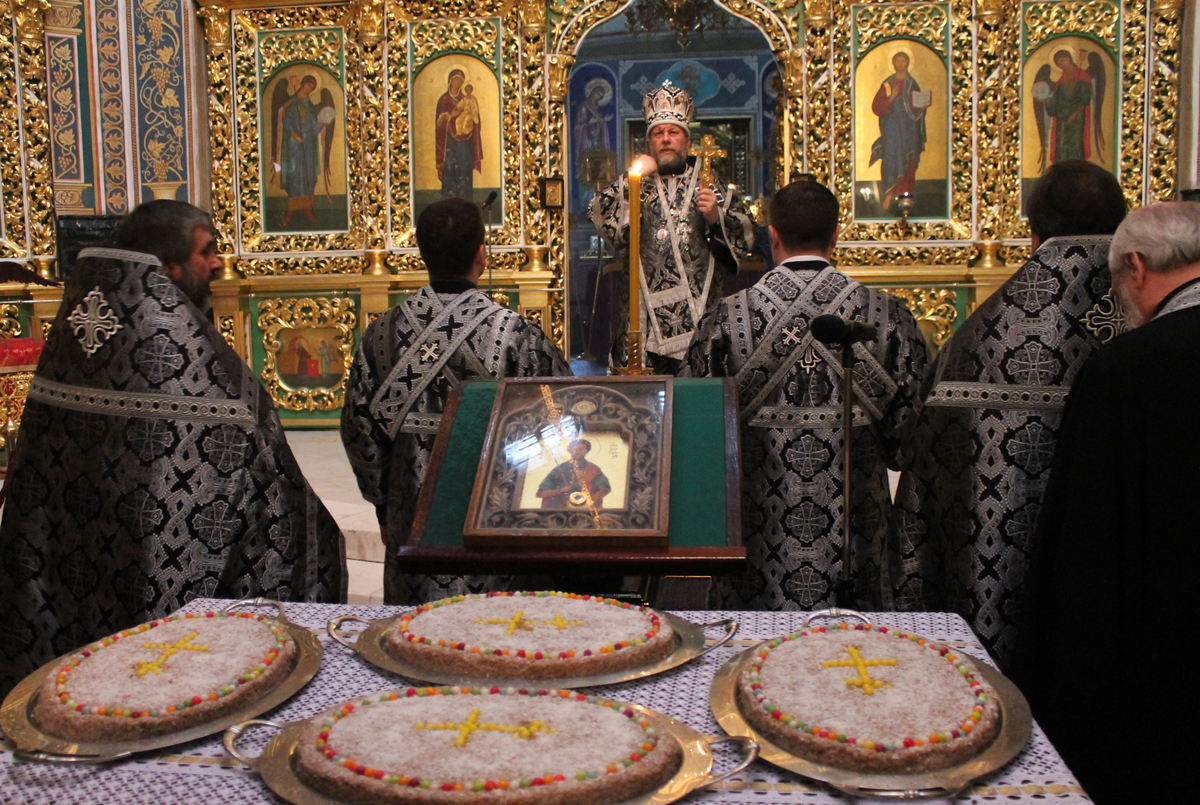 По окончании Литургии Высокопреосвященный Митрополит Владимир совершил чин молебного пения великомученику Феодору Тирону и прочитал молитву над коливом, которое после окропления святой водой по сложившейся доброй традиции была разделена среди присутствующих верующих.