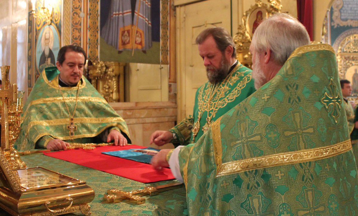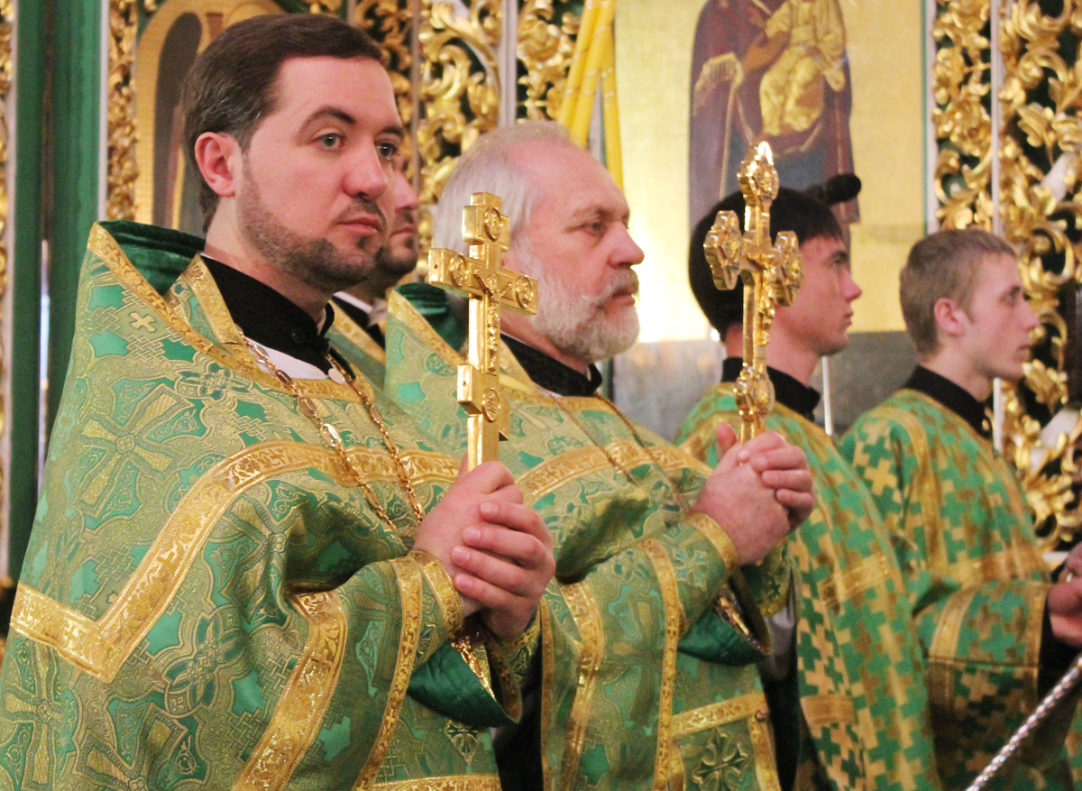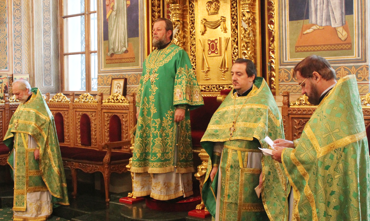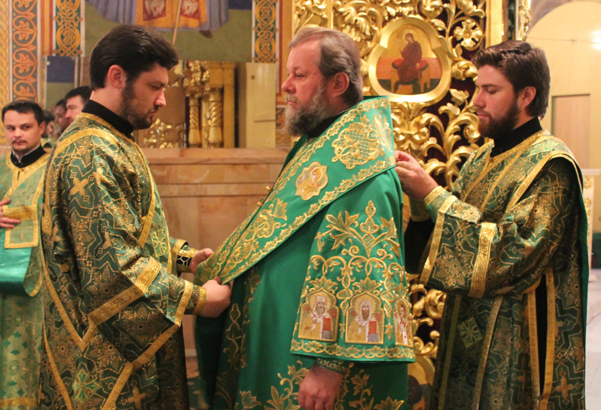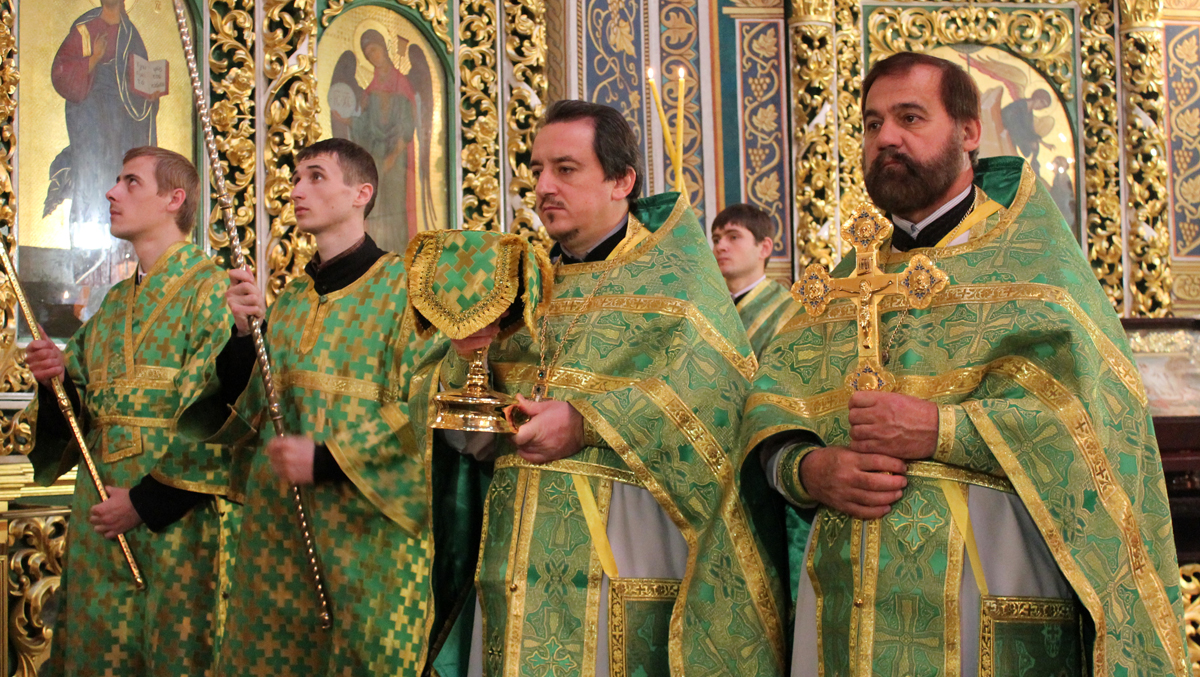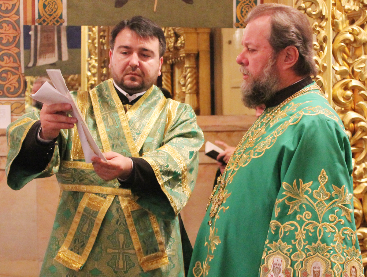 Сослужили Предстоятелю Православной Церкви Молдовы соборные клирики во главе с ключарем собора митр. прот. Вадимом Кейбашем, секретарем Кишиневско-Молдавская Митрополии.