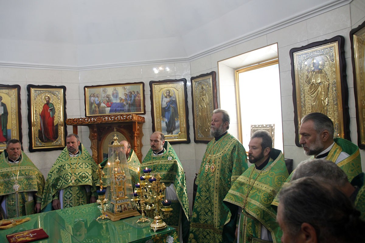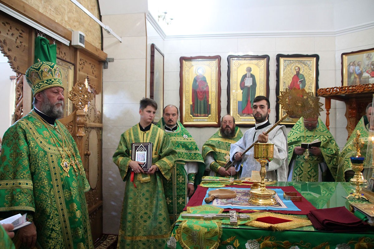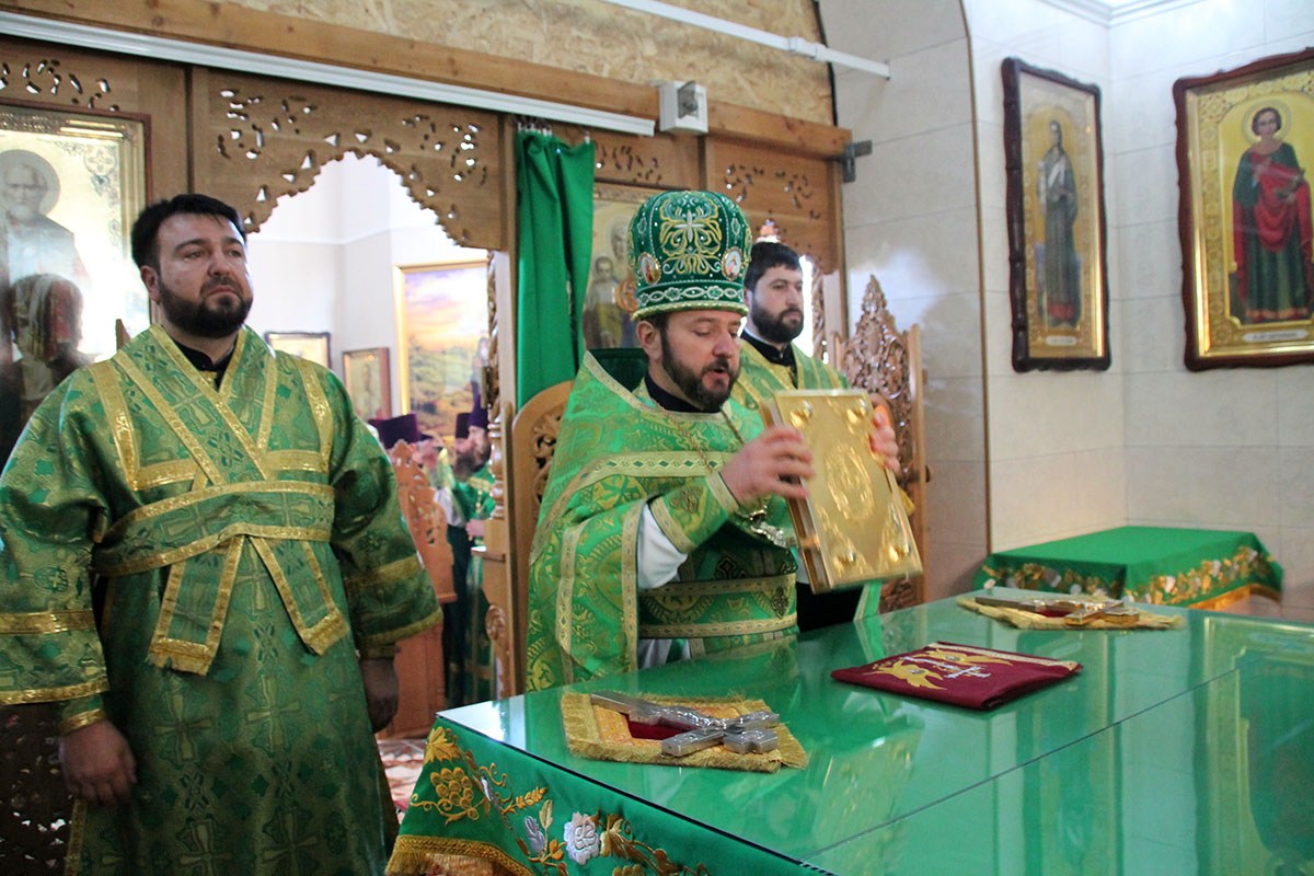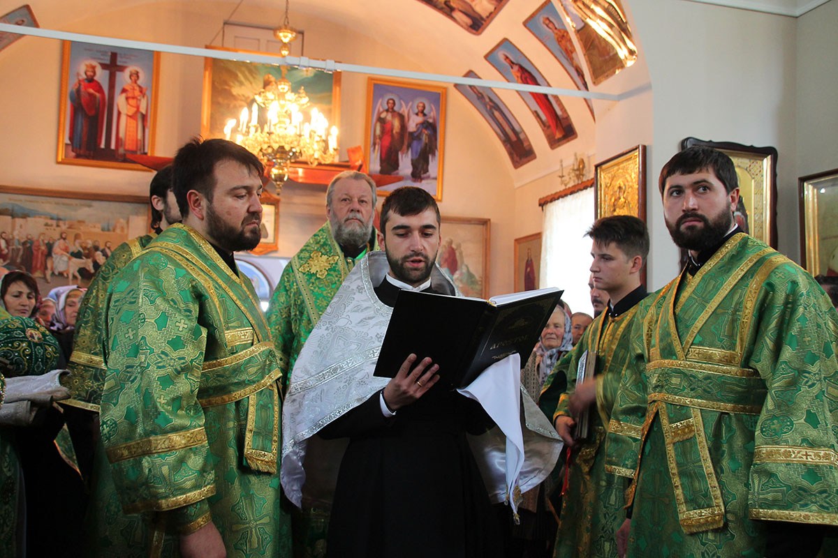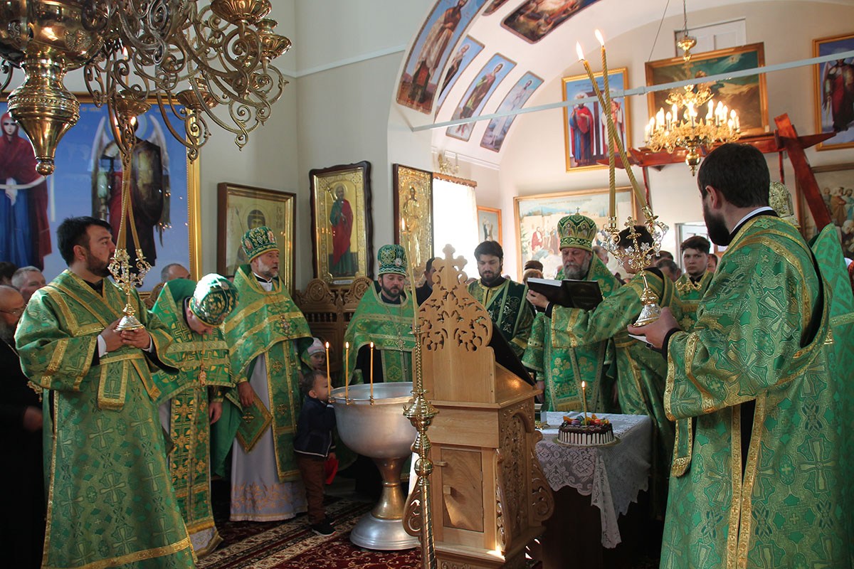 По заамвонной молитве, последовал Крестный ход вокруг храма с чтением Евангелия, после чего был совершен благодарственный молебен.