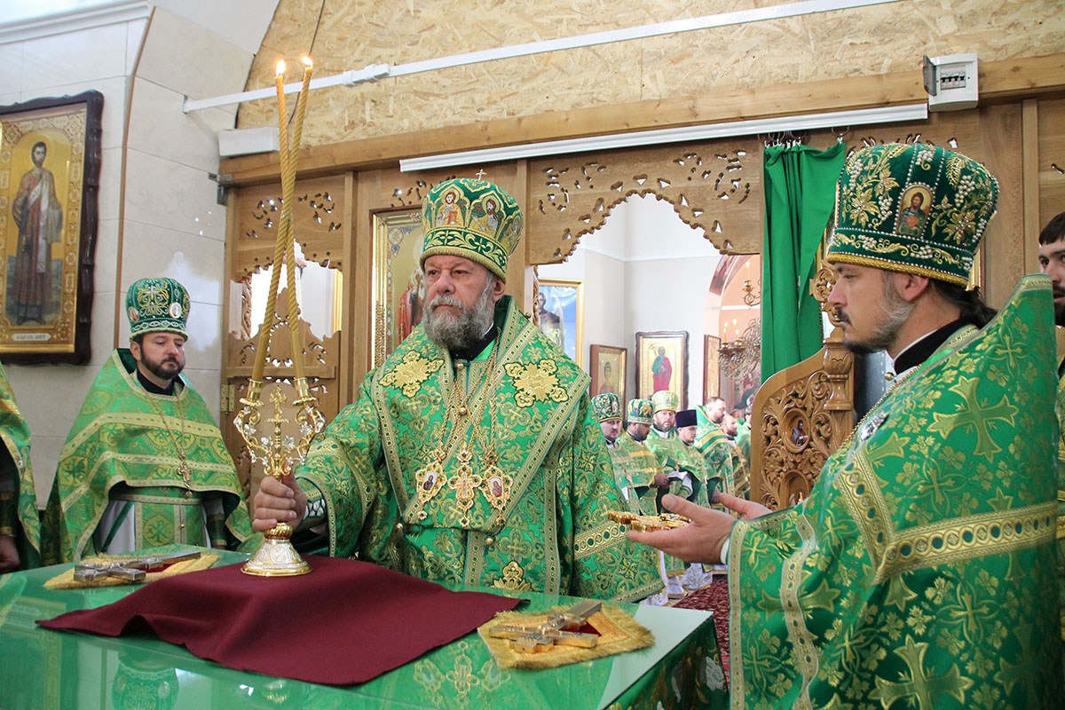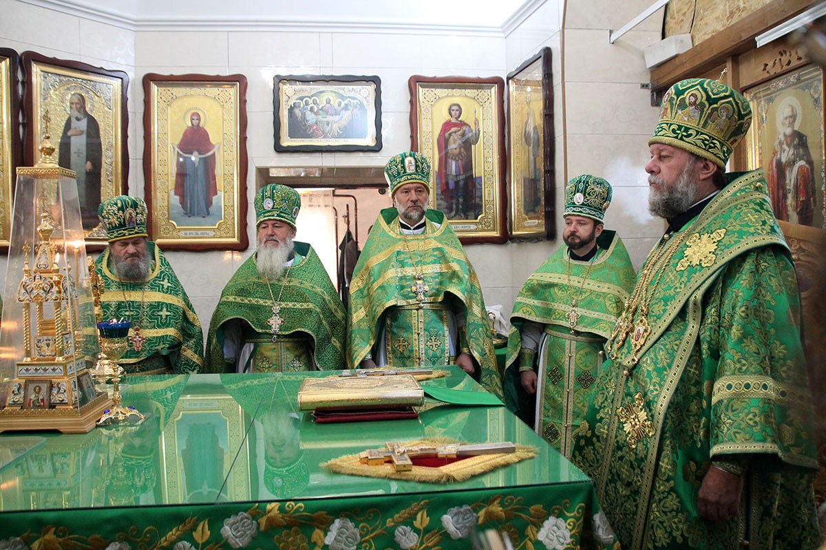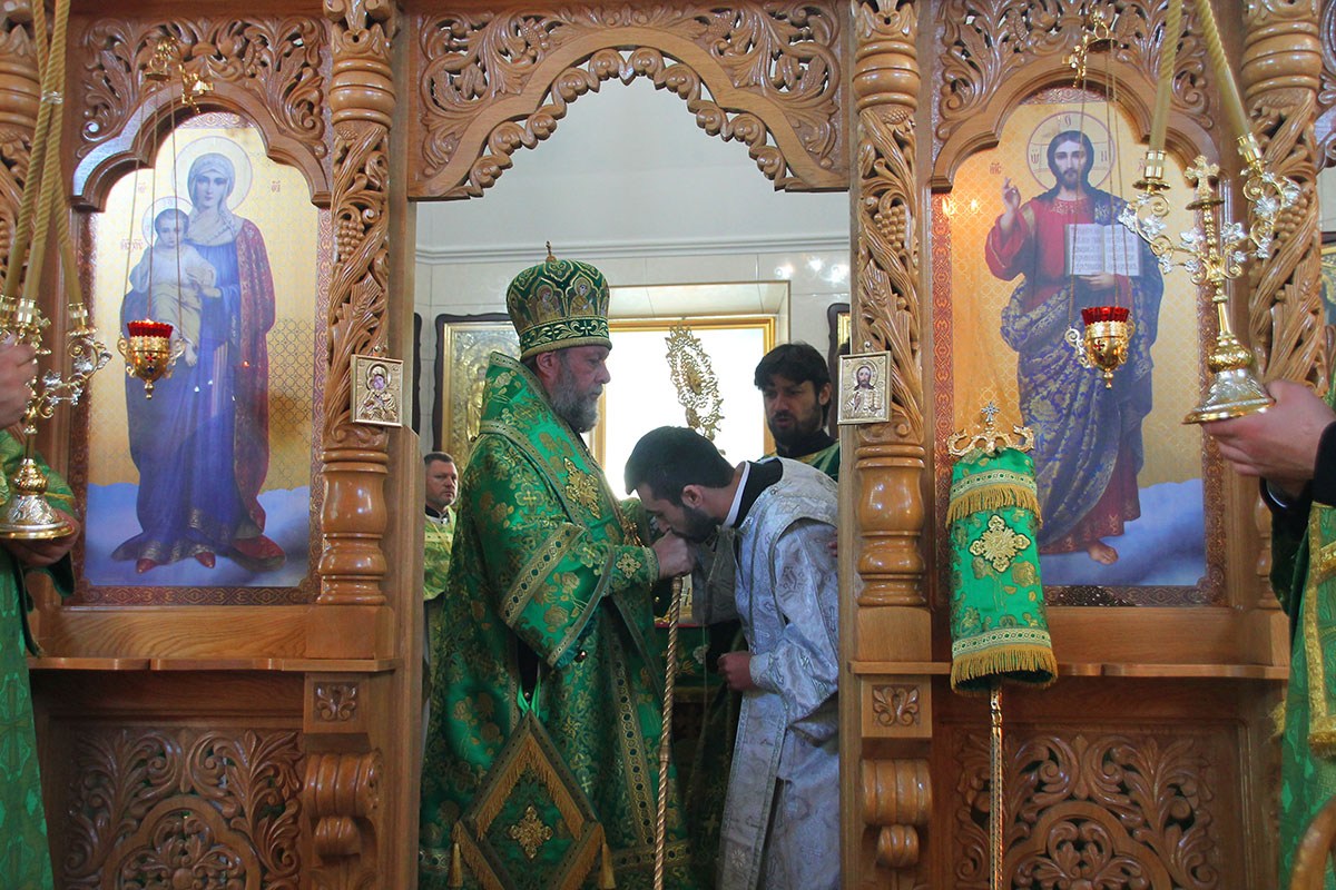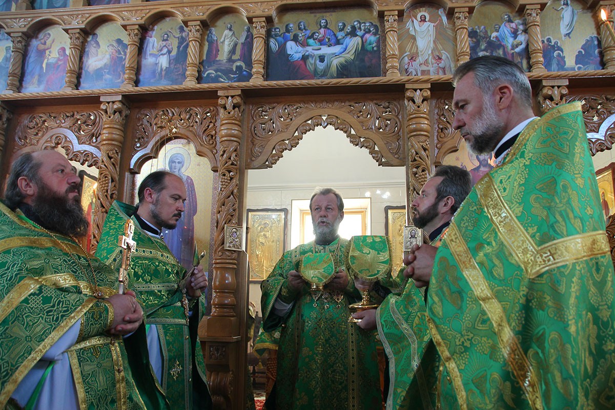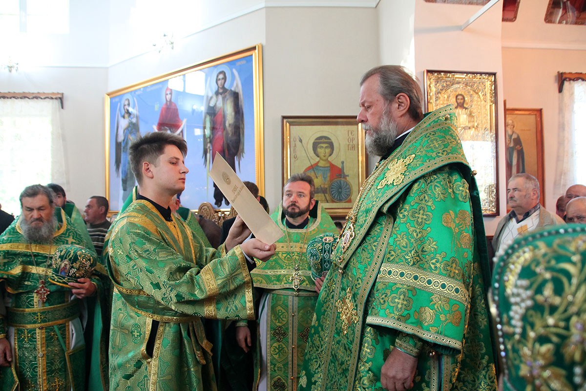 По заамвонной молитве, последовал Крестный ход вокруг храма с чтением Евангелия, после чего был совершен благодарственный молебен.
