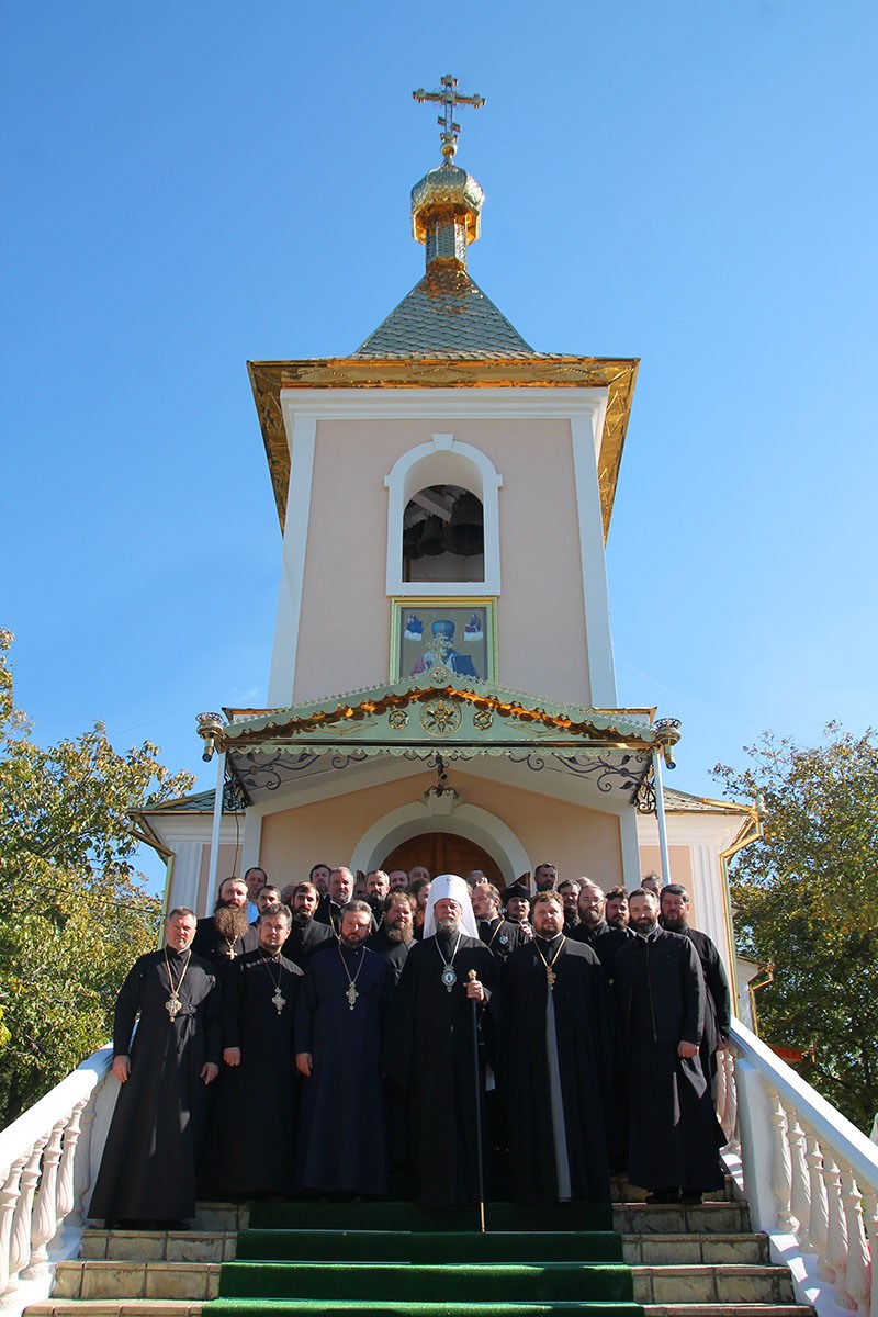 Его Высокопреосвященству сослужили: митр. прот. Мариан Болдеску, благочинный церквей Теленештского района, митр. прот. Святослав Унгуряну, благочинный церквей Рышканского района, митр. прот. Александр Никоричь, настоятель Никольского храма с. Киштельница, духовенство Теленештского благочиния.