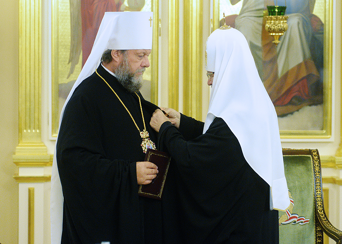 Открывая заседание, Предстоятель Русской Православной Церкви во внимание к усердным архипастырским трудам и в связи с 25-летием архиерейской хиротонии наградил митрополита Кишиневского и всея Молдовы Владимира орденом преподобного Сергия Радонежского III степени.